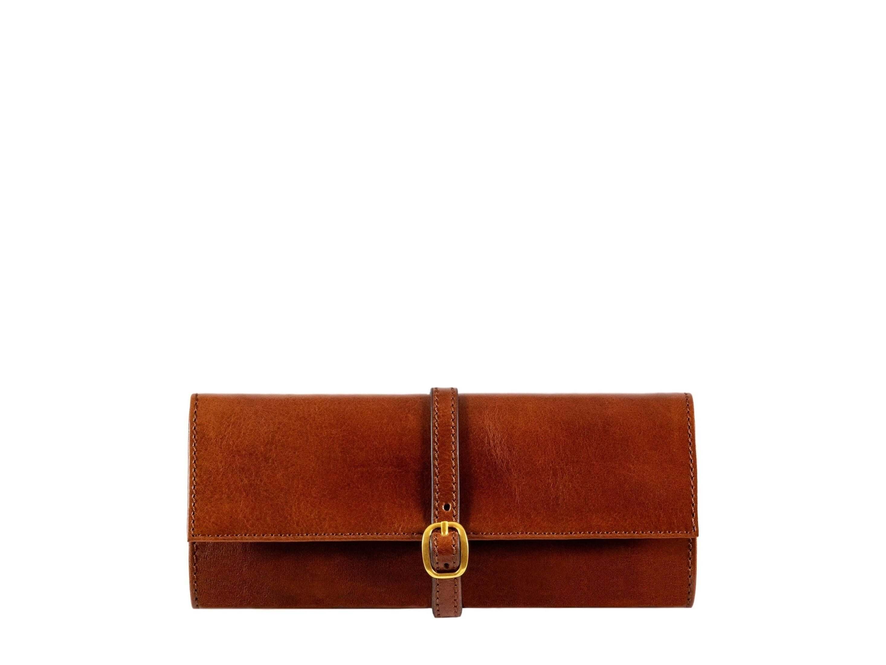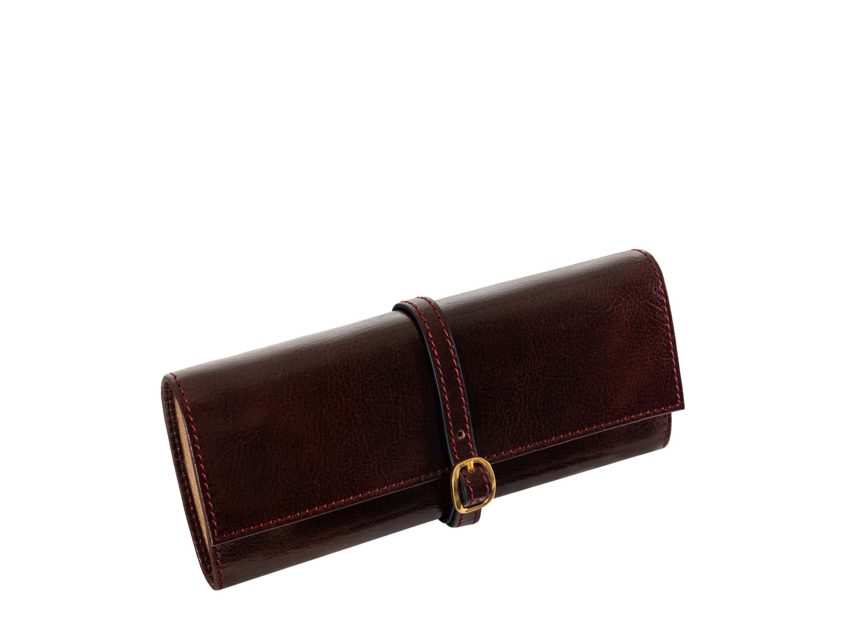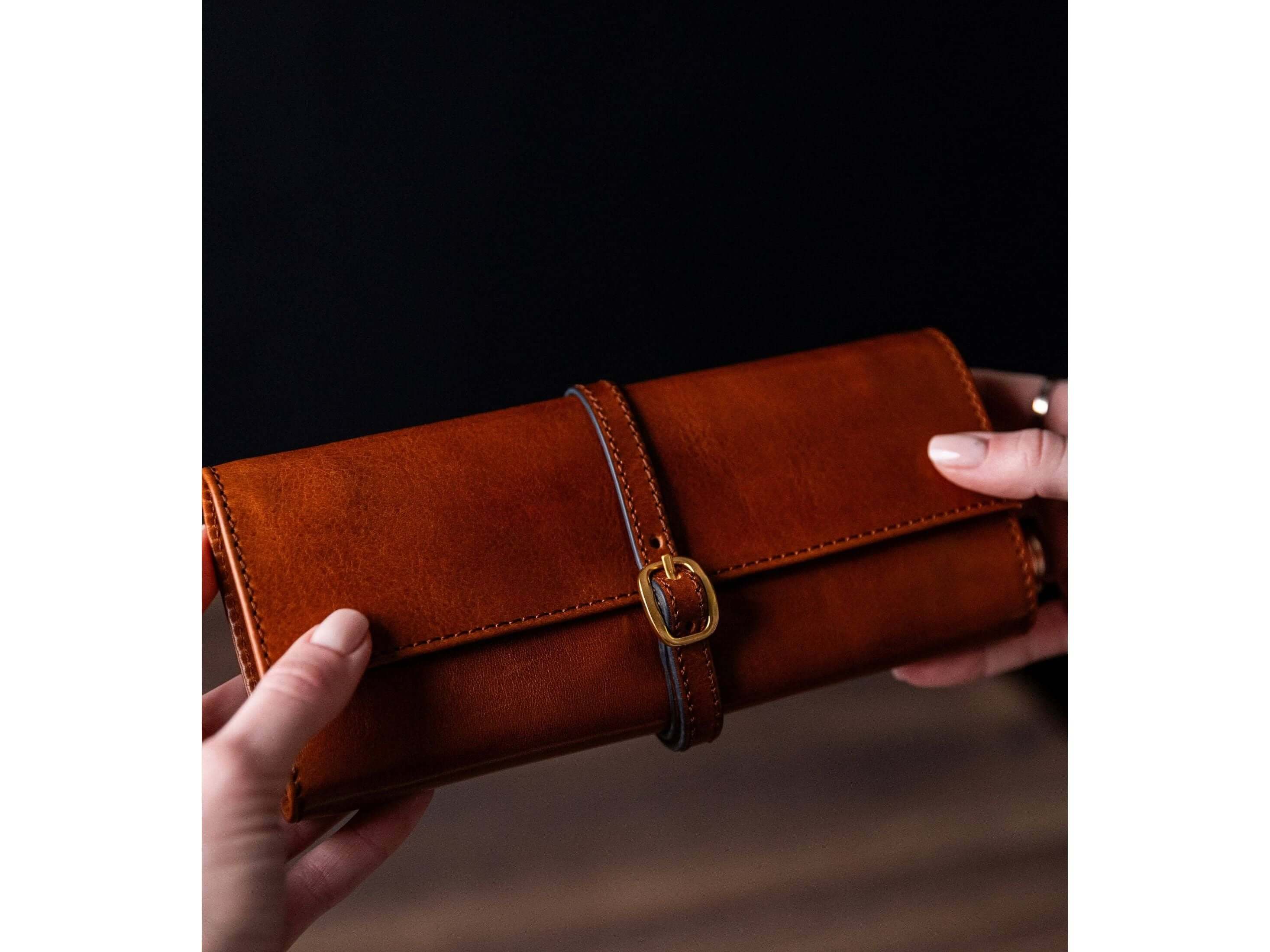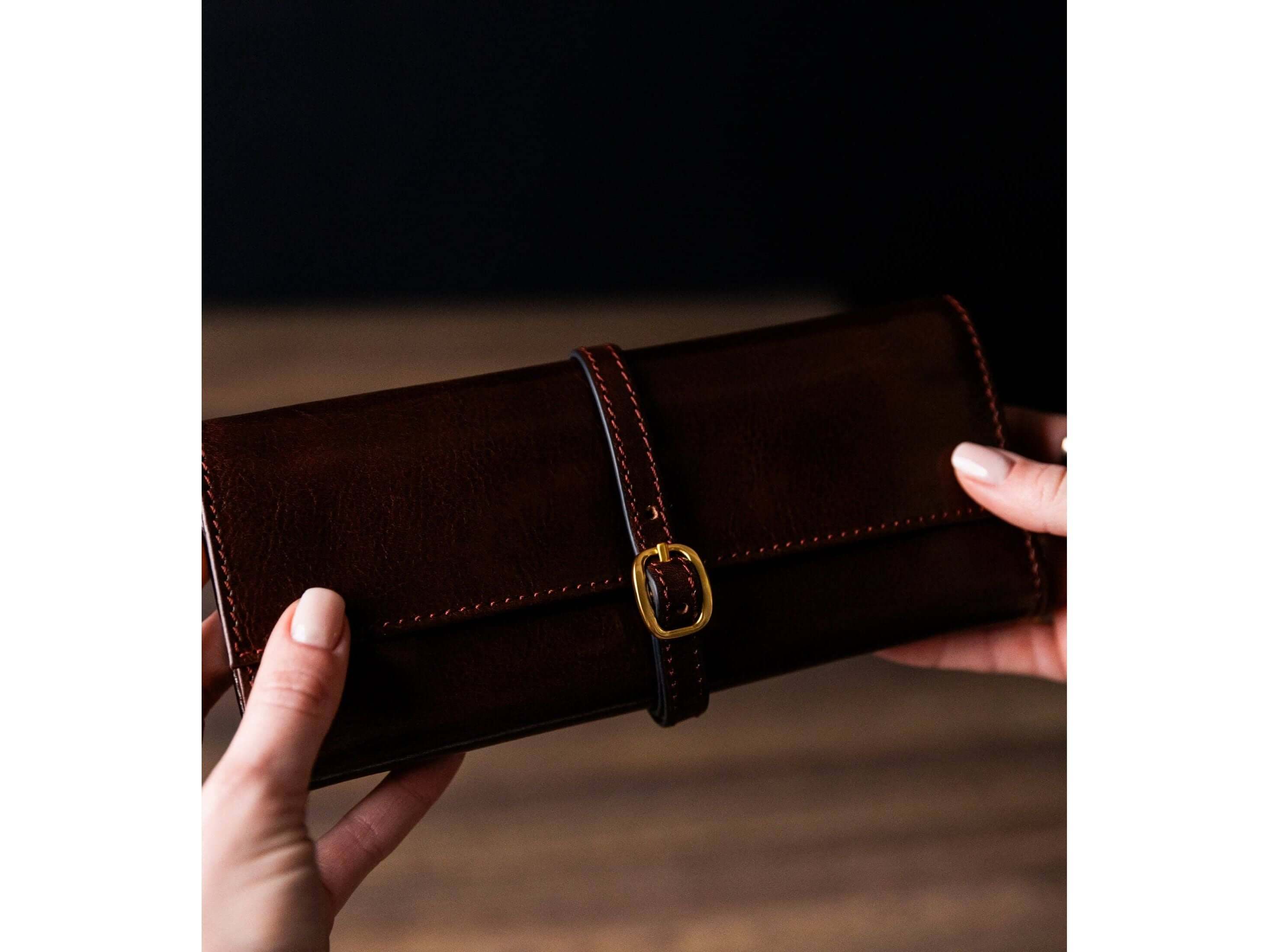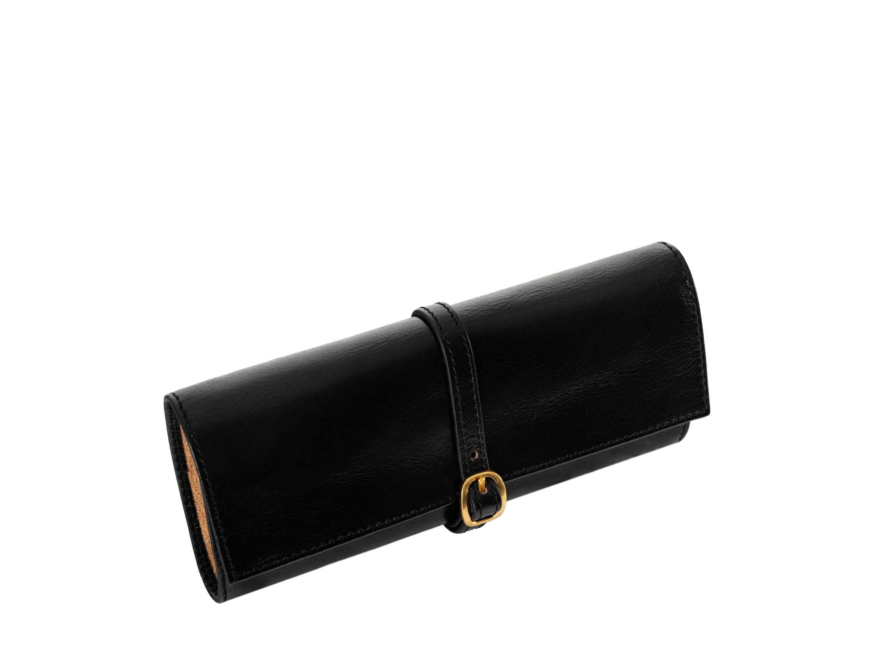 Déroulez ce bijou en cuir pour révéler un havre pour vos pièces chéries. Des compartiments et des poches soigneusement conçus bercent vos bijoux ou cosmétiques, garantissant qu'ils restent impeccables et protégés. Le Petit Sac Roulé en Cuir devient votre coffre au trésor personnel, protégeant vos objets de valeur avec style.