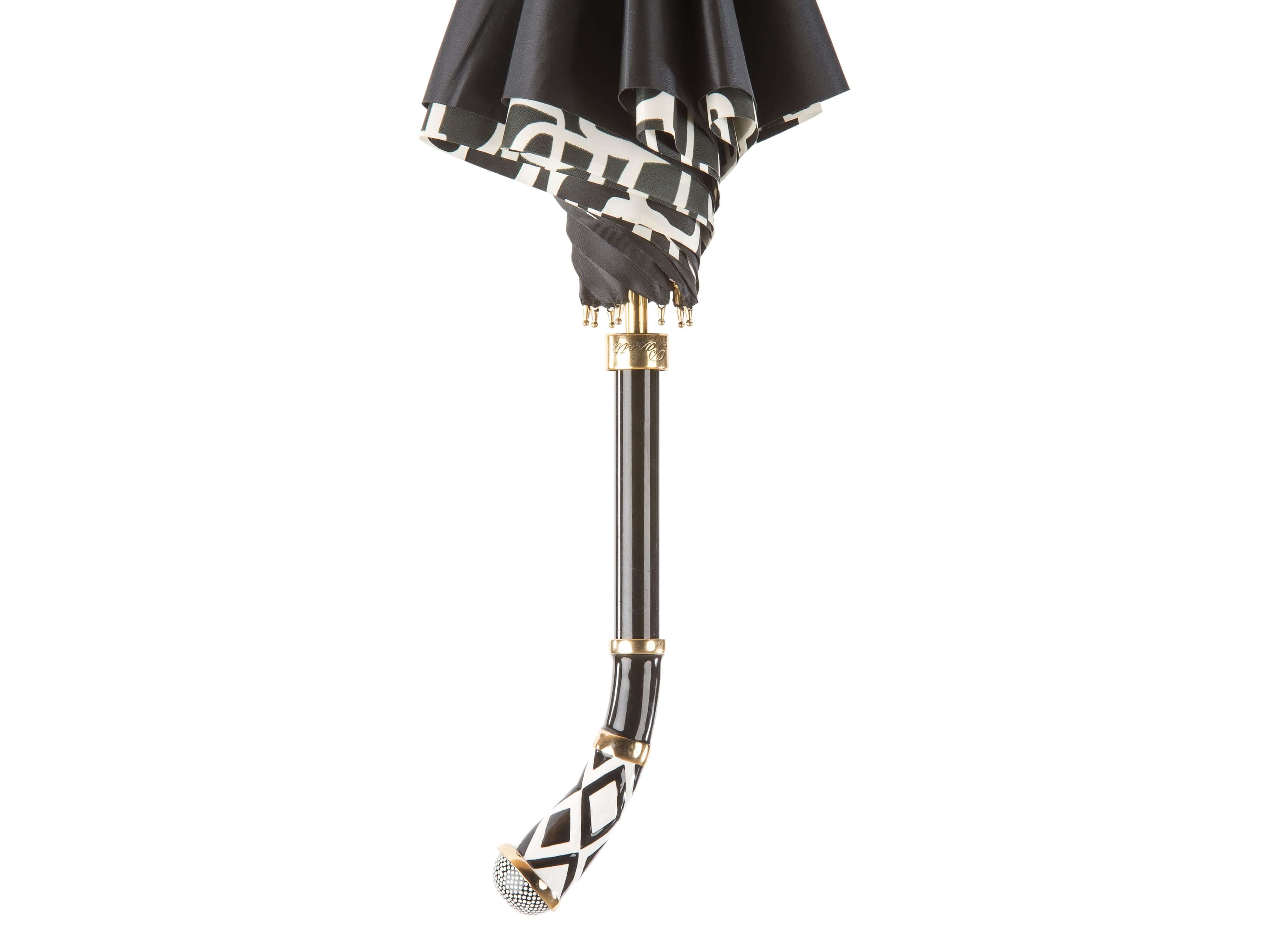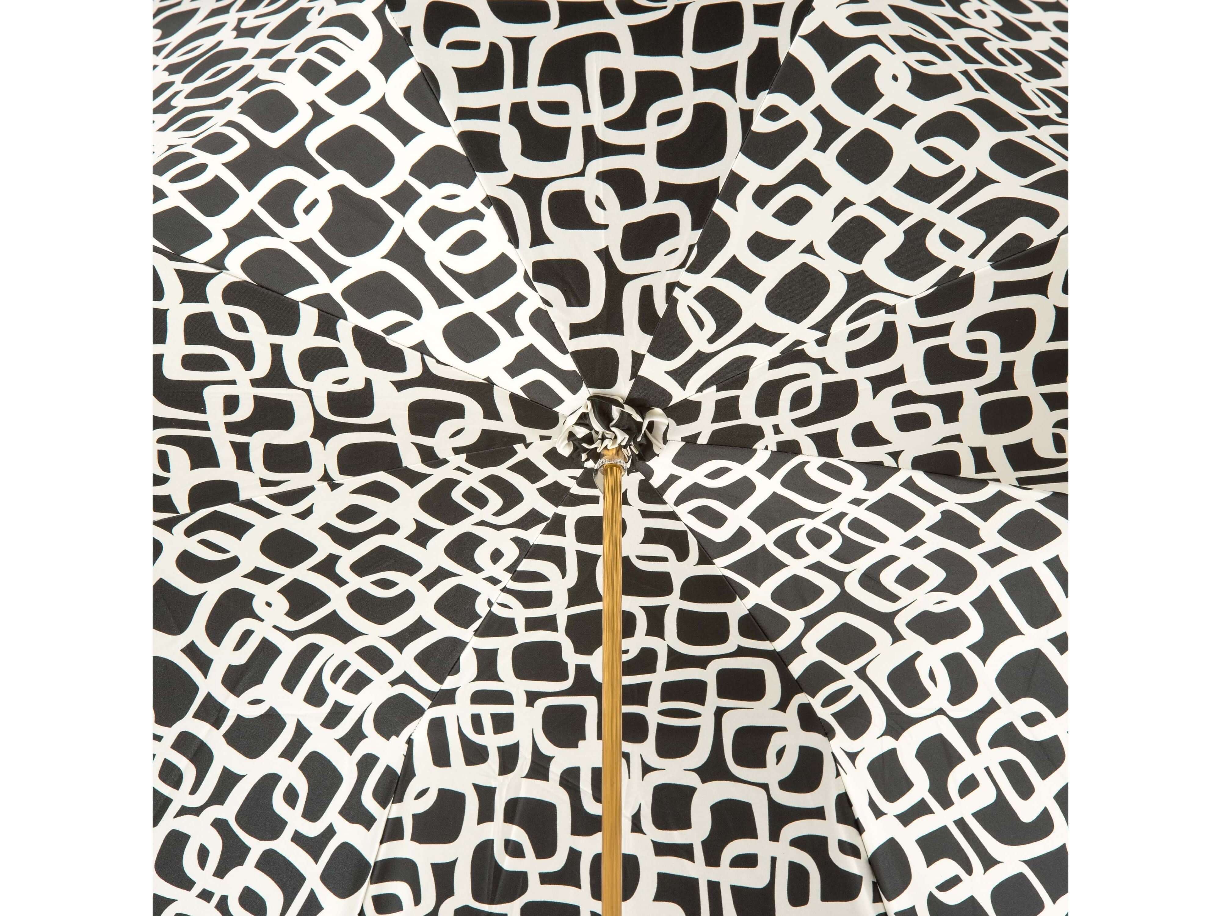 Parapluiedouble toile en satin noir élégant, finition platine et motifs losanges fins