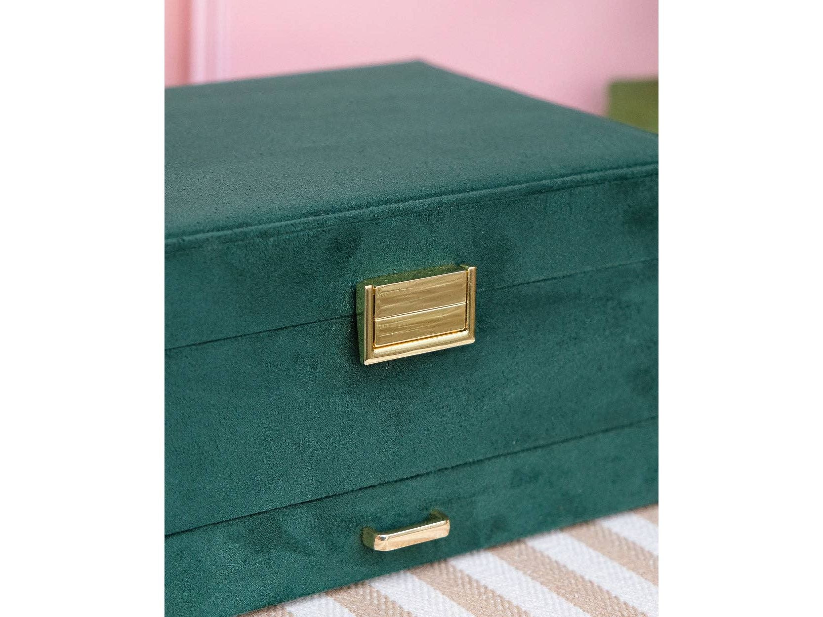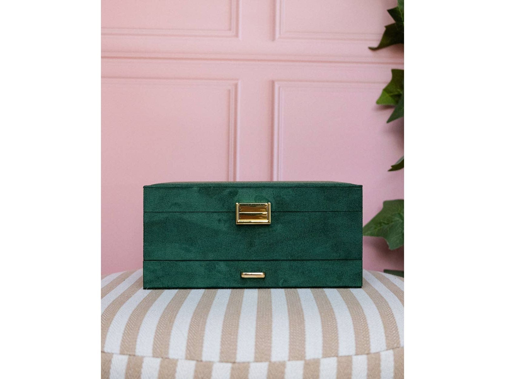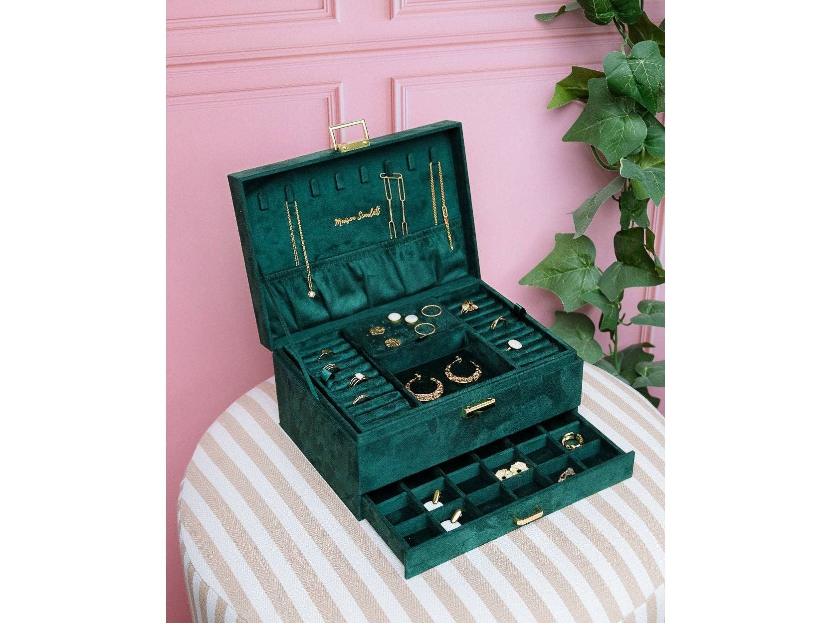 Notre boîte à bijoux Denise est notre plus grand modèle à ce jour et celui qui convient le mieux à la plupart des amatrices de bijoux.
