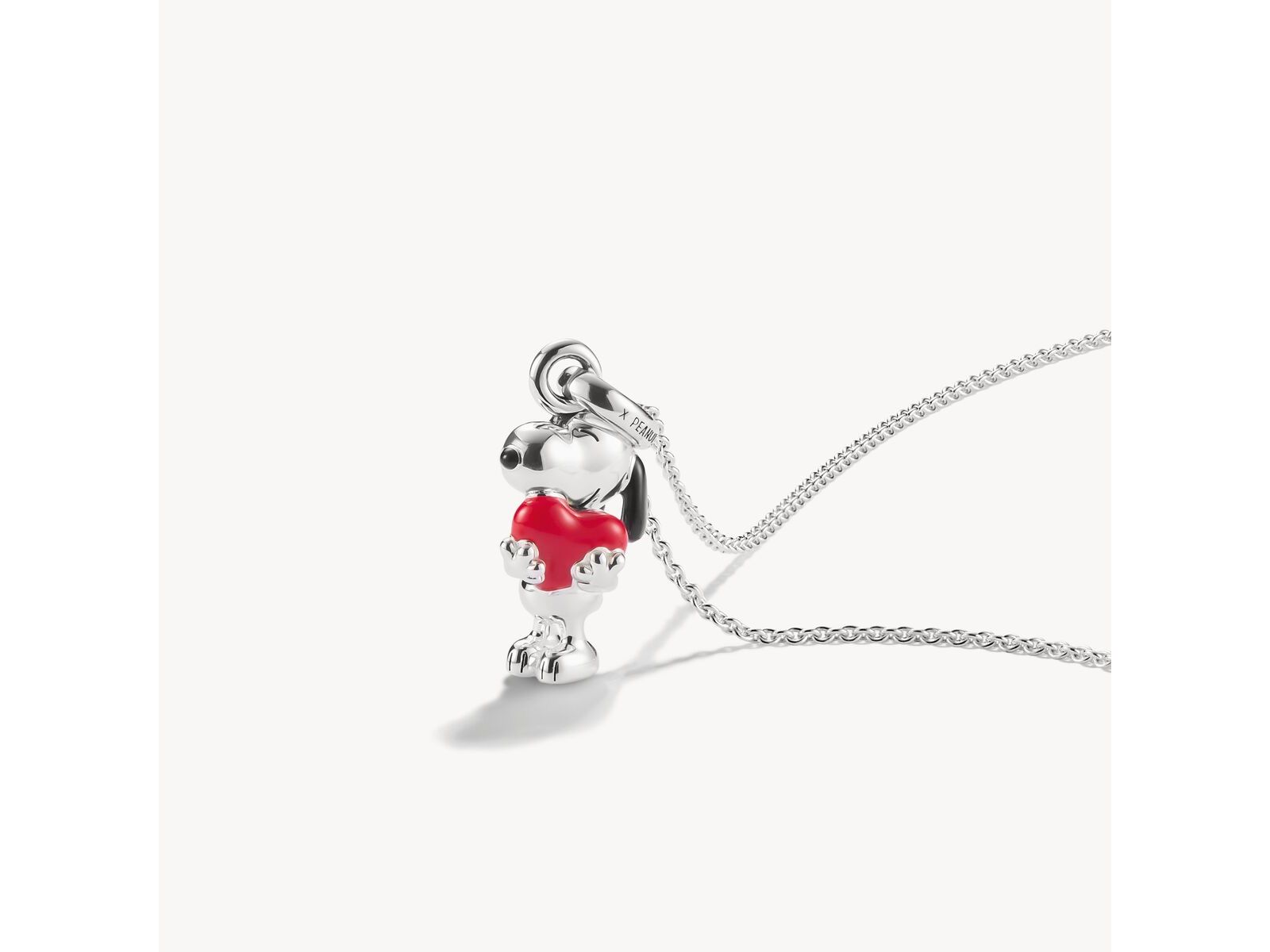 CHAÎNE SNOOPY AVEC CŒUR – PENDENTIF PEANUTS ARGENT