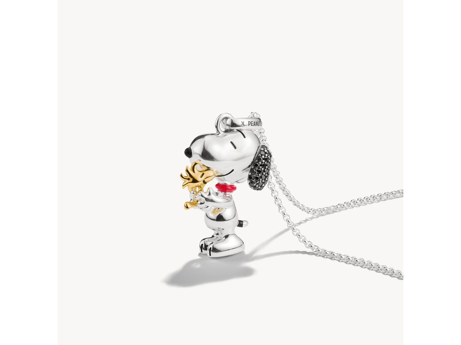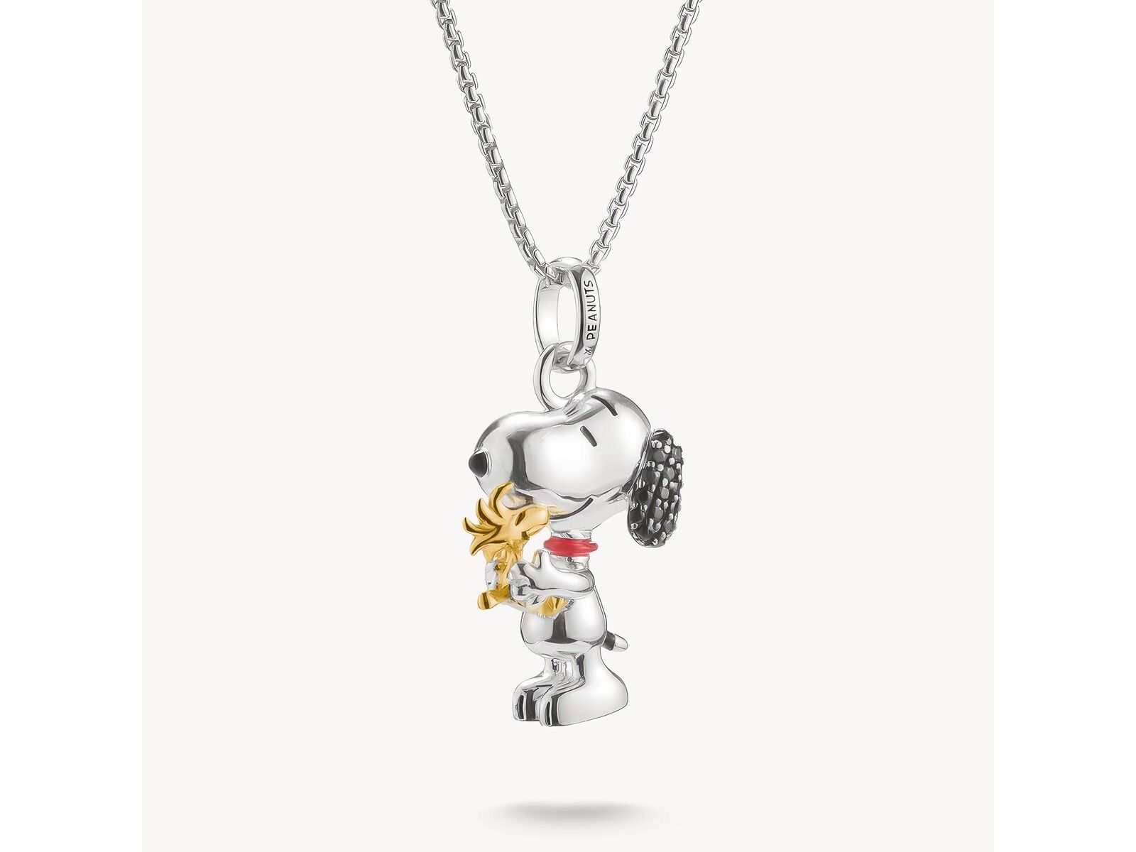 CHAÎNE SNOOPY & WOODSTOCK PAVÉ PENDENTIF PEANUTS PLAQUÉ OR 18 CARATS