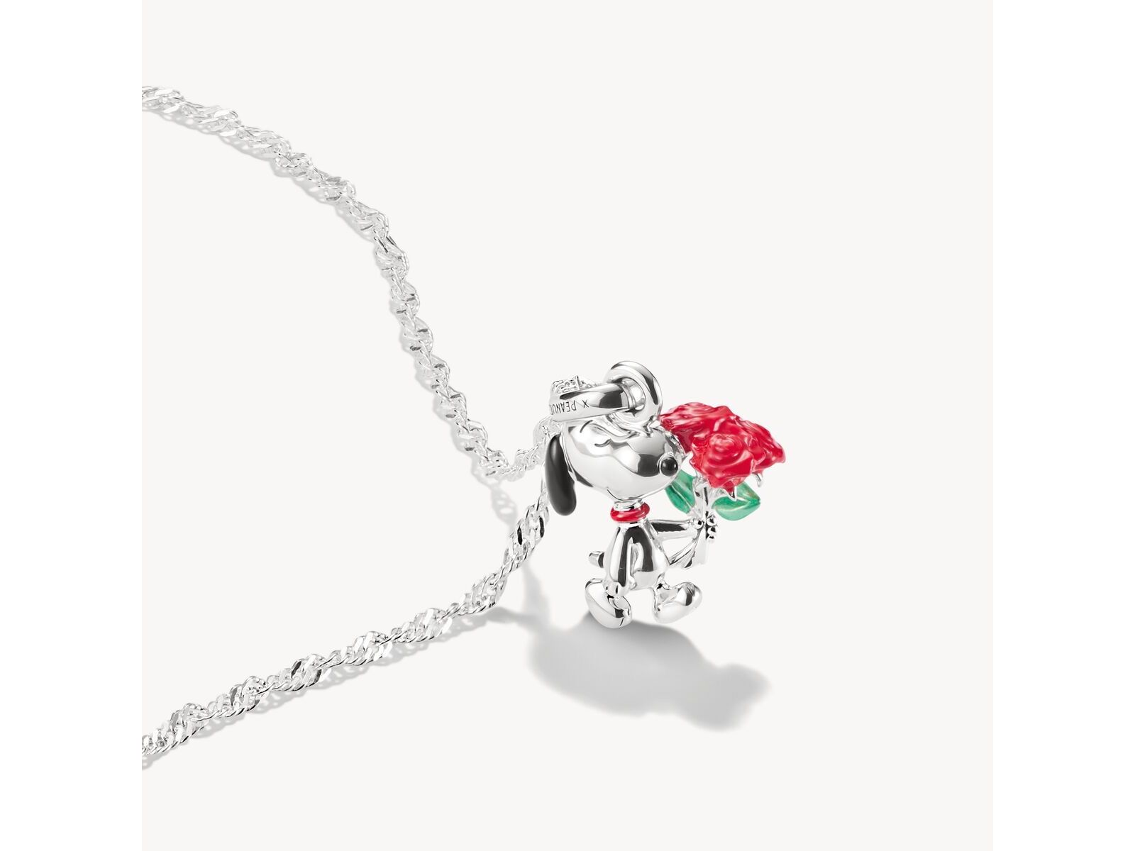 PENDENTIF COLLIER SNOOPY AVEC ROSES PENDENTIF PEANUTS ARGENT