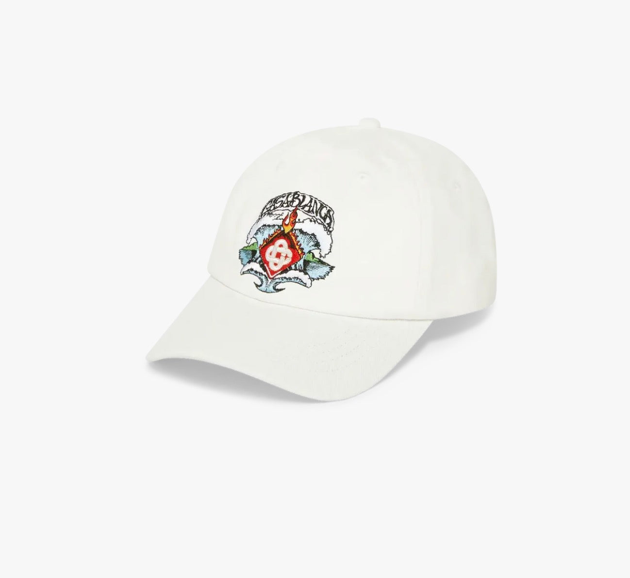 Casquette de baseball enfant au design signature Waves, présentant une formation de vagues symétriques se brisant autour du logo en losange de la maison bordé de flammes. Confectionnée en coton 100 % pour un confort optimal, elle dispose d'une visière structurée et d'une fermeture réglable à l'arrière pour un ajustement parfait. Coloris blanc intemporel. Nettoyage à sec spécialisé recommandé.