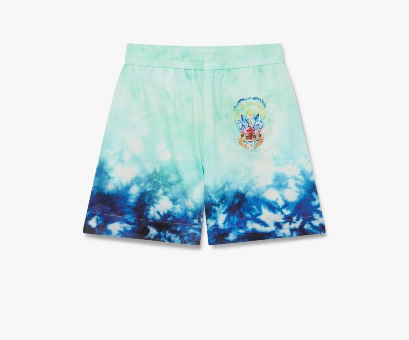 Plongez dans l'univers psychédélique avec ce short de surf pour enfant Lotus. Orné d'un motif captivant mêlant cinq planches de surf en forme de fleur de lotus et d'un masque tiki fleuri, ce modèle incarne l'esprit bohème et aventurier. Confectionné en coton biologique 100 %, il offre confort et douceur pour les journées en bord de mer ou en ville. Doté d'une ceinture élastique, d'un cordon de serrage, de poches latérales et d'une poche plaquée au dos, il allie fonctionnalité et style. Fabriqué en Italie avec des détails sophistiqués, ce short capture l'essence sport-loisir de la marque.