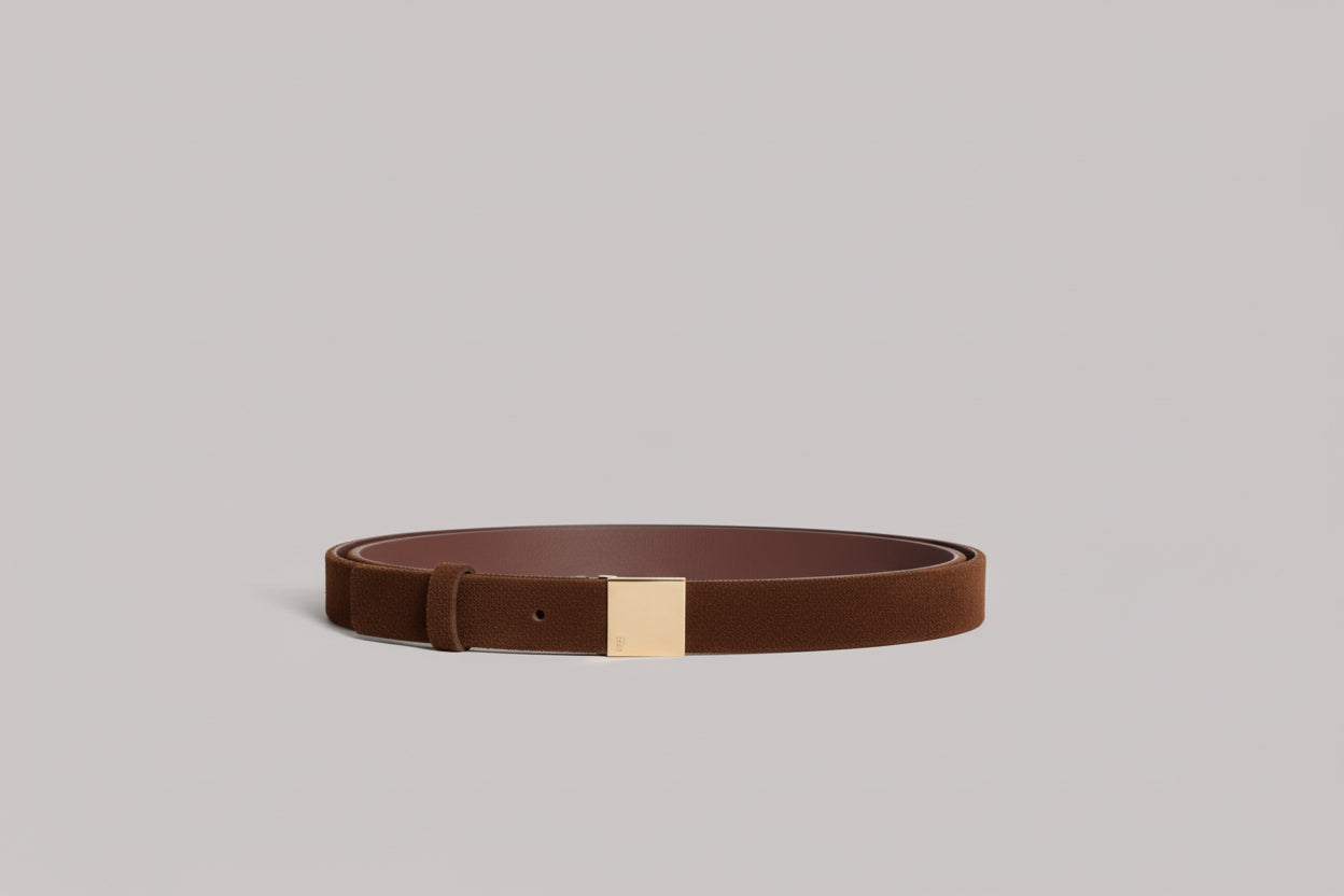 Découvrez l'élégance intemporelle avec cette ceinture en cuir de veau velours, alliant douceur et raffinement. La boucle dorée apporte une touche de luxe discret qui sublimera vos tenues, du casual au formel. Confectionnée en 100% cuir de veau premium, elle offre une souplesse exceptionnelle et une durabilité remarquable. Un accessoire d'exception pour ceux qui apprécient les détails de qualité et l'authenticité du matériau noble.