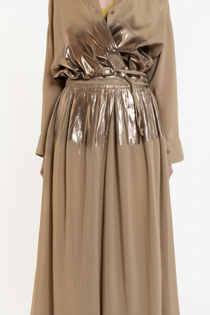 Jupe longue confectionnée dans un mélange raffiné de 55% viscose et 45% lin. Cette composition allie la fluidité élégante de la viscose à la légèreté naturelle du lin, créant une pièce intemporelle et confortable. Le tissu respire parfaitement, idéal pour les saisons chaudes, tout en offrant une drapé sophistiqué. Parfaite pour composer des looks épurés et modernes, cette jupe s'adapte à vos envies de minimalisme luxe.