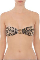 Haut de maillot Moschino couleur léopard, coupé ajusté avec détails signature de la maison. Armatures intégrées pour un maintien optimal et confort durable. Fermeture à crochets au dos. Parfait pour les journées à la plage ou à la piscine, ce pièce allie style iconique et fonctionnalité. Composition en matière technique résistante au chlore et aux UV. Un essentiel de luxe pour votre garde-robe estivale.