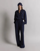 Pantalon de prestige alliant élégance intemporelle et confort raffiné. Confectionné en mélange noble de cellulose d'acétate et soie, cette pièce maîtresse offre une fluidité exceptionnelle et un tombé impeccable. La taille haute et la jambe large créent une silhouette moderne et flatteuse, tandis que la coupe généreuse garantit une liberté de mouvement sans compromis. Doublure en polyester pour une durabilité accrue. Un incontournable pour les garde-robes de luxe qui privilégient la qualité et le style intemporel.