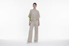 Pantalon élégant confectionné en maille lurex, alliant confort et sophistication. Le fil lurex intégré crée des reflets subtils et lumineux, parfait pour les occasions spéciales ou pour ajouter une touche d'éclat à votre garde-robe quotidienne. Coupe moderne et épurée, cette pièce intemporelle se marie facilement avec vos basiques préférés. Idéal pour créer des looks à la fois chics et confortables.