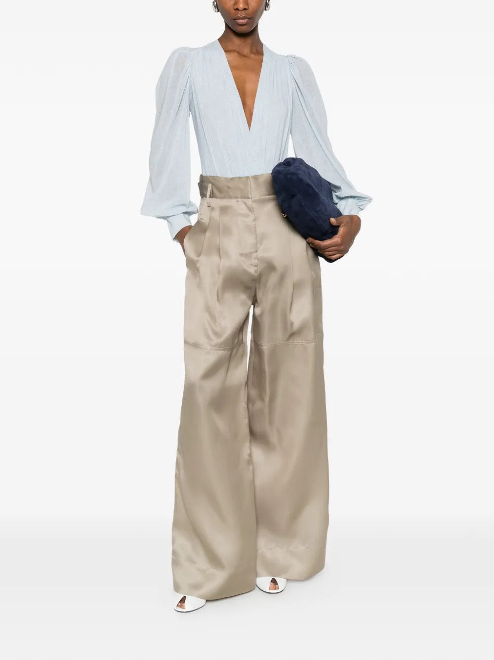 Découvrez l'élégance intemporelle avec ce pantalon Alberta Ferretti en soie 100% pure, confectionné en Italie. Son design signature aux plis subtils crée une silhouette raffinée et flatteuse, tandis que la fermeture zippée dissimulée préserve les lignes épurées. Les poches latérales passepoilées et les passants de ceinture complètent cette pièce d'exception en beige neutre. Parfait pour les occasions formelles ou le quotidien haut de gamme, ce pantalon incarne le savoir-faire italien. Nettoyage à sec recommandé pour préserver la qualité de la soie.
