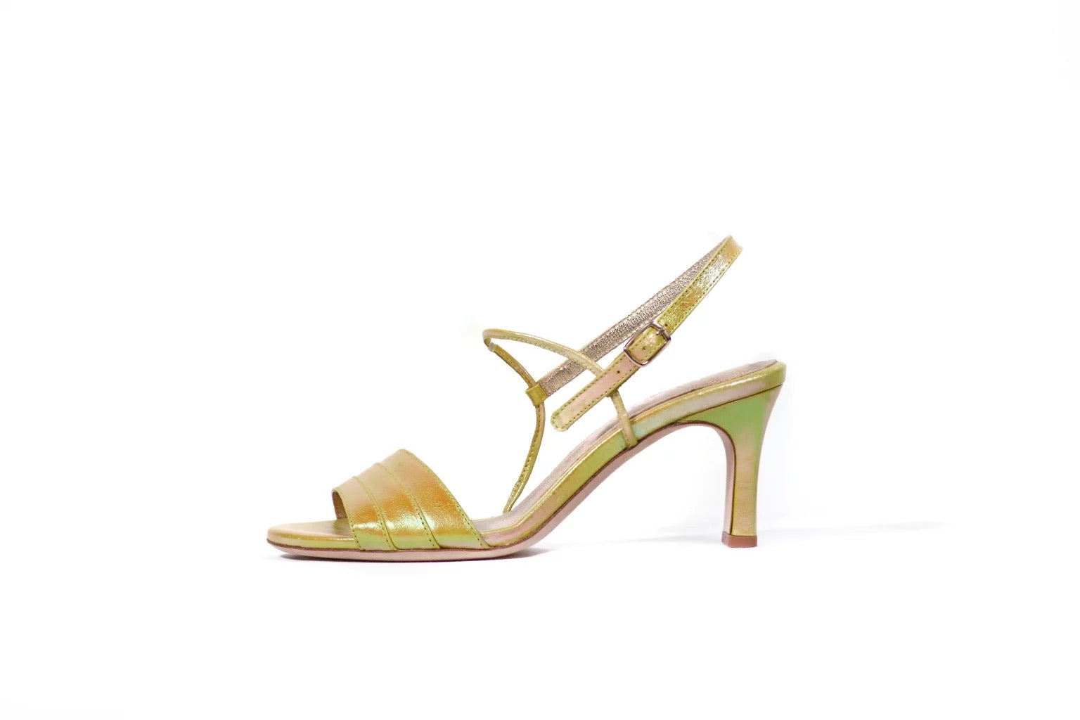 Sandales MARILYN en cuir Yellow Gold Irisé qui captent la lumière à chaque pas. Leur design élégant associe glamour et confort exceptionnel pour des soirées mémorables. Talon 7 cm. Composition : semelle intérieure et extérieure 100% cuir. Portez-les avec assurance et brillez toute la nuit.