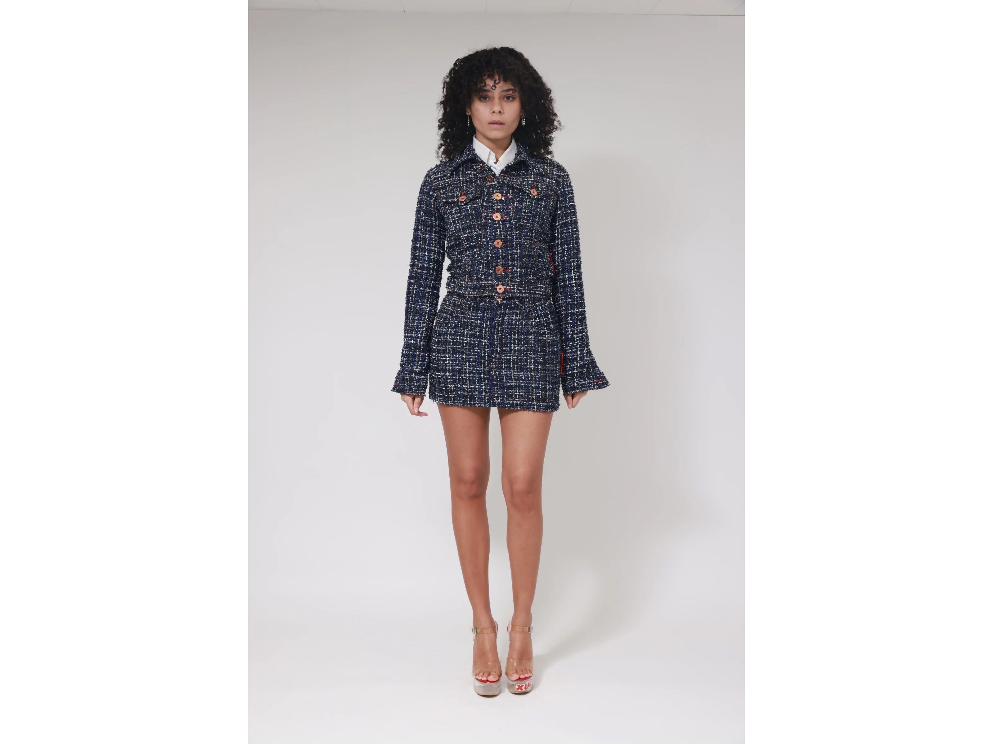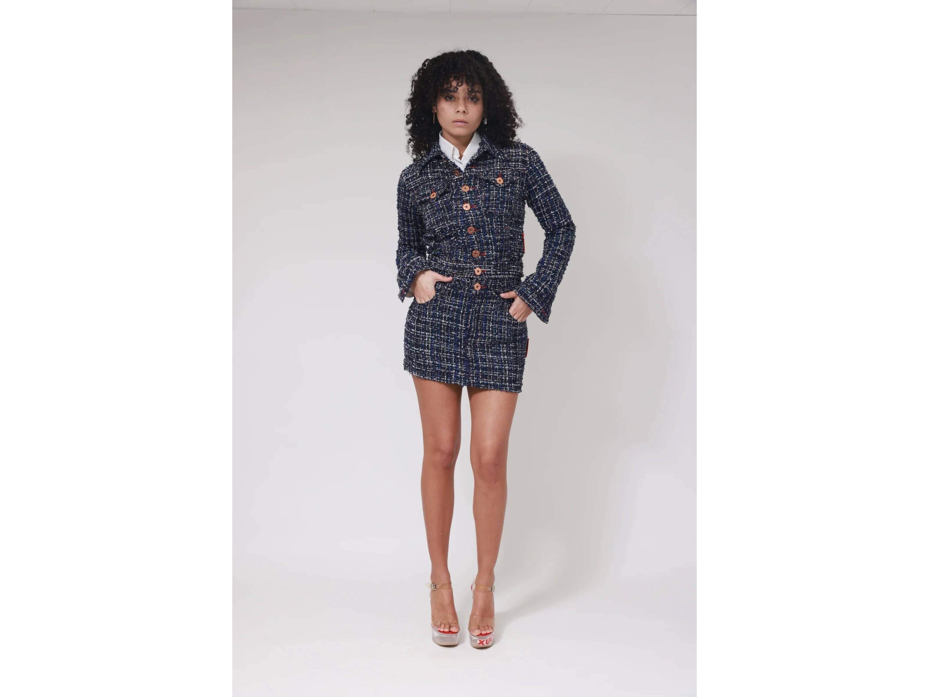 Adoptez un look raffiné avec cette jupe courte Tweedy, alliant élégance classique et modernité. Sa texture tweed apporte une touche chic à toutes vos tenues, parfaite pour vos sorties urbaines ou événements décontractés. Facile à assortir, elle sublimera votre silhouette avec style et confort.