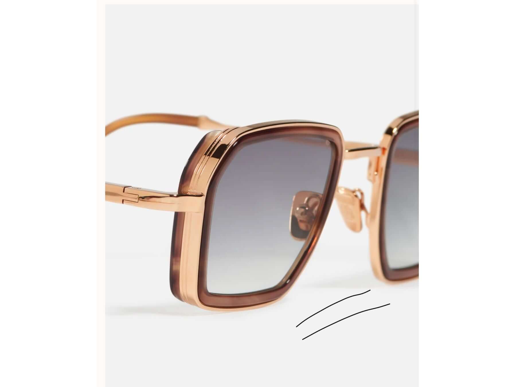 Découvrez les lunettes de soleil CILLIAN C126, un modèle rectangulaire d'exception alliant masculinité et raffinement. La monture en acétate moka est sublimée par des cerclages découpés ornés de stries gravées de 4 mm, tandis que l'alliage plaqué or rose 22 carats (poinçon joaillier) confère une élégance intemporelle. Les branches signature portent les embouts gravés John Dalia, signature de prestige. Les verres CR39 gris dégradé avec traitement anti-reflet offrent une protection optimale et un confort visuel supérieur. Chaque détail révèle un savoir-faire d'exception. Livré avec étui et chiffon de nettoyage.