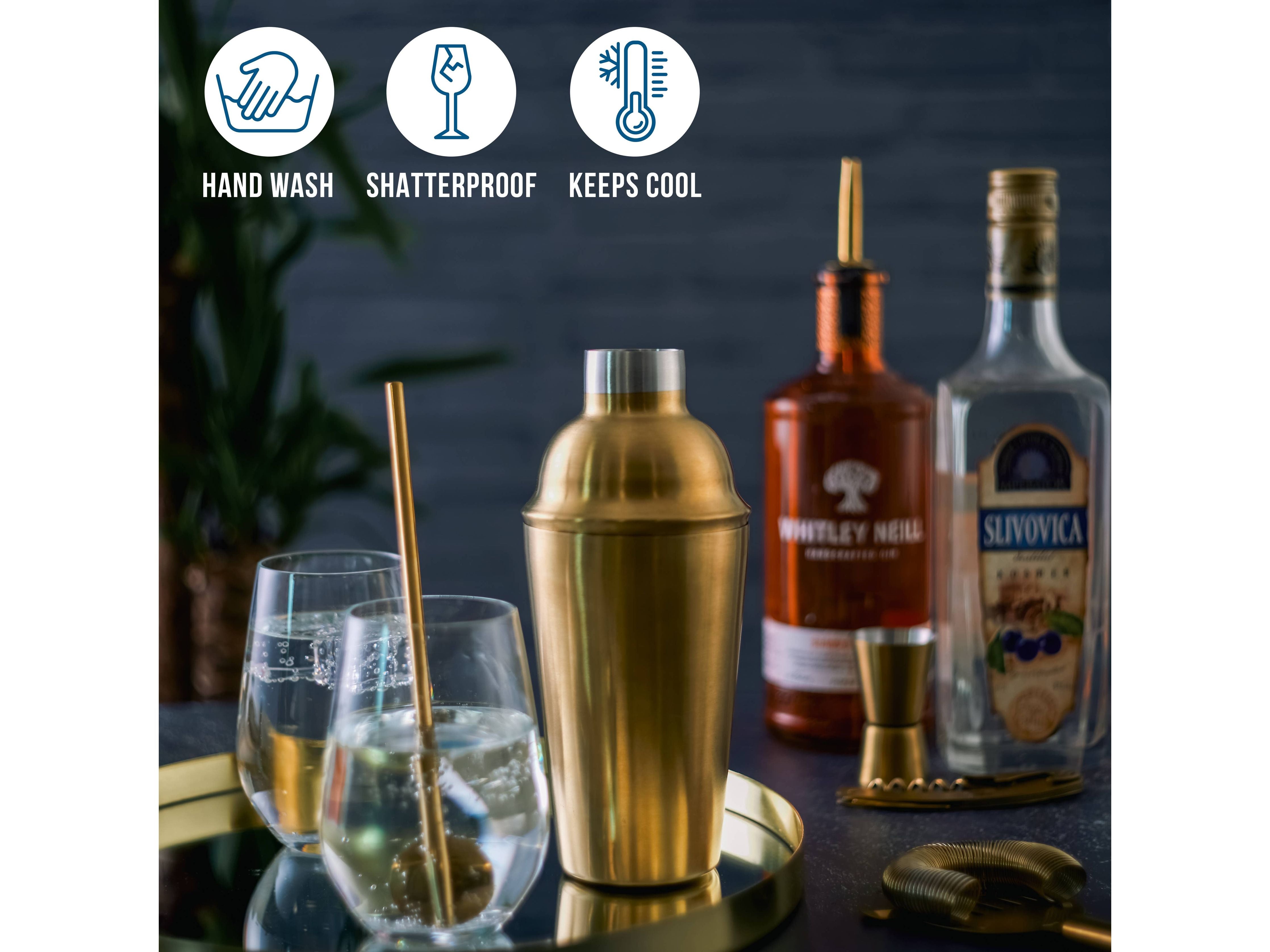 Ensemble complet de shakers à cocktails : entrez dans le monde du barman professionnel avec notre ensemble de 10 cocktails en acier inoxydable doré. Cette collection complète contient tous les outils essentiels nécessaires pour mélanger, écraser, secouer et remuer votre cocktail à la perfection. Du shaker élégant aux doseurs précis, en passant par les passoires, etc., vous aurez tout à portée de main pour créer une large gamme de cocktails impressionnants et devenir l'hôte idéal.
