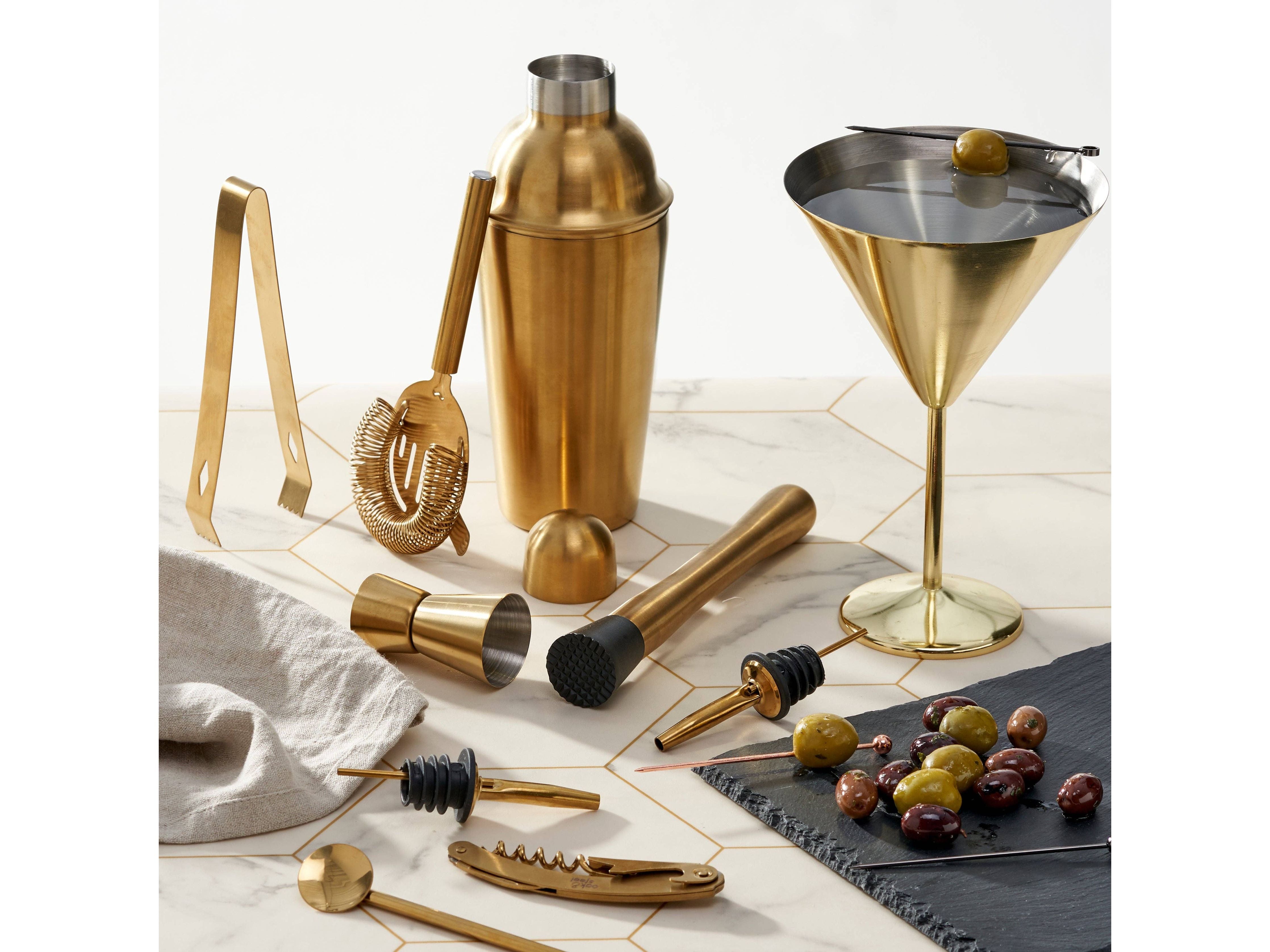 Ensemble à cocktail doré de 10 pièces