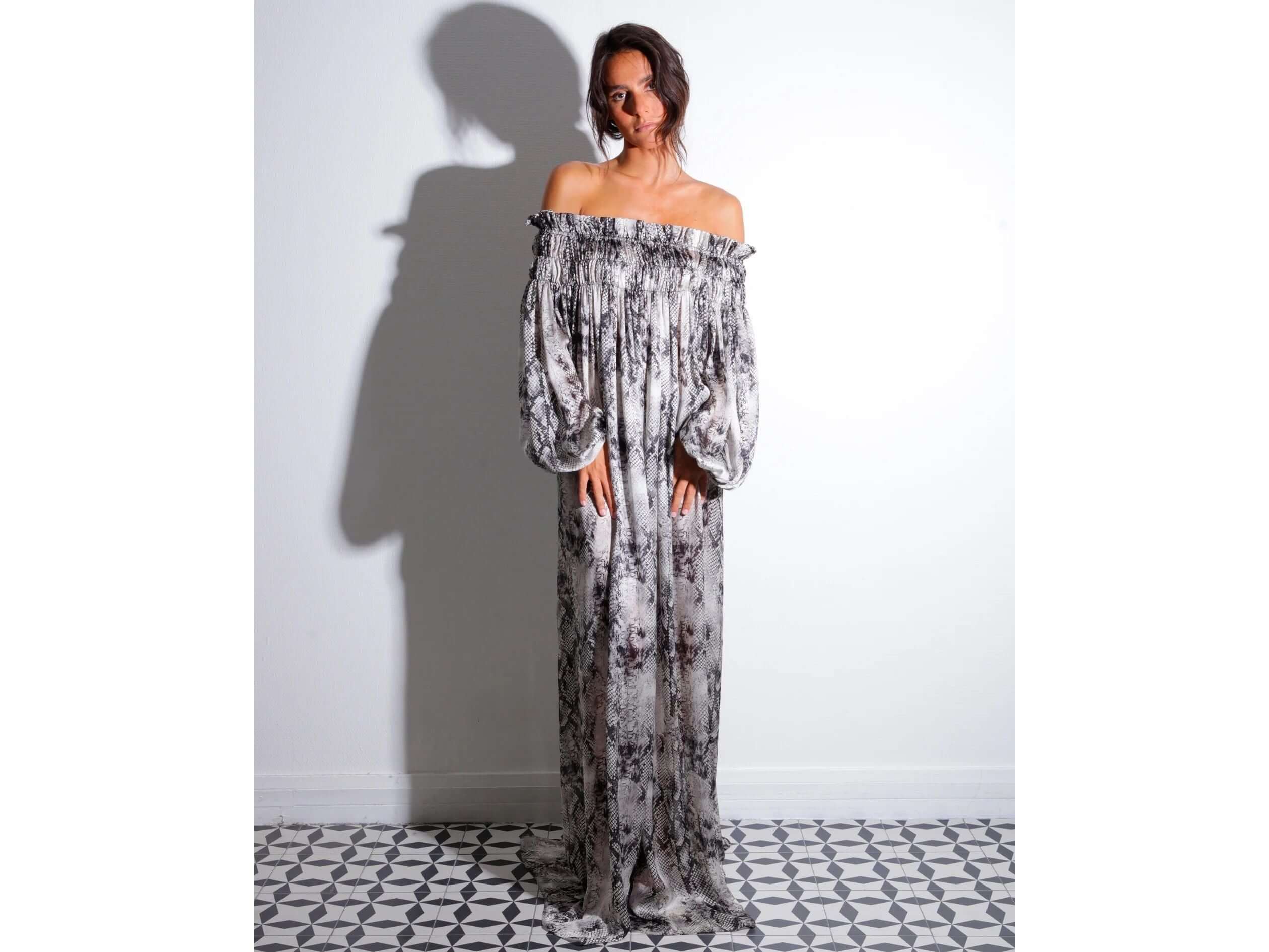 Découvrez la robe Yemmy en chiffon de soie imprimé python, une pièce élégante qui allie légèreté et sophistication. Sa matière fluide offre un confort exceptionnel tout en sublimant votre silhouette. Parfaite pour une soirée ou un événement spécial, cette robe vous assure une allure unique et raffinée. Adoptez un style audacieux et chic avec la robe Yemmy.