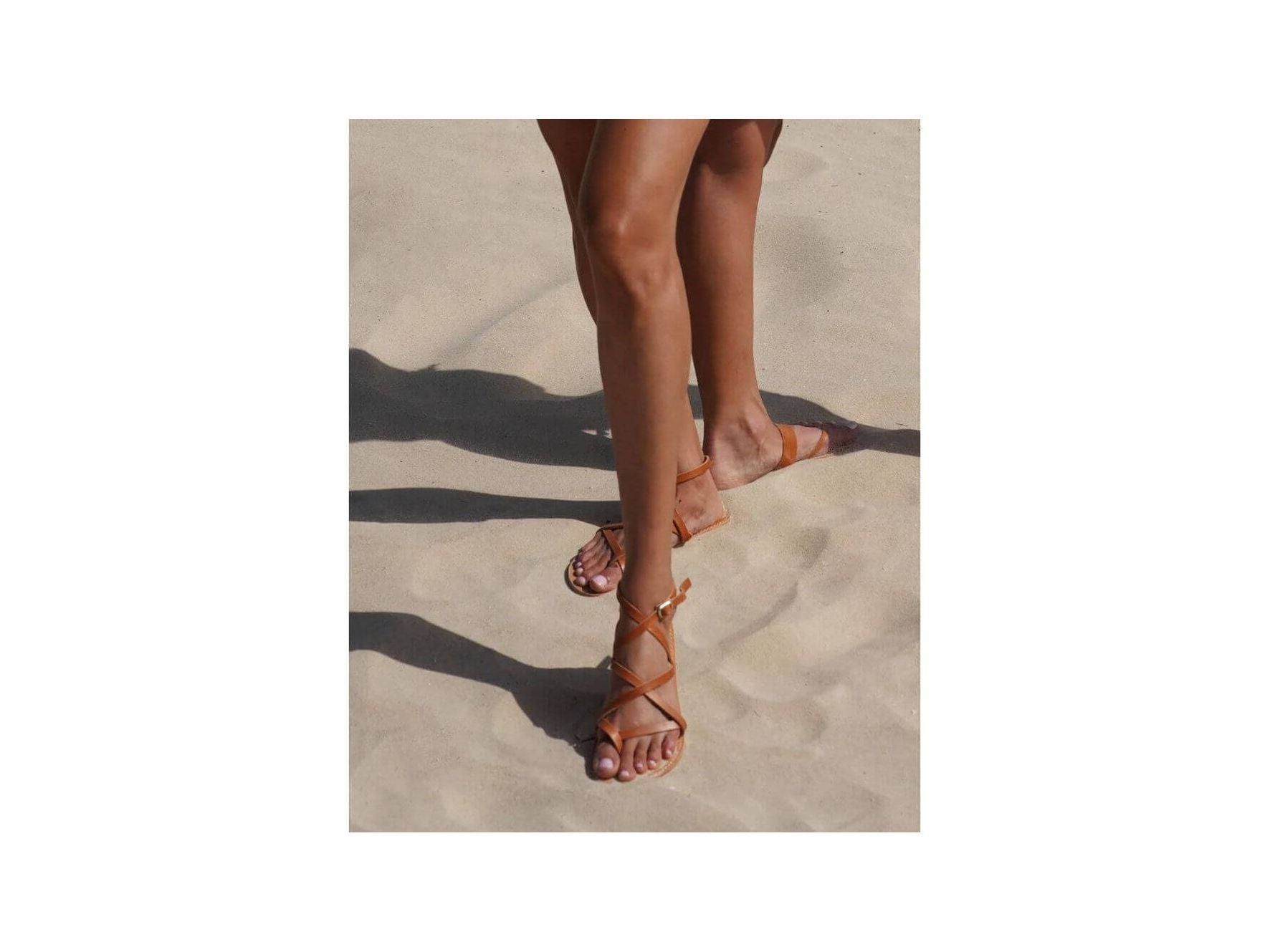 Les sandales Gefen sont idéales pour se promener, avec toutes les brides entrecroisées qui enveloppent la cheville pour un confort optimal. Leur ton camel en daim donne un look sophistiqué à leurs lignes classiques, convenant parfaitement à toutes les tenues estivales. Conçues à Tel Aviv ~ Fabriquées à la main en Grèce.