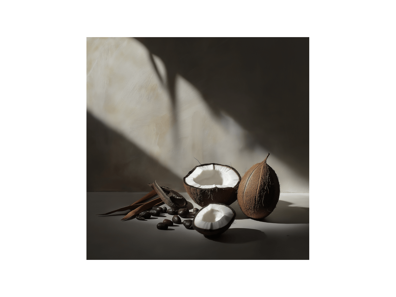 Le sable chaud, l’eau de coco, la vanille. Leurs énergies nous font glisser sur cette vague puissante. La plage, les embruns caressent les éffluves délicieux de fève tonka.