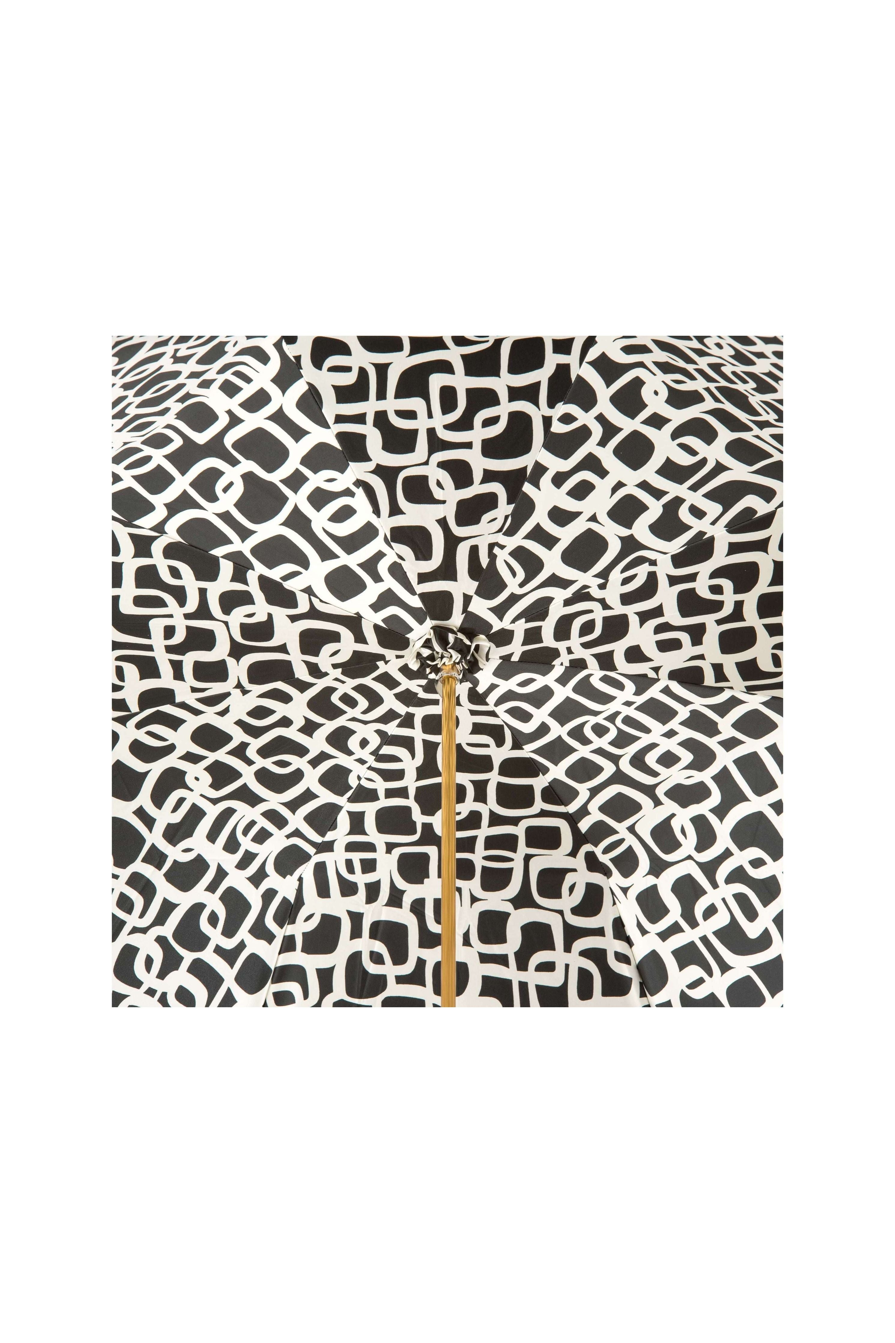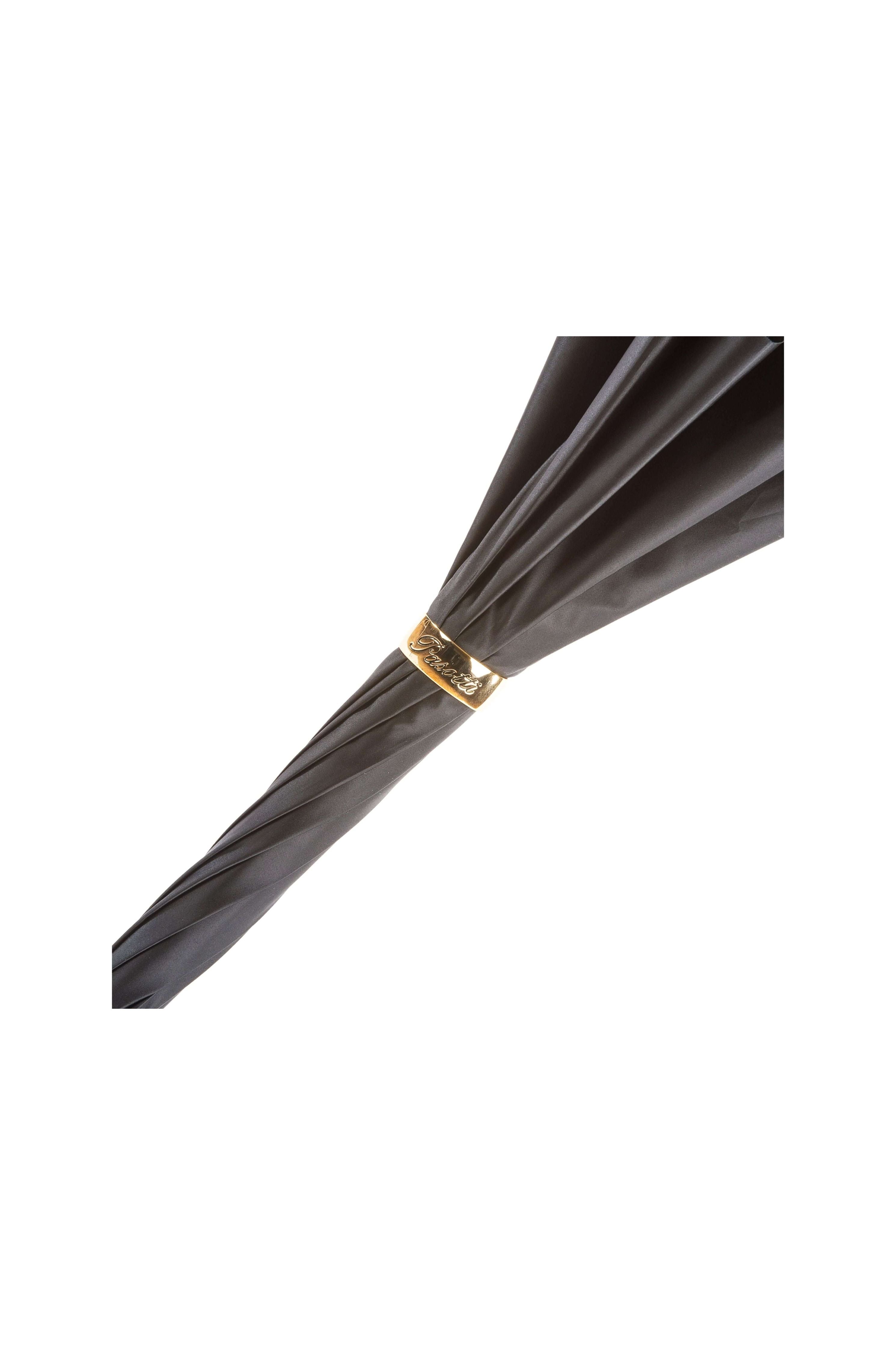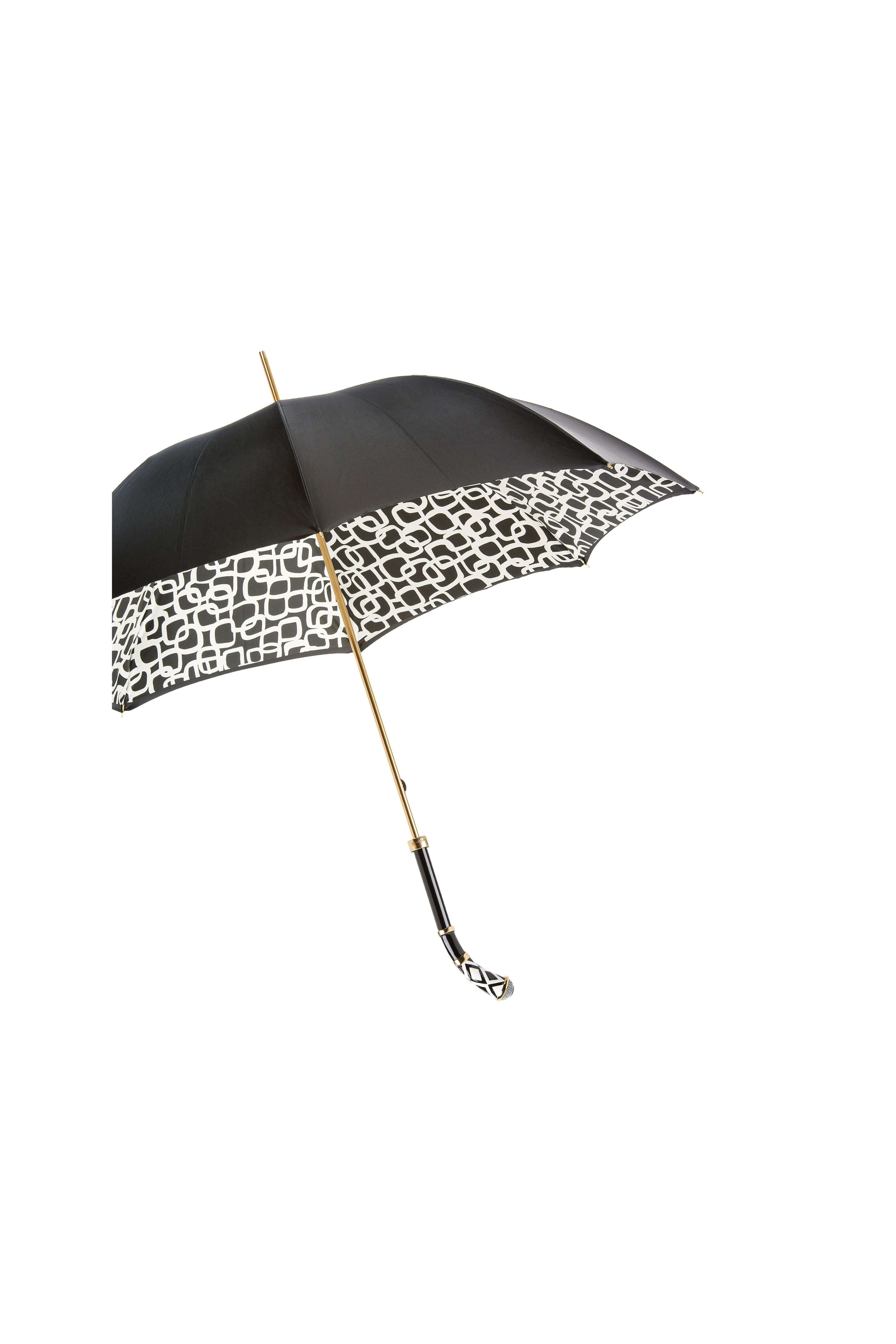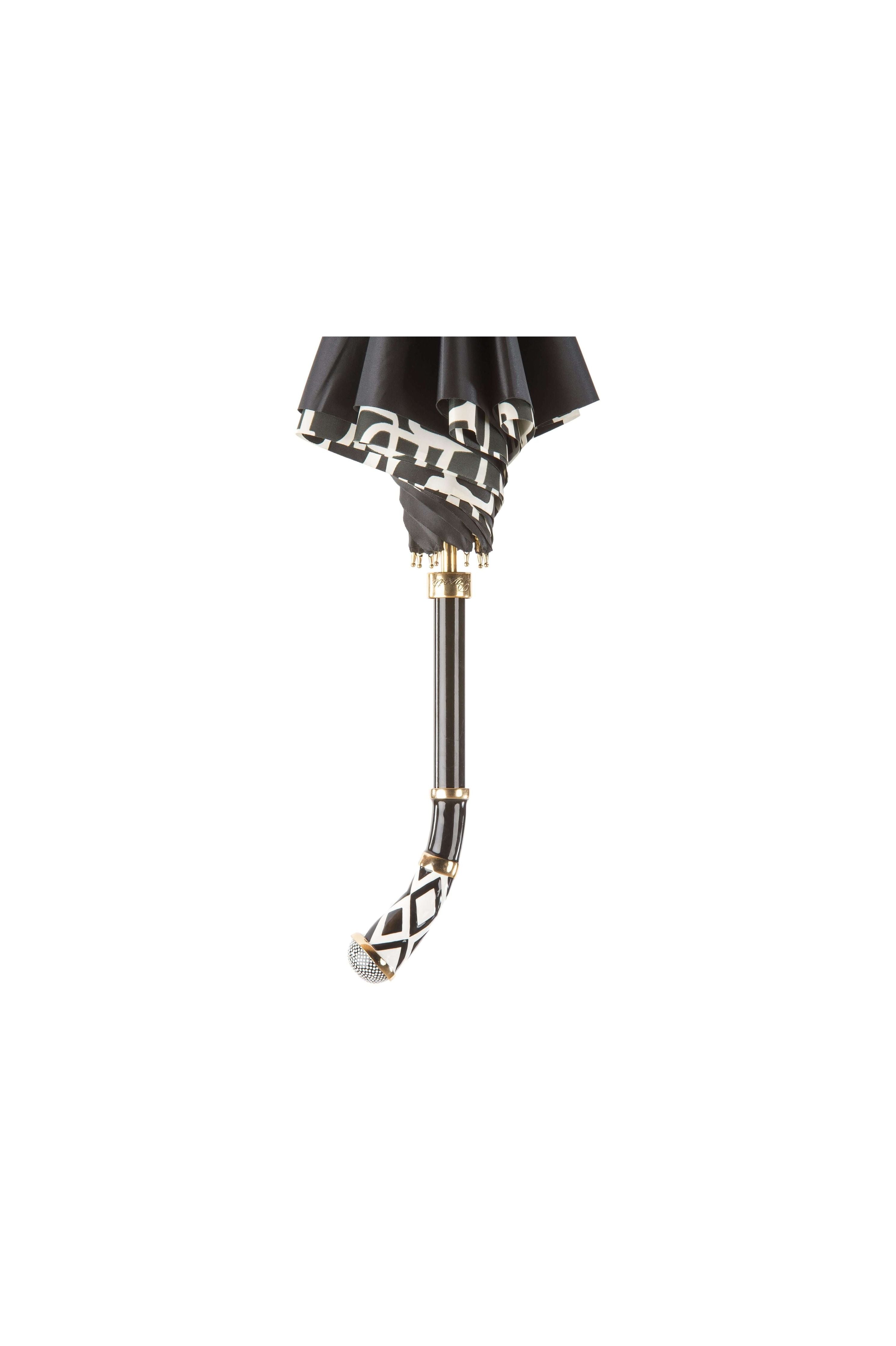 Elegant double-canvas umbrella in black satin, platinum finish and fine diamond pattern