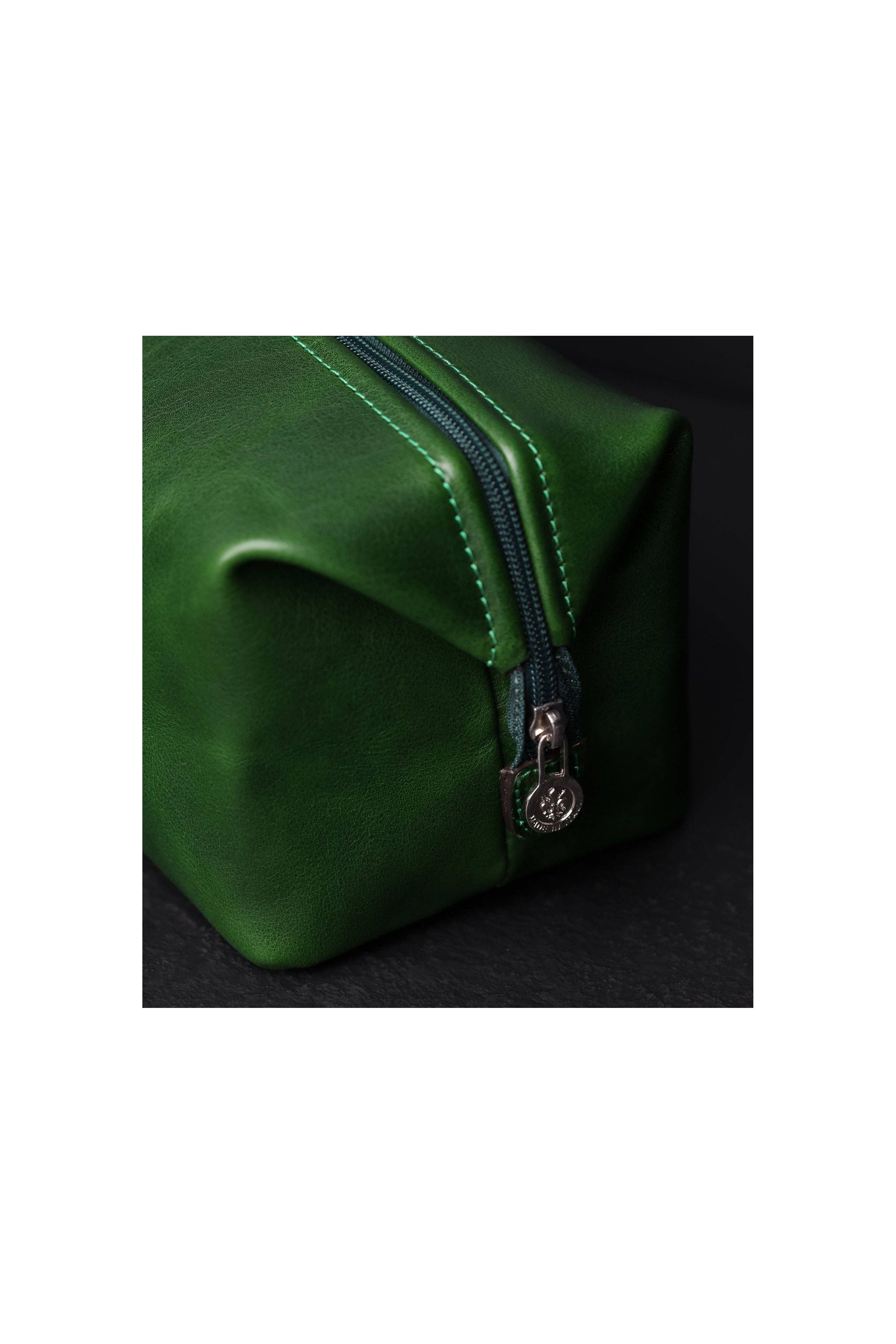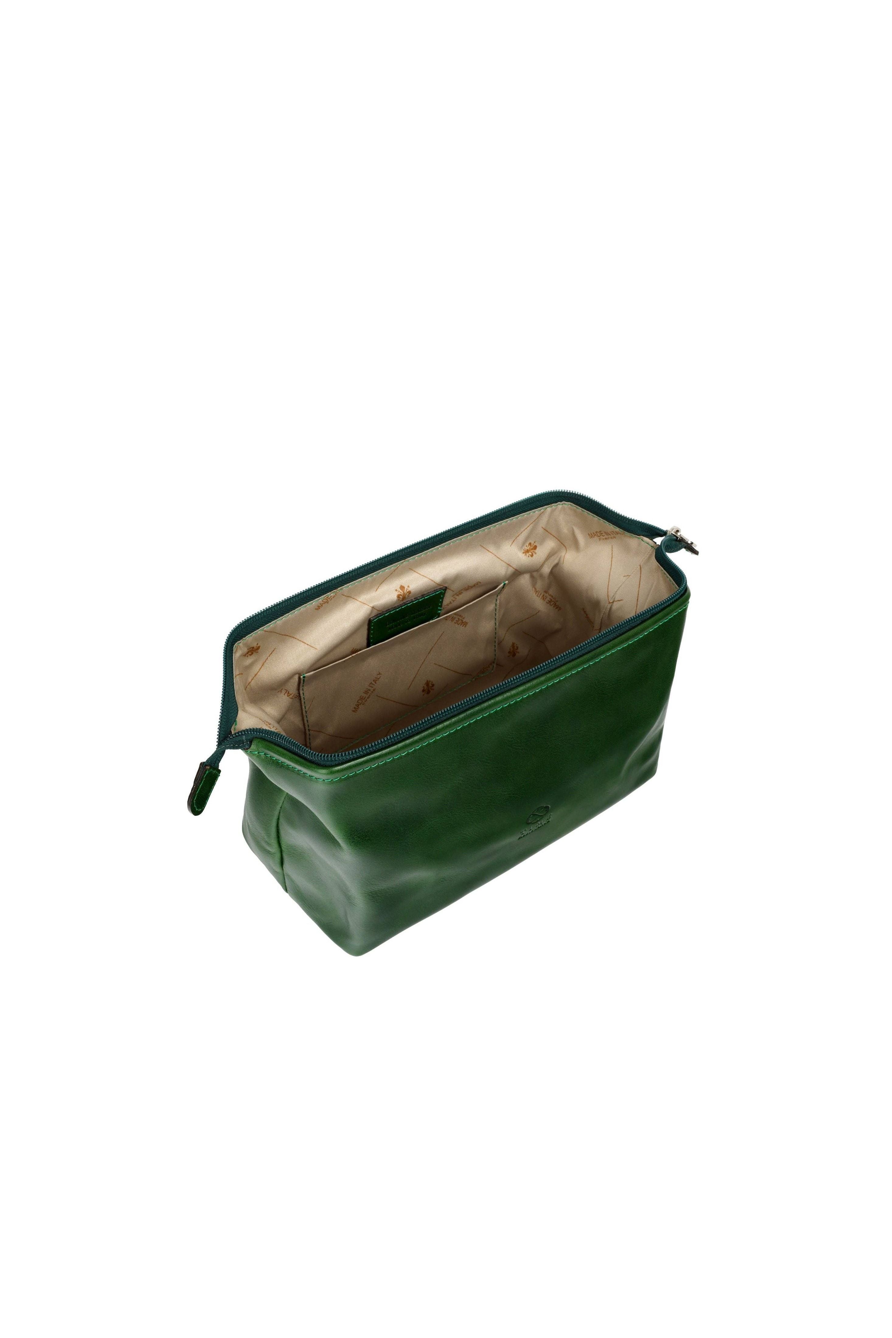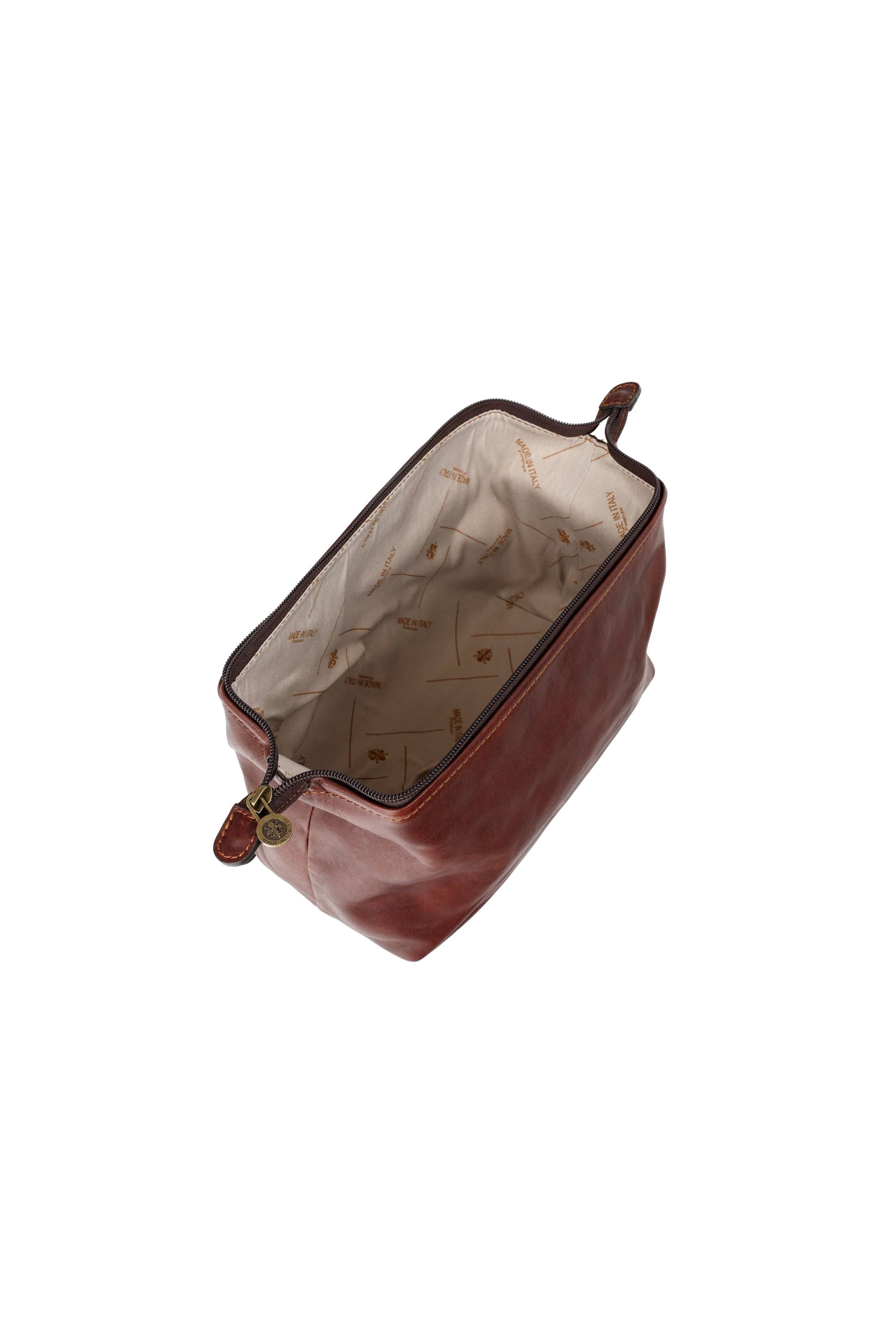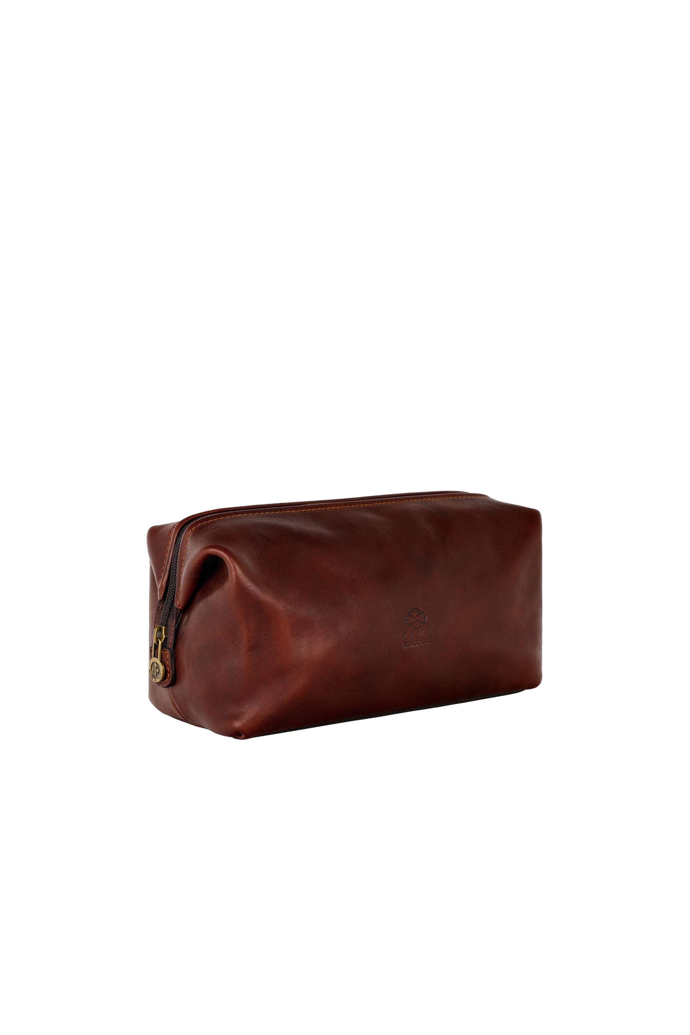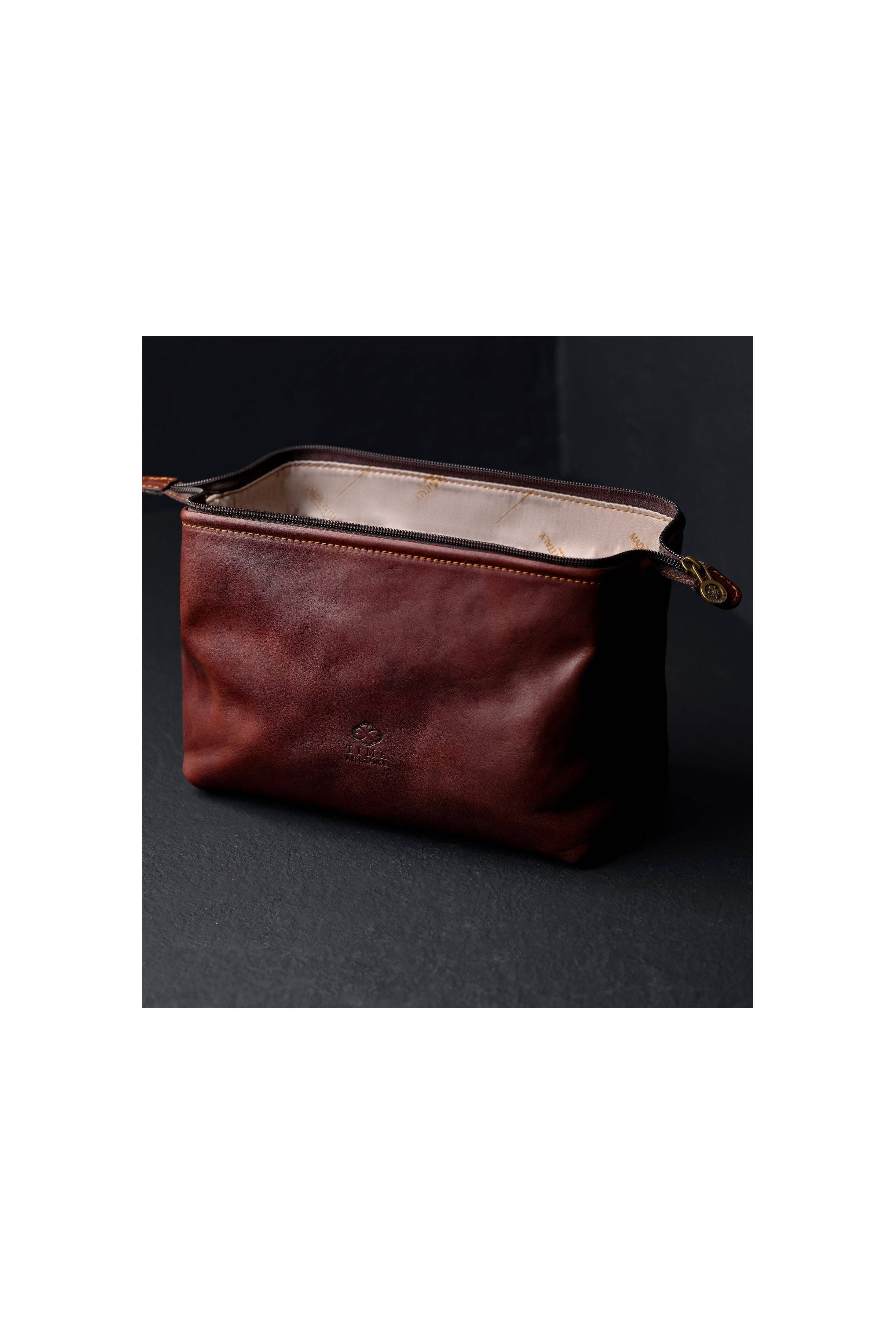 Un nécessaire de toilette en cuir pleine fleur est suffisamment spacieux pour contenir tous vos besoins quotidiens, avec une poche intérieure et une armature qui permet une ouverture complète pour un accès pratique.