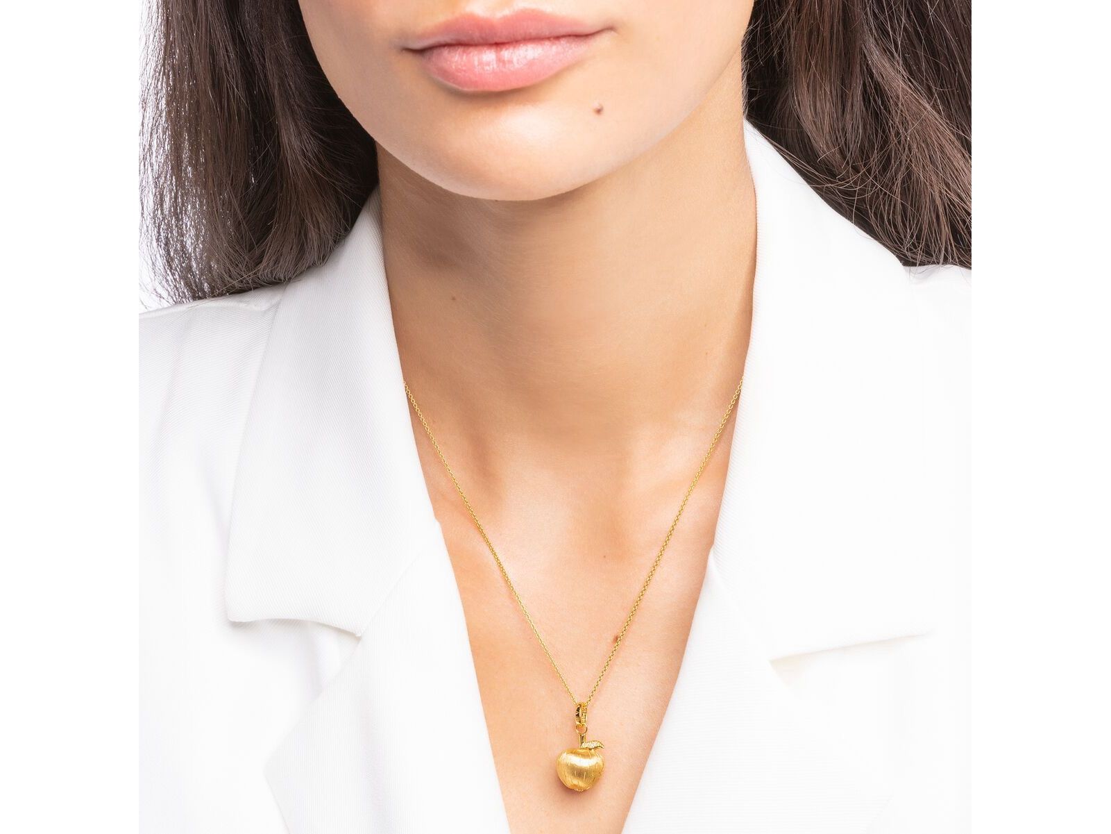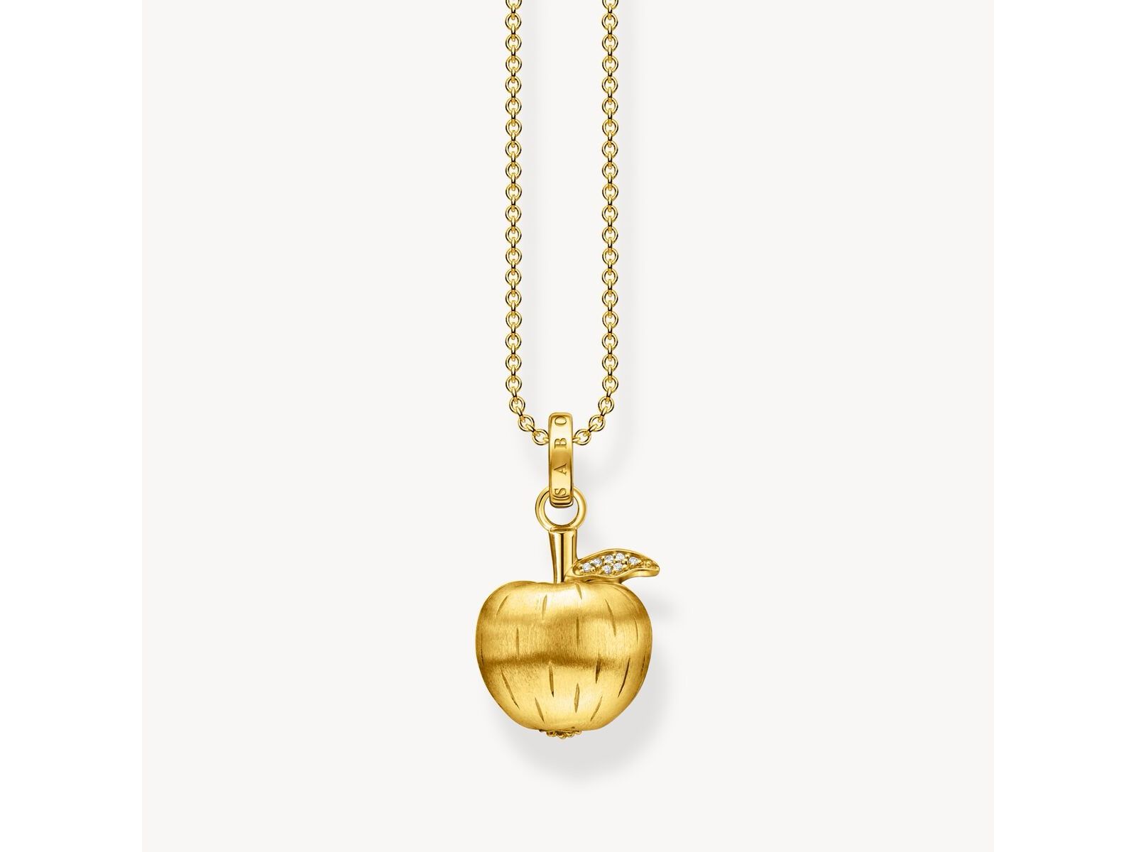 This three-dimensional gold apple chain combines elegance with a symbol of perfection. Its unique matte gold hue adds a refined and contemporary touch. Each pendant is the result of meticulous craftsmanship, revealing an exceptional attention to detail. Available alone or in a set with a cable chain, this piece of jewelry embodies both sophistication and originality, ideal for enhancing any outfit. This product is exclusively available online and in THOMAS SABO stores.