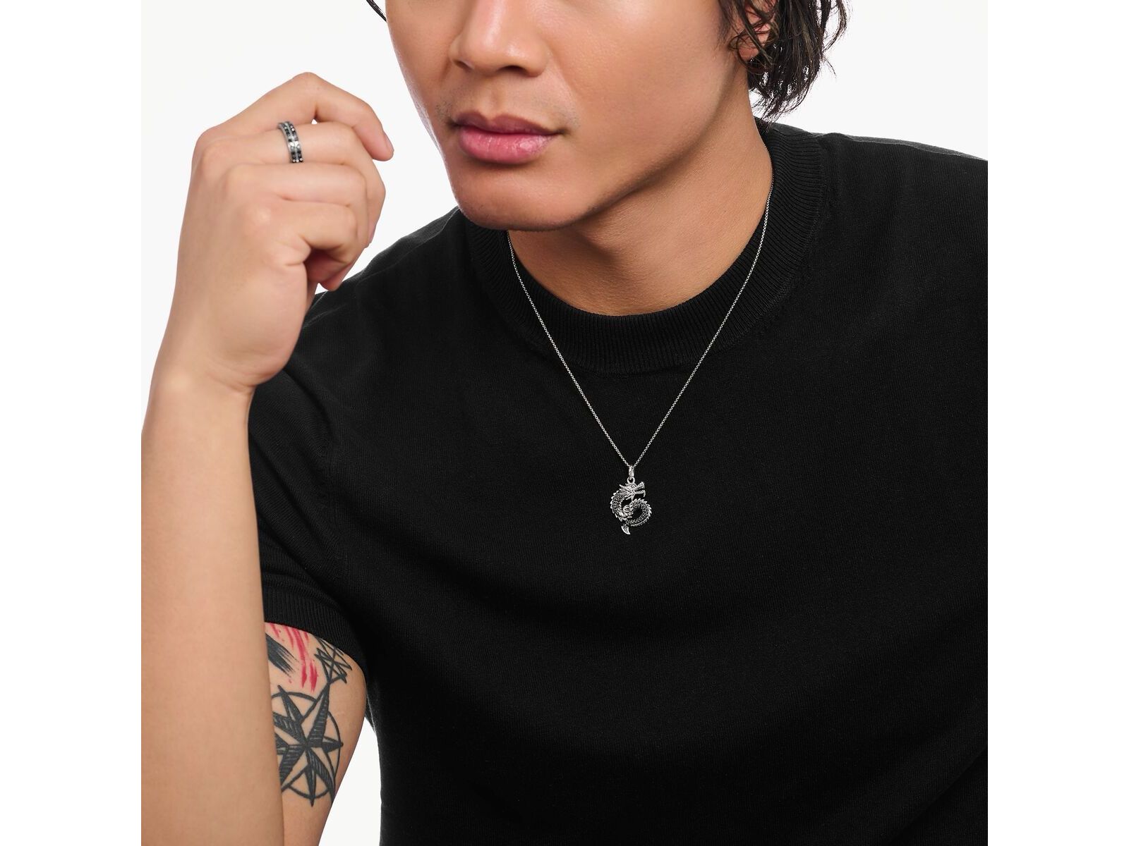 This recycled silver necklace, adorned with a finely crafted dragon pendant, embodies strength and protection. The dragon's sophisticated details, enhanced with black zirconia stones, capture the eye, while the adjustable chain (45 to 50 cm) adapts perfectly to your style. An ancient symbol of courage and direction, this unique piece accompanies your adventures with elegance and character.