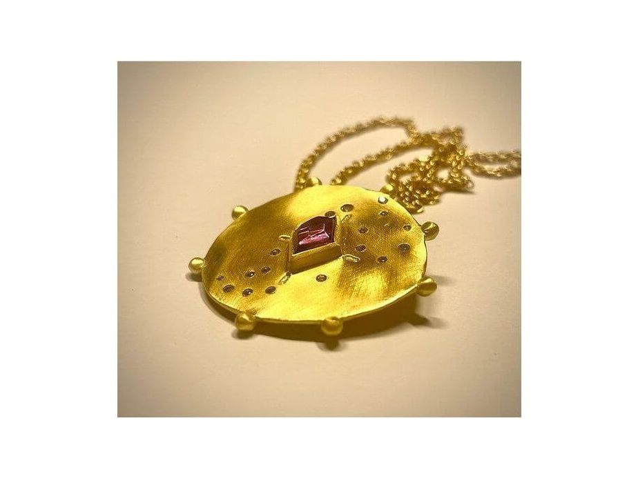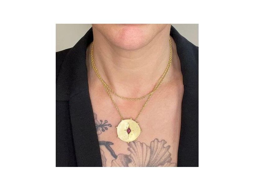 Discover our delightful Corsican Starry Night necklace, adorned with a zirconia pendant and plated in 18-carat gold. With its 1.4 mm rope chain, this piece adds a touch of elegance to any outfit. Let yourself be seduced by the radiance of the 3 cm diameter satin-brushed medallion.