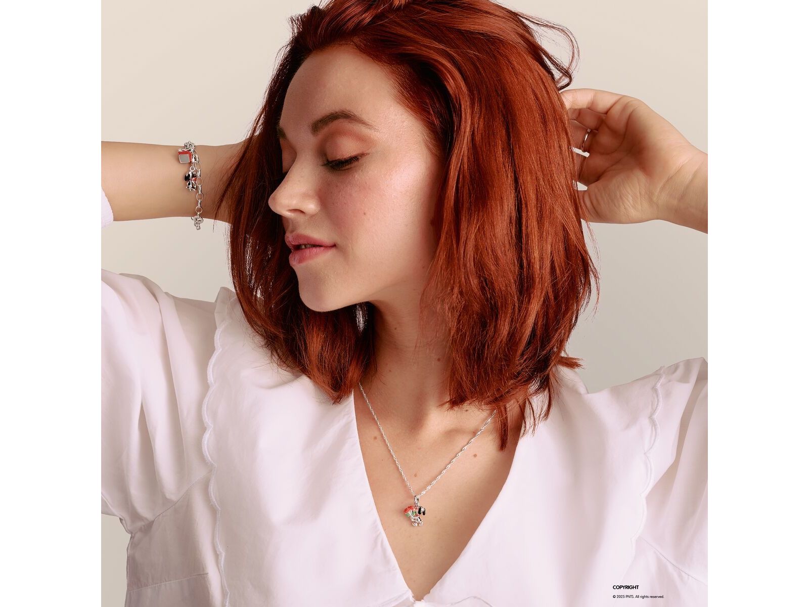 SNOOPY NECKLACE PENDANT WITH ROSES PEANUTS SILVER PENDANT