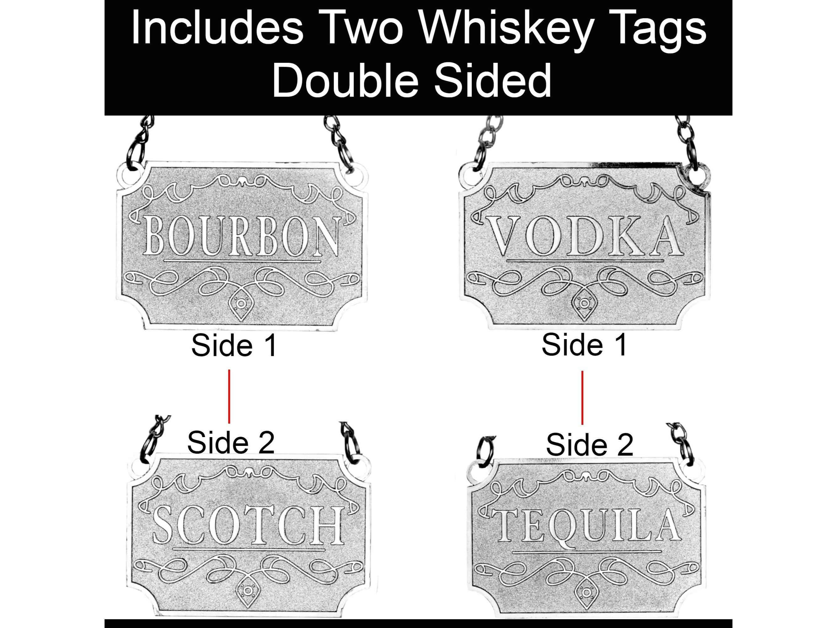 This whisky set is different from the rest: it also includes two beautiful double-sided engraved metal labels. Four classic whisky choices can be displayed on the bottle for an enhanced, luxurious presentation.