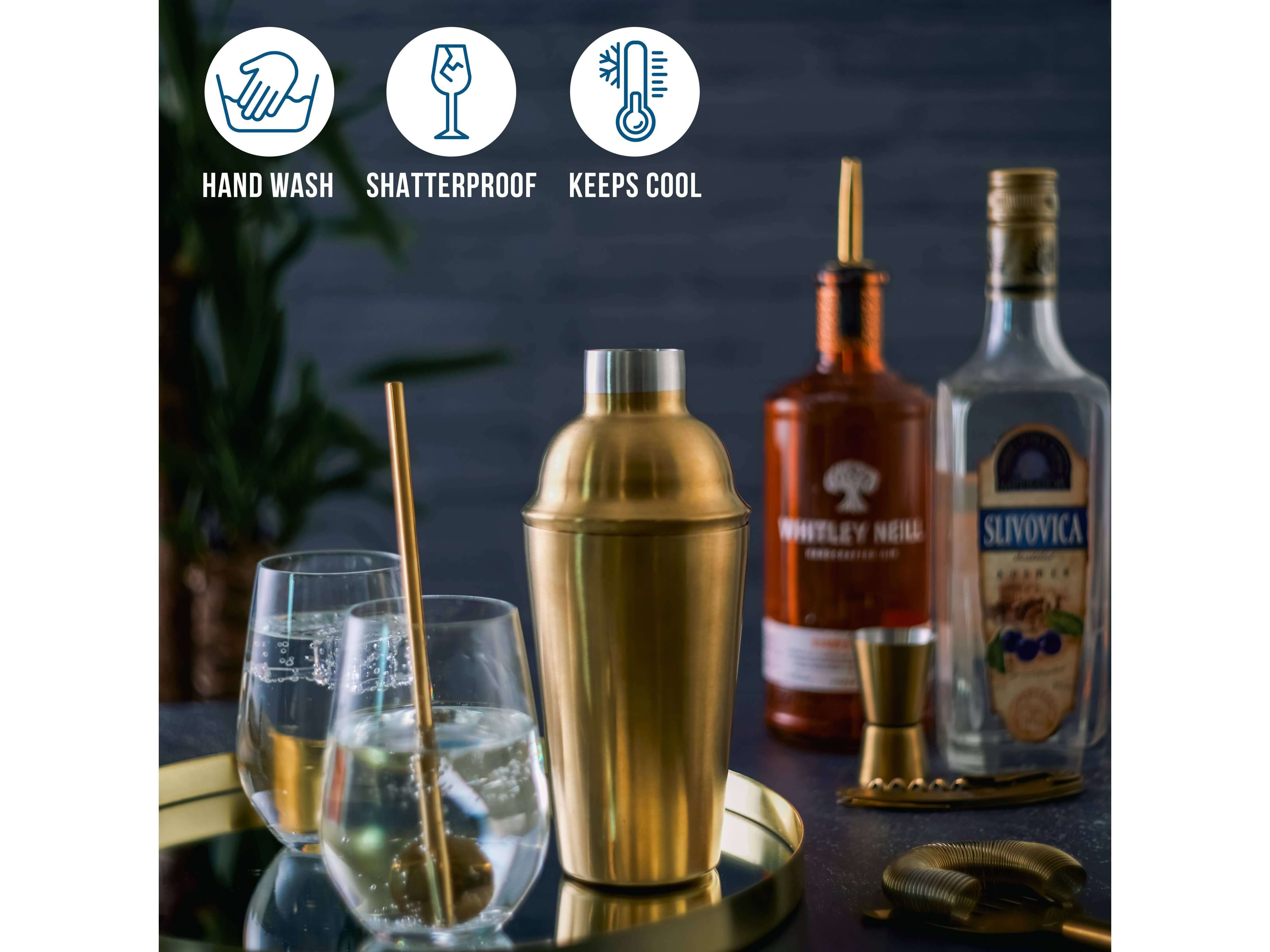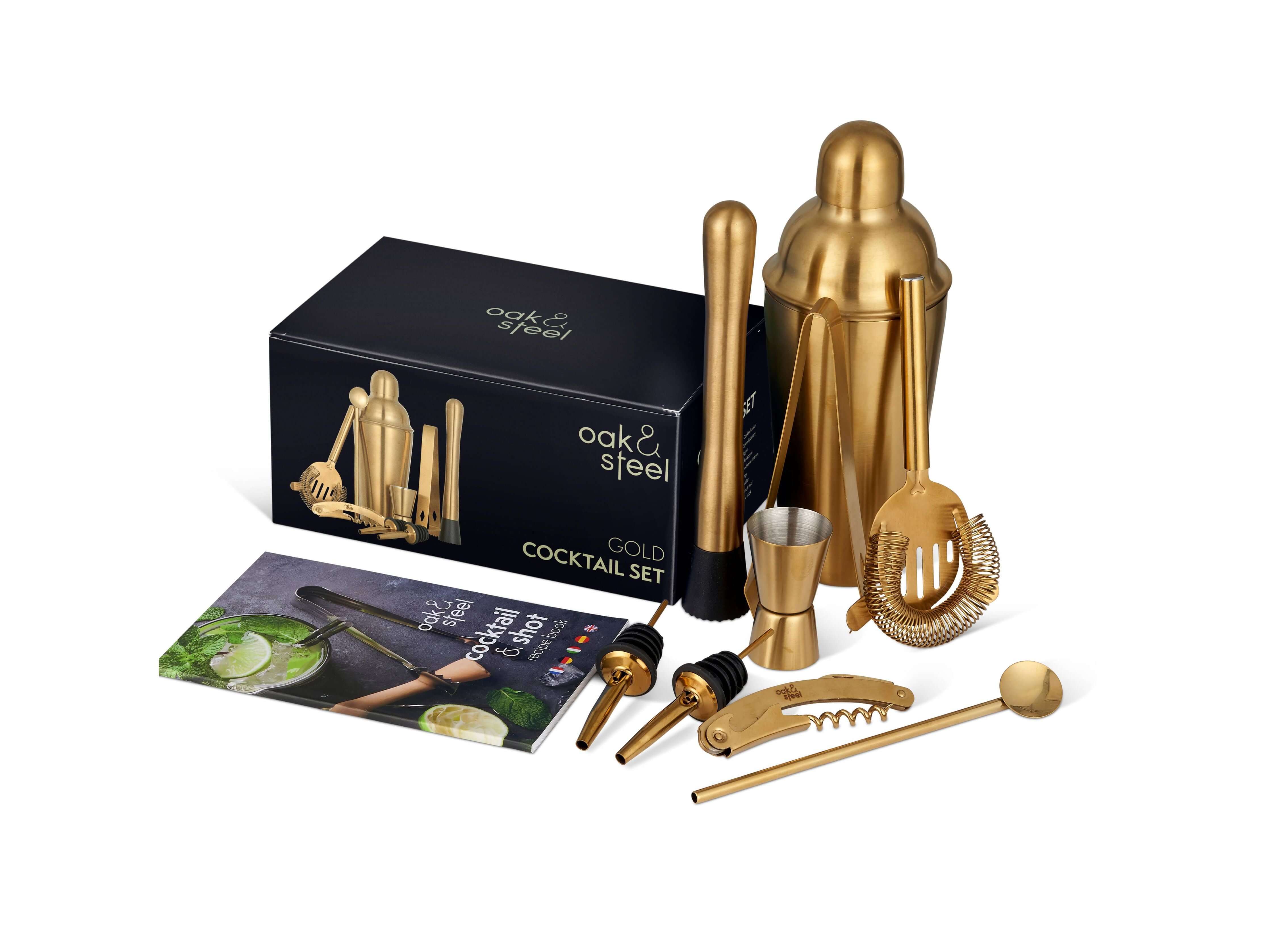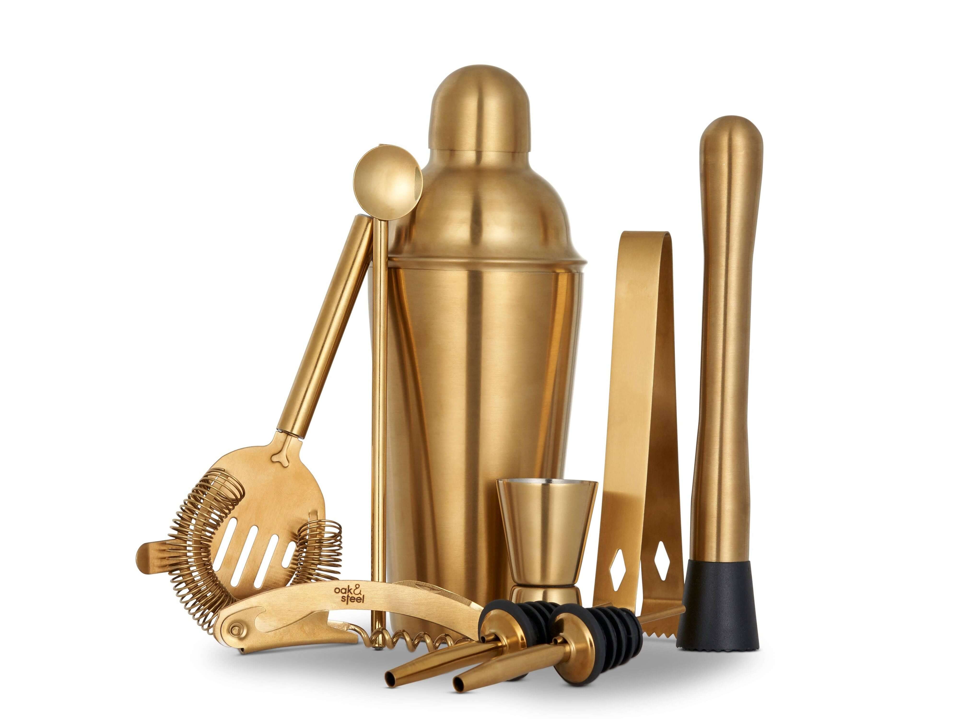 Complete Cocktail Shaker Set: Step into the world of the professional bartender with our 10-piece gold stainless steel cocktail set. This comprehensive collection contains all the essential tools needed to mix, muddle, shake, and stir your cocktails to perfection. From the elegant shaker and precise jiggers to strainers and more, you'll have everything you need to create a wide range of impressive cocktails and become the ultimate host.