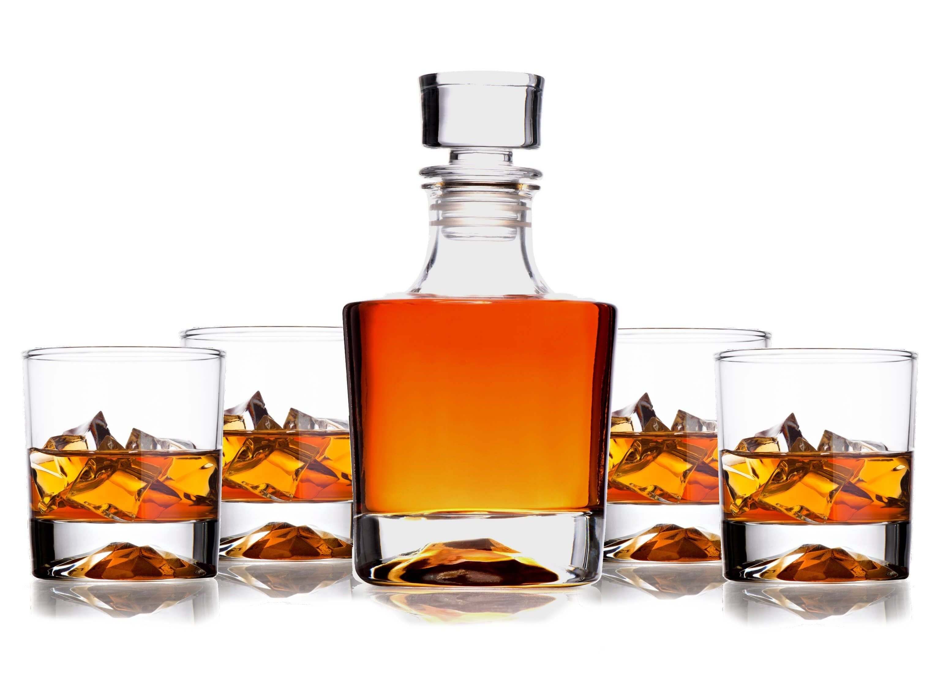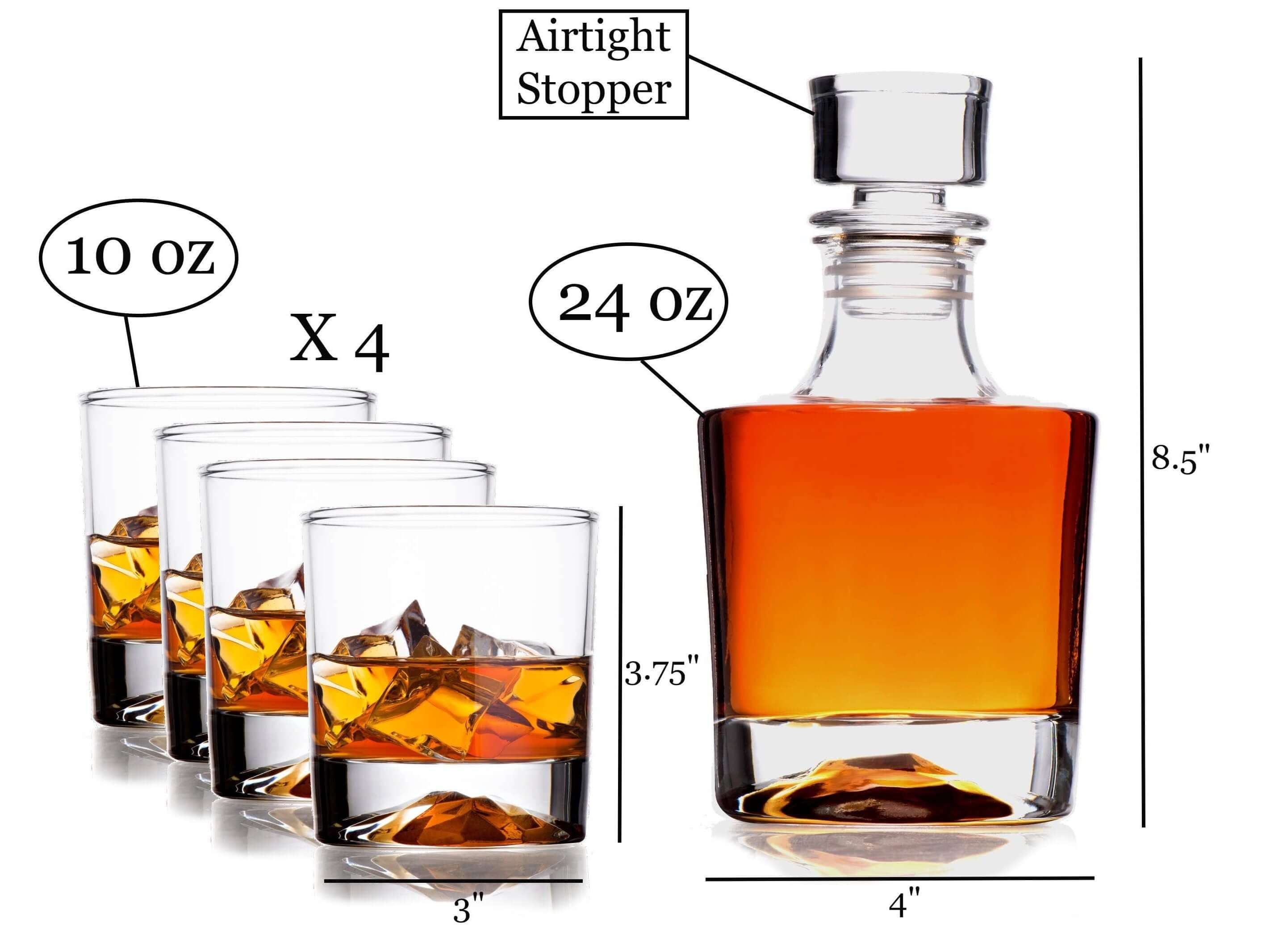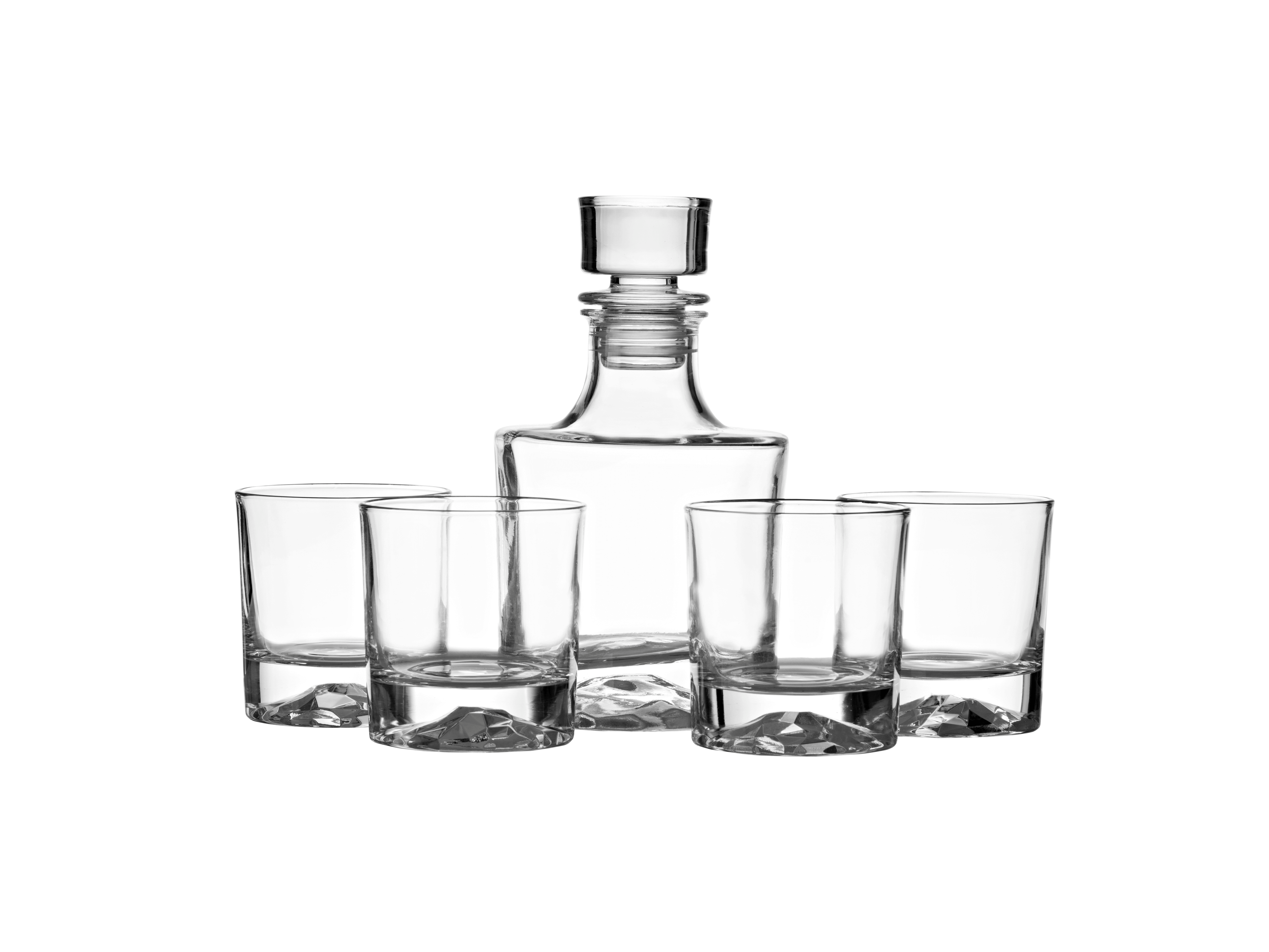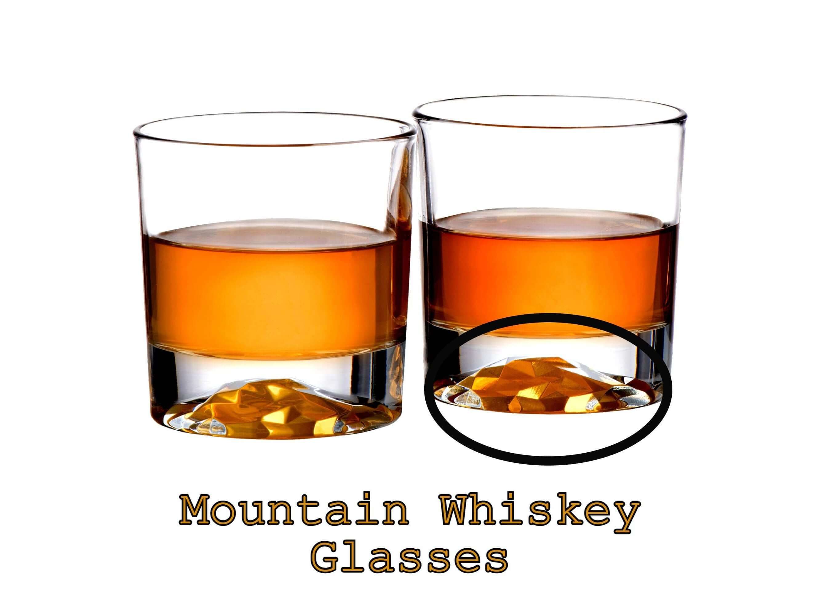 π Unique design - A dynamic mountain print pattern on the bottom of these whiskey glasses and decanter.