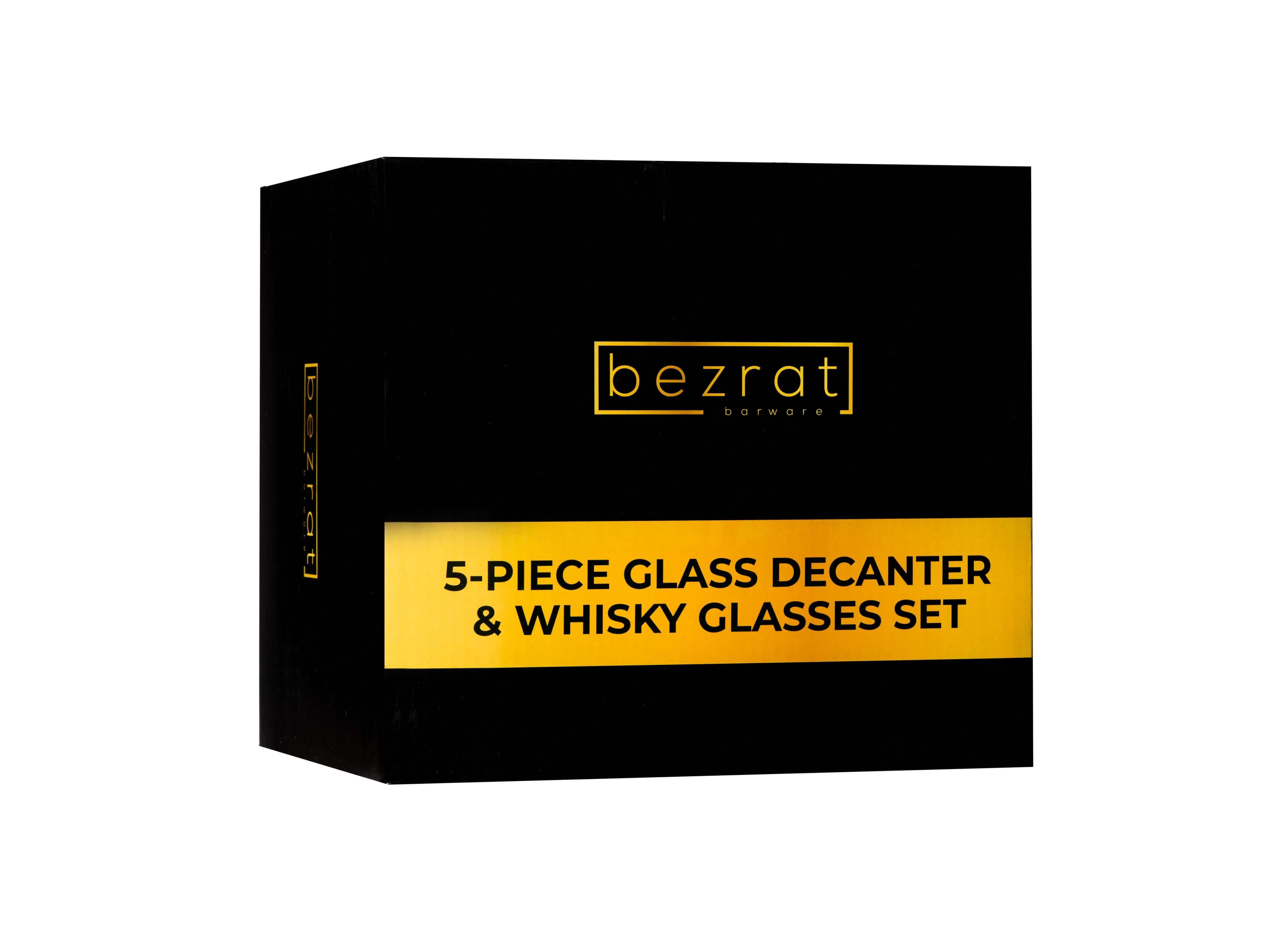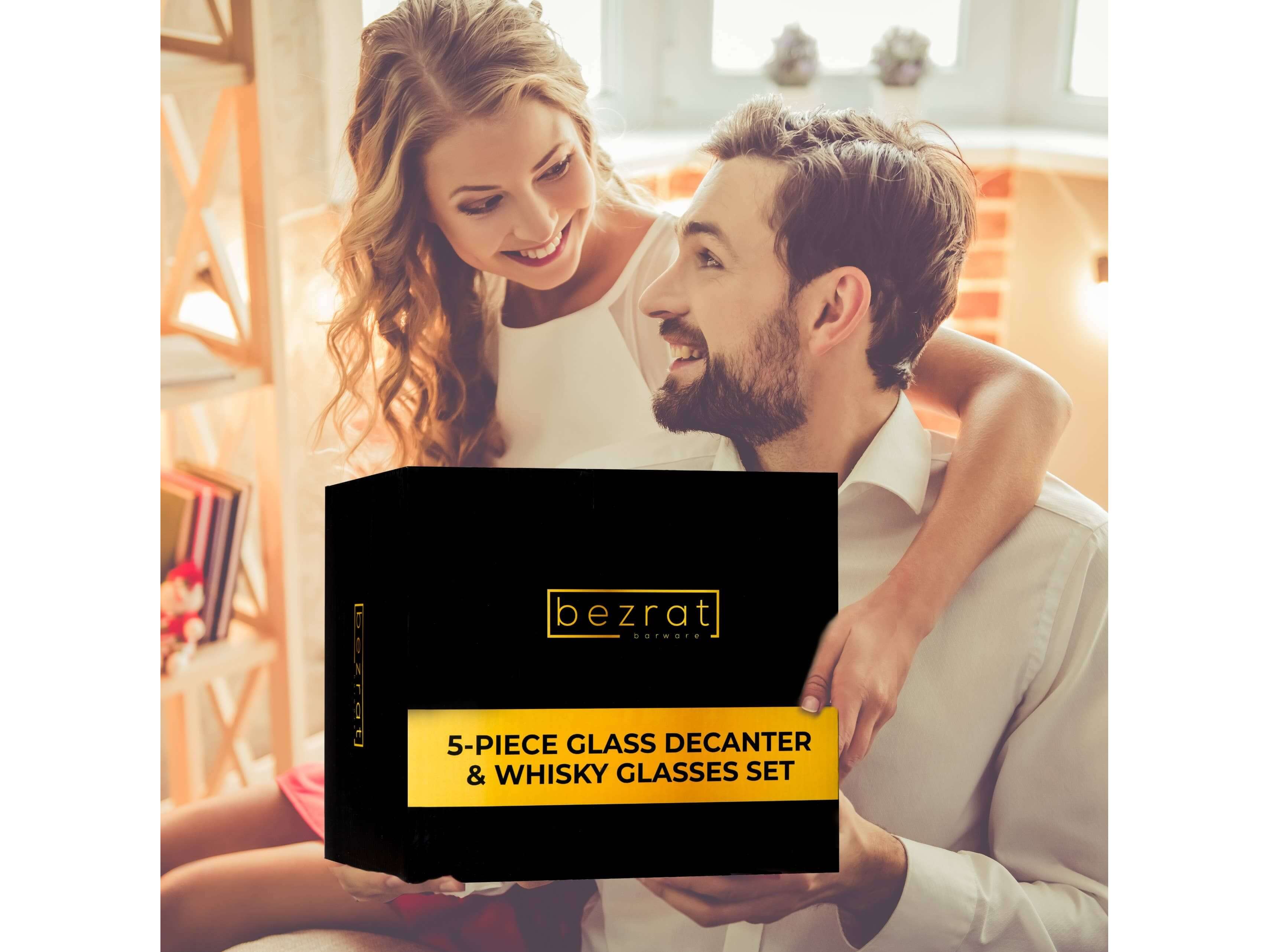 Whiskey Decanter Gift Set - 4 Whiskey Glasses - Airtight Stopper for Wine, Bourbon, Brandy, Juice, Water - Decanter Sets for Men - Christmas Gifts for Dad, Boyfriend, Husband, Him - Bezrat