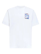 T-shirt blanc en coton biologique 100% avec col rond côtelé et manches courtes. Détails signature : logo brodé sur la poitrine et au dos, ourlet droit pour une coupe épurée. Matière douce et durable, parfait pour un style minimaliste au quotidien. Entretien facile en machine.