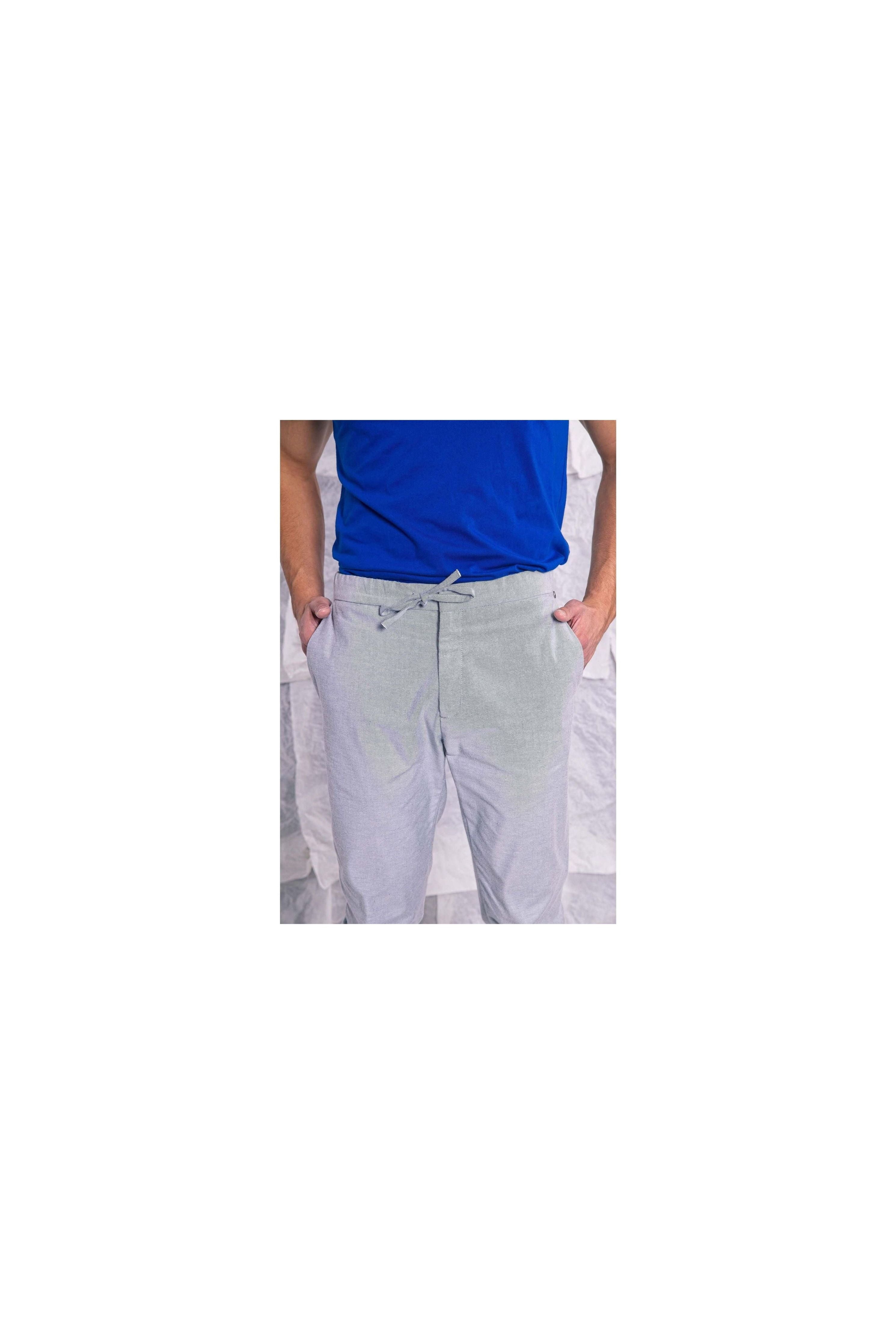 WASHED BLUE GREY COTTON PANTS WITH DRAWSTRING WAISTBAND