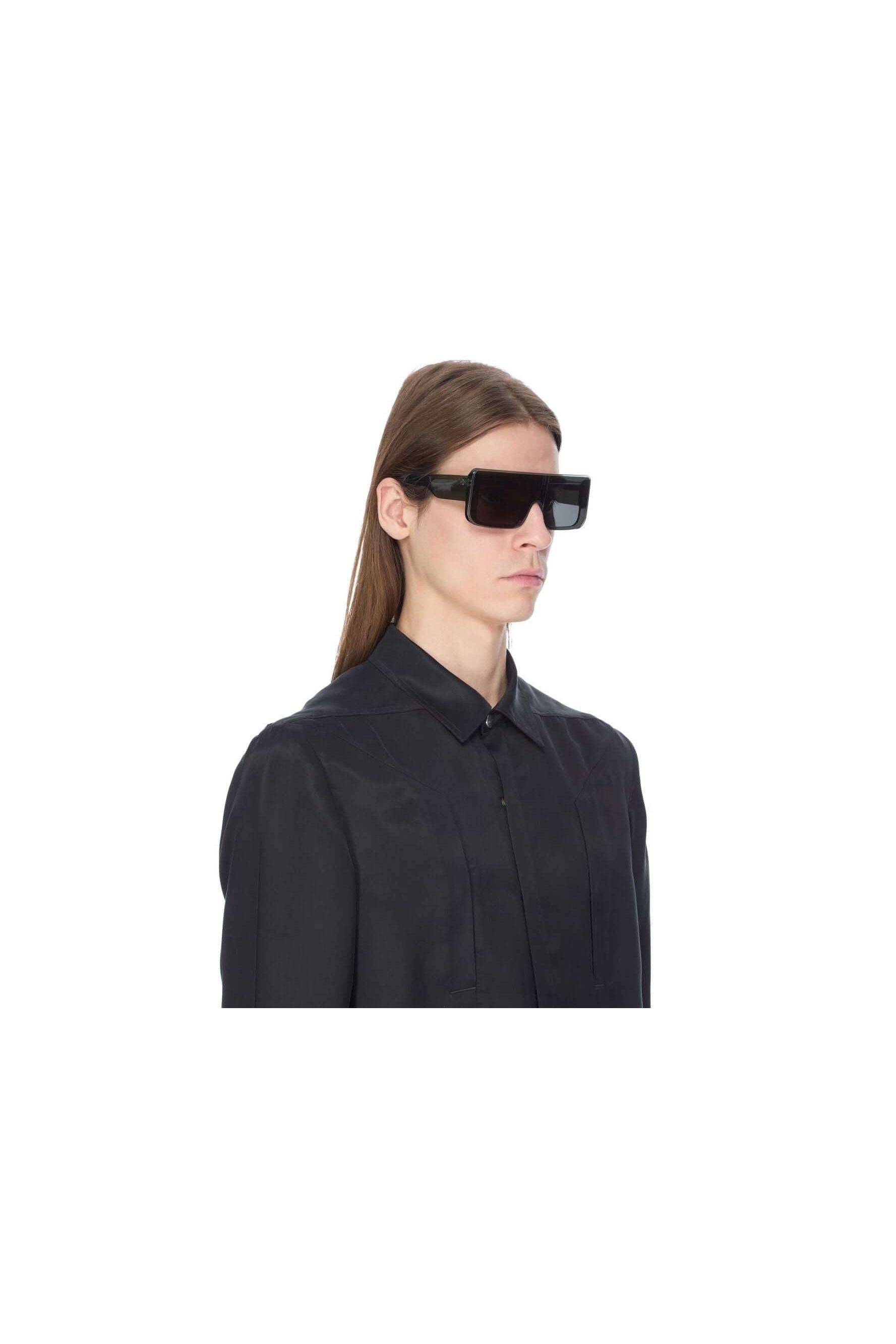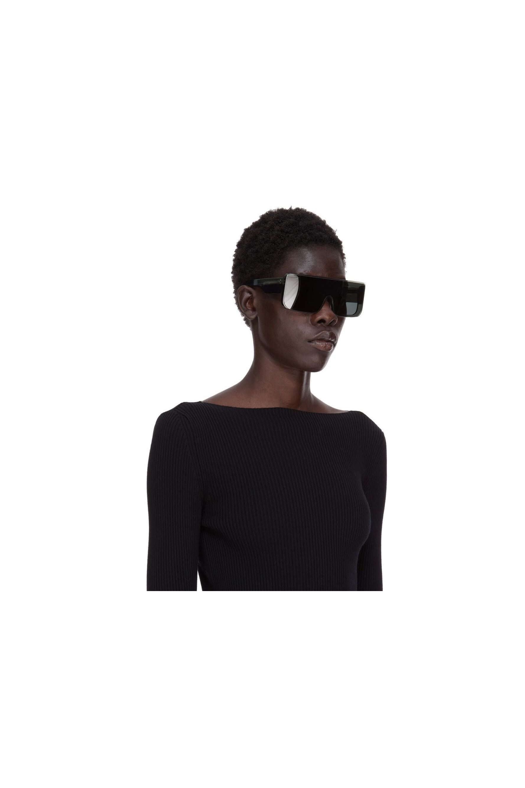 These Rick Owens FW25 Documenta sunglasses combine boldness and elegance. Their wide rectangular acetate frame offers a distinctive style, enhanced by a wide temple adorned with three iconic silver rivets. The single black lens effectively protects your eyes while asserting your personality. Crafted from high-quality materials, these glasses guarantee comfort and durability, perfect for enhancing your looks with an avant-garde touch.