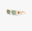 Les lunettes de soleil Memphis incarnent l'audace avec leur monture rectangulaire en acétate crème, rehaussée de détails dorés et du logo à monogramme losange Casablanca sur les branches. Dotées d'une protection UV 100 % contre les rayons UVA et UVB, elles allient style contemporain et fonctionnalité. Fabriquées au Japon, elles arrivent dans un étui de marque accompagné d'une pochette en flanelle de satin et d'un chiffon en microfibre pour un entretien optimal.