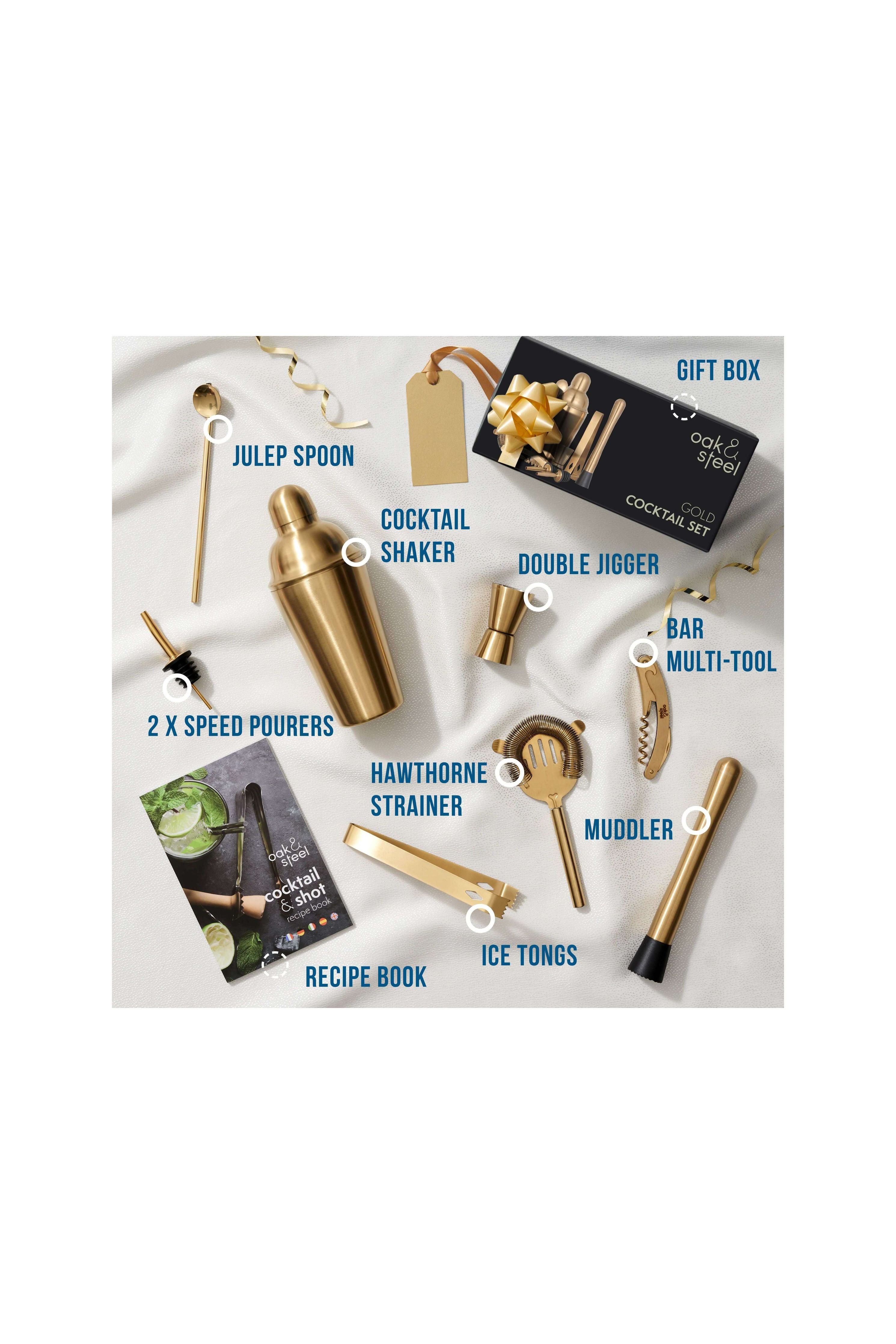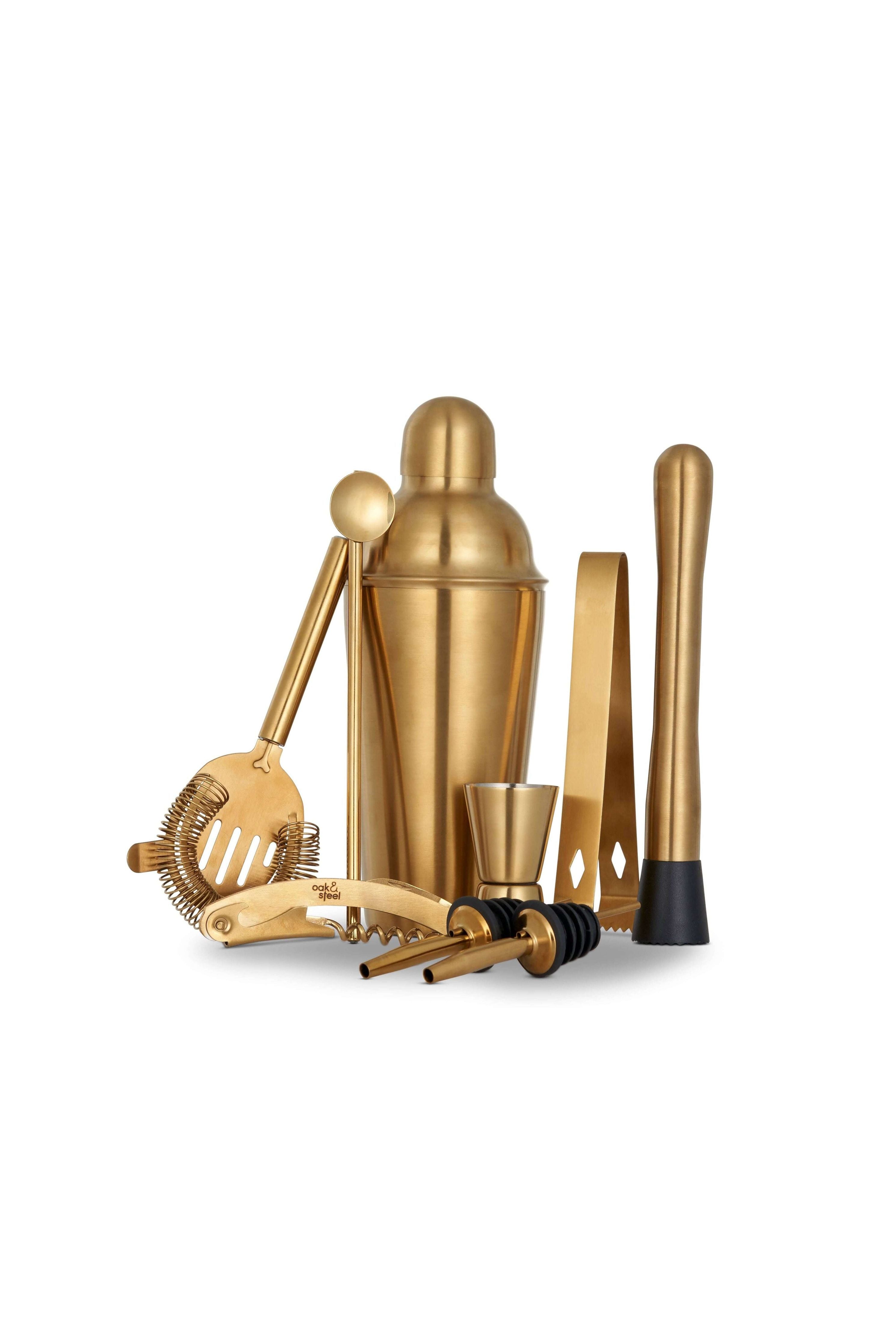 Complete Cocktail Shaker Set: Step into the world of the professional bartender with our 10-piece gold stainless steel cocktail set. This comprehensive collection contains all the essential tools needed to mix, muddle, shake, and stir your cocktails to perfection. From the elegant shaker and precise jiggers to strainers and more, you'll have everything you need to create a wide range of impressive cocktails and become the ultimate host.