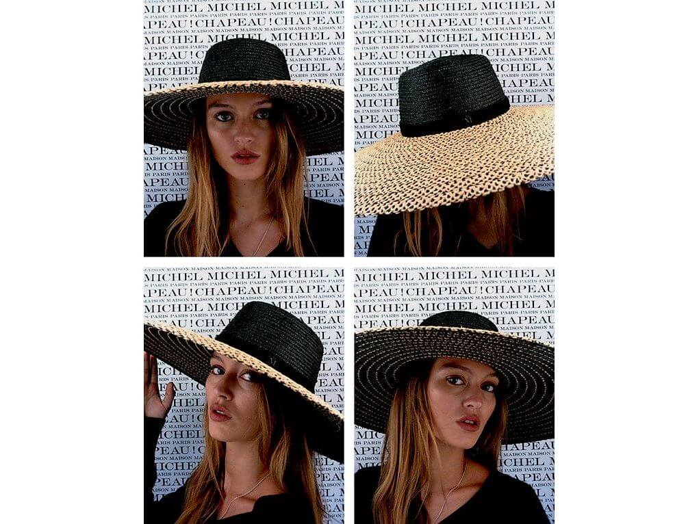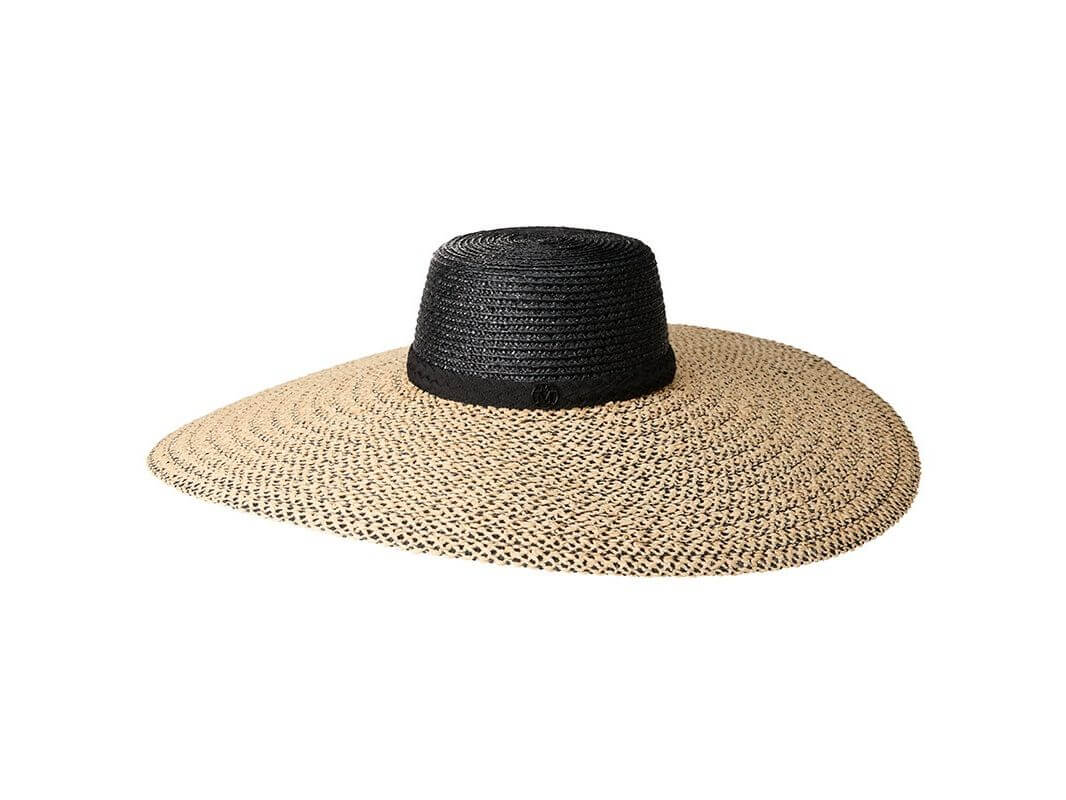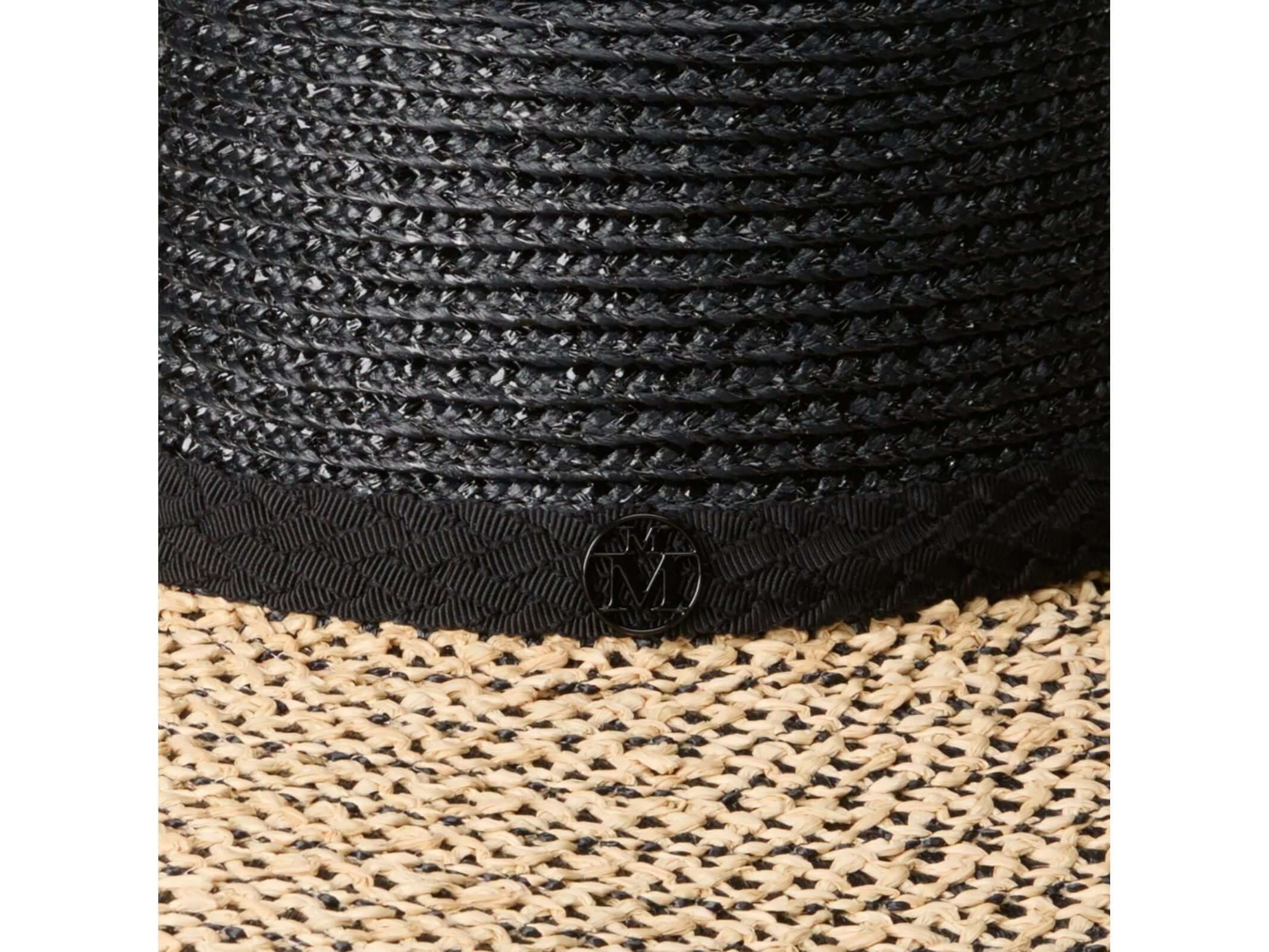 Combining elegance and refinement, the GINA Bicolor wide-brimmed hat in black and natural straw enhances your outfits while providing ideal protection from the sun. Its black Maison Michel signature adds a prestigious touch, perfect for asserting a chic and distinguished style on your sunny days.