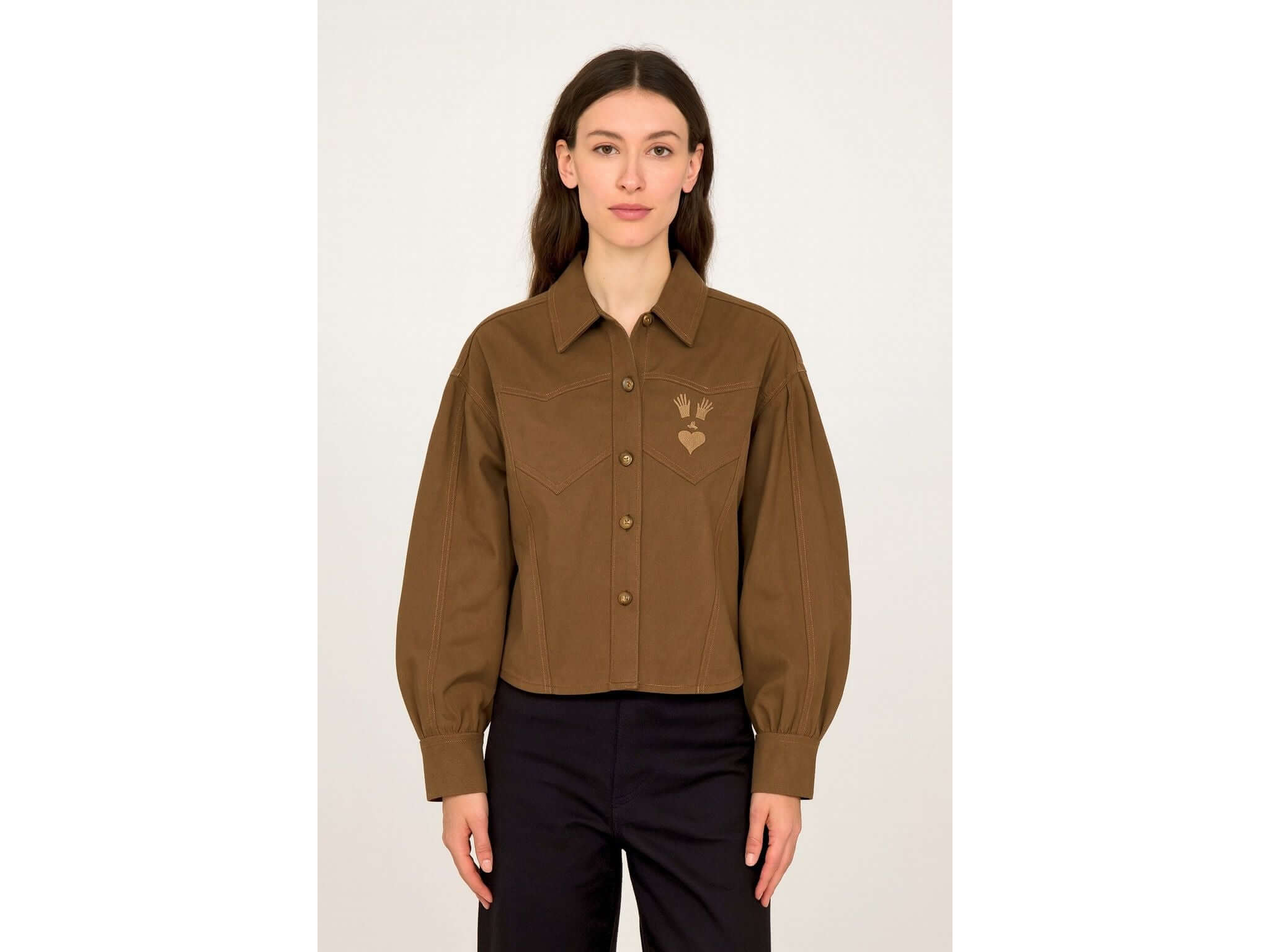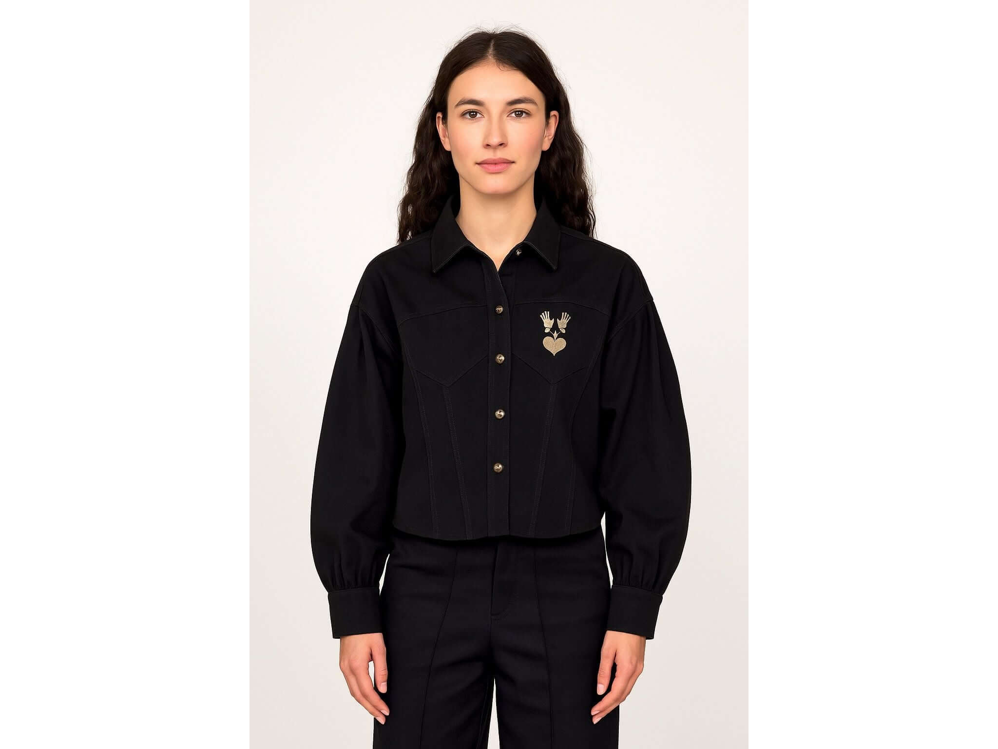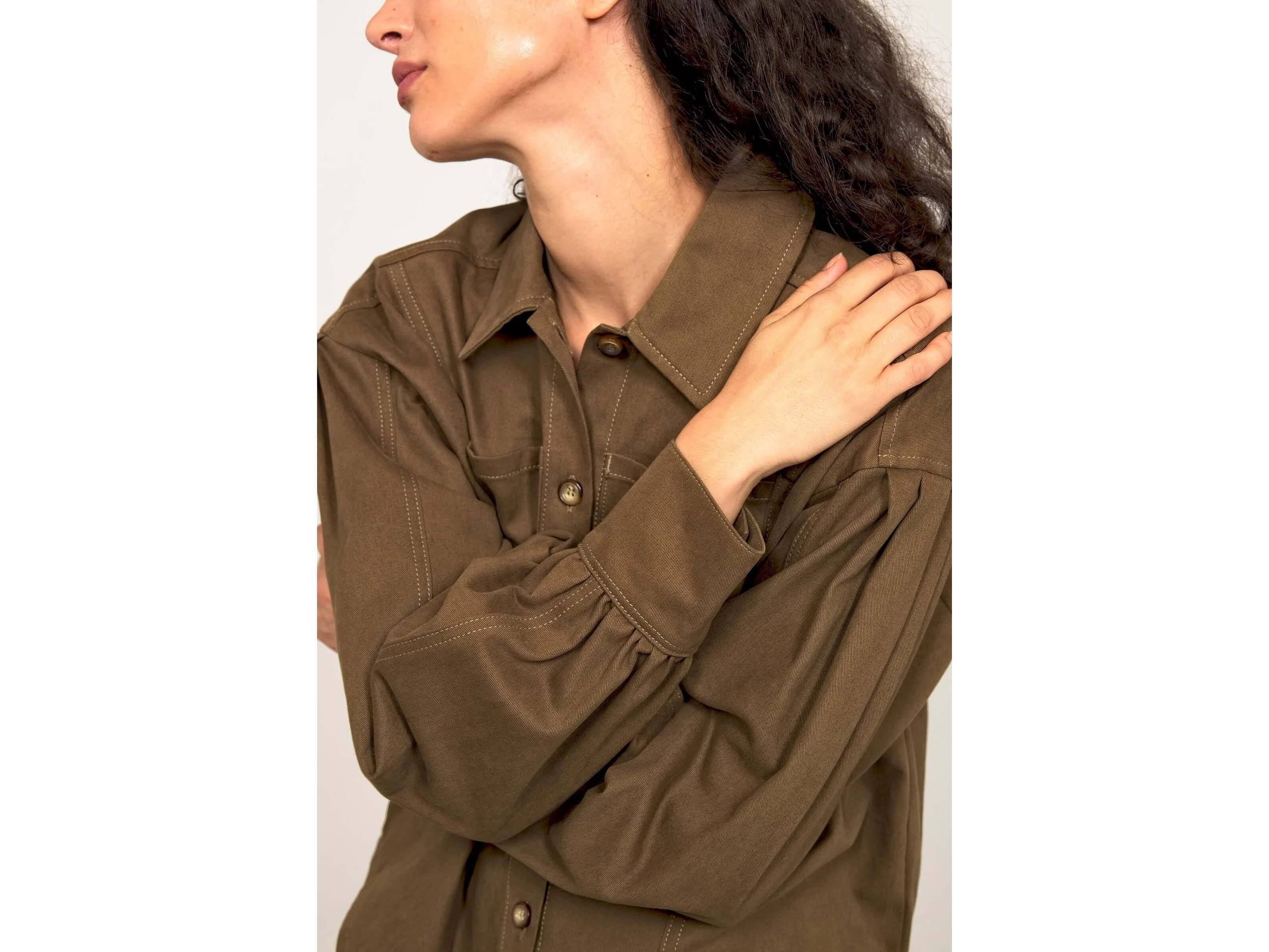 Discover the Amelia Shirt, Misericordia's signature take on the leg-of-mutton sleeve. Its generous pleats at the shoulders create volume and presence, elegantly restructuring your silhouette. Ultra-feminine and timeless, this shirt combines sophistication with a refreshing touch of whimsy. Wear it with a pencil skirt or high-waisted trousers for a harmonious contrast that enhances your look. A stylish piece that transcends trends with disarming simplicity.