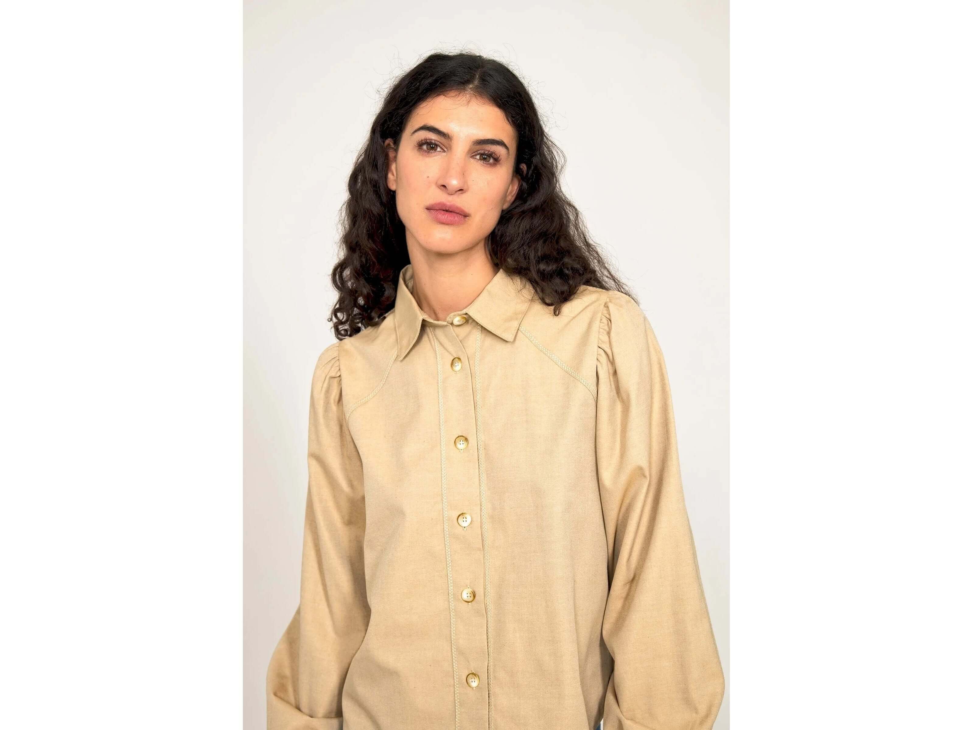 Discover the WATER LILY Shirt, a must-have piece inspired by Renaissance elegance. Its wide, puffed sleeves add volume and femininity to your silhouette, while the timeless beige adapts to all your styles. Perfect with high-waisted trousers or skirts to accentuate your waist, this expressive shirt transforms every outfit into a unique creation. A refined garment that tells the story of fashion and celebrates your individuality. ► The model is wearing size S and is 177cm tall