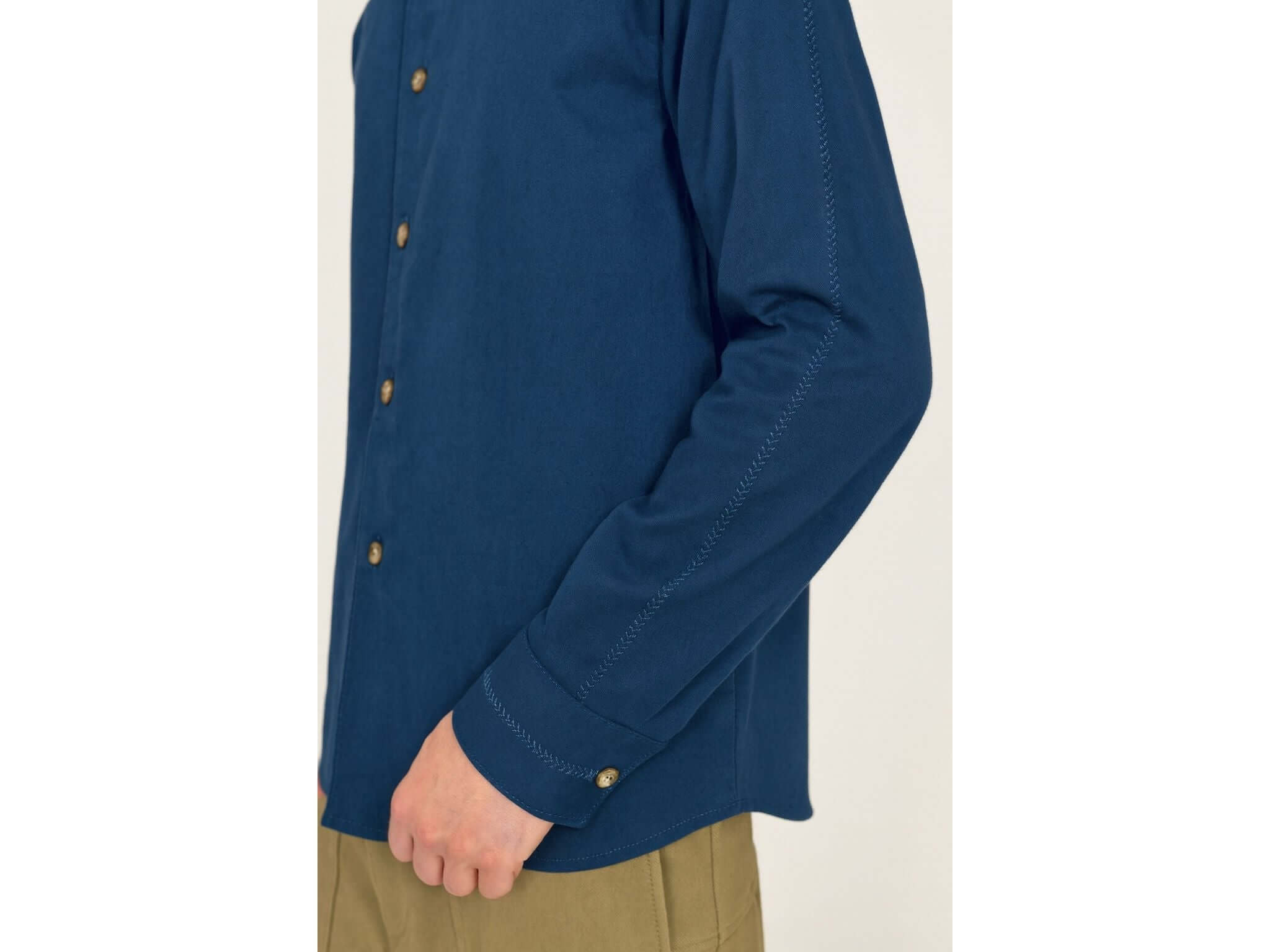 ► Tone-on-tone embroidered topstitching details along the sleeve and on the collar
