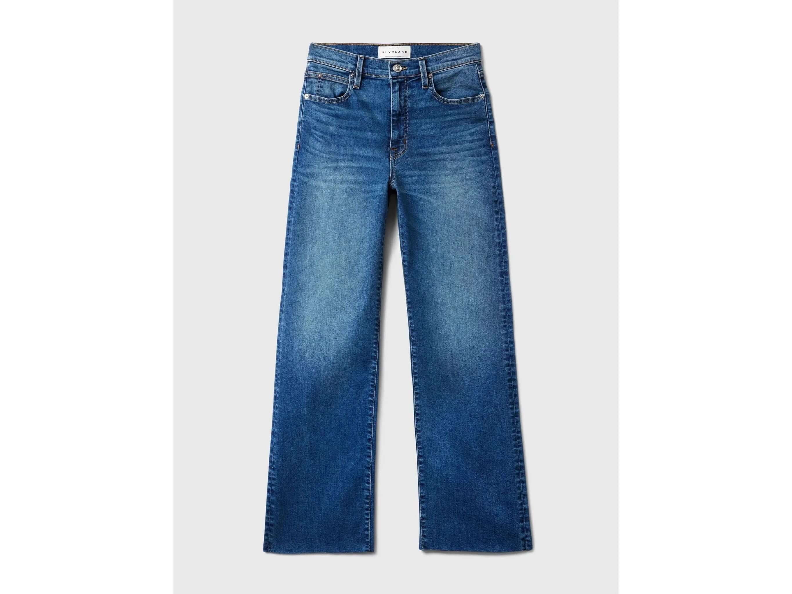 The Grace Coyote Creek Blue jeans feature a high waist, a wide leg, and a raw hem for a modern, relaxed style. Made from 100% cotton denim, they offer comfort and durability, perfect for a timeless and authentic look.