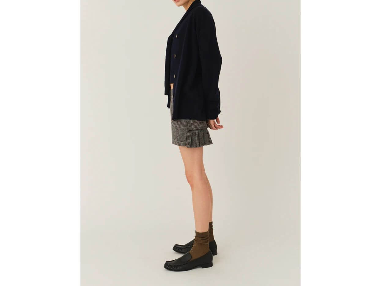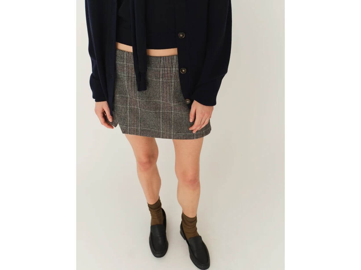 This Taylor mini skirt in a grey check pattern combines elegance and modernity with a subtle hem detail. Comfortable thanks to its wool blend, it elevates your outfits for a refined style.