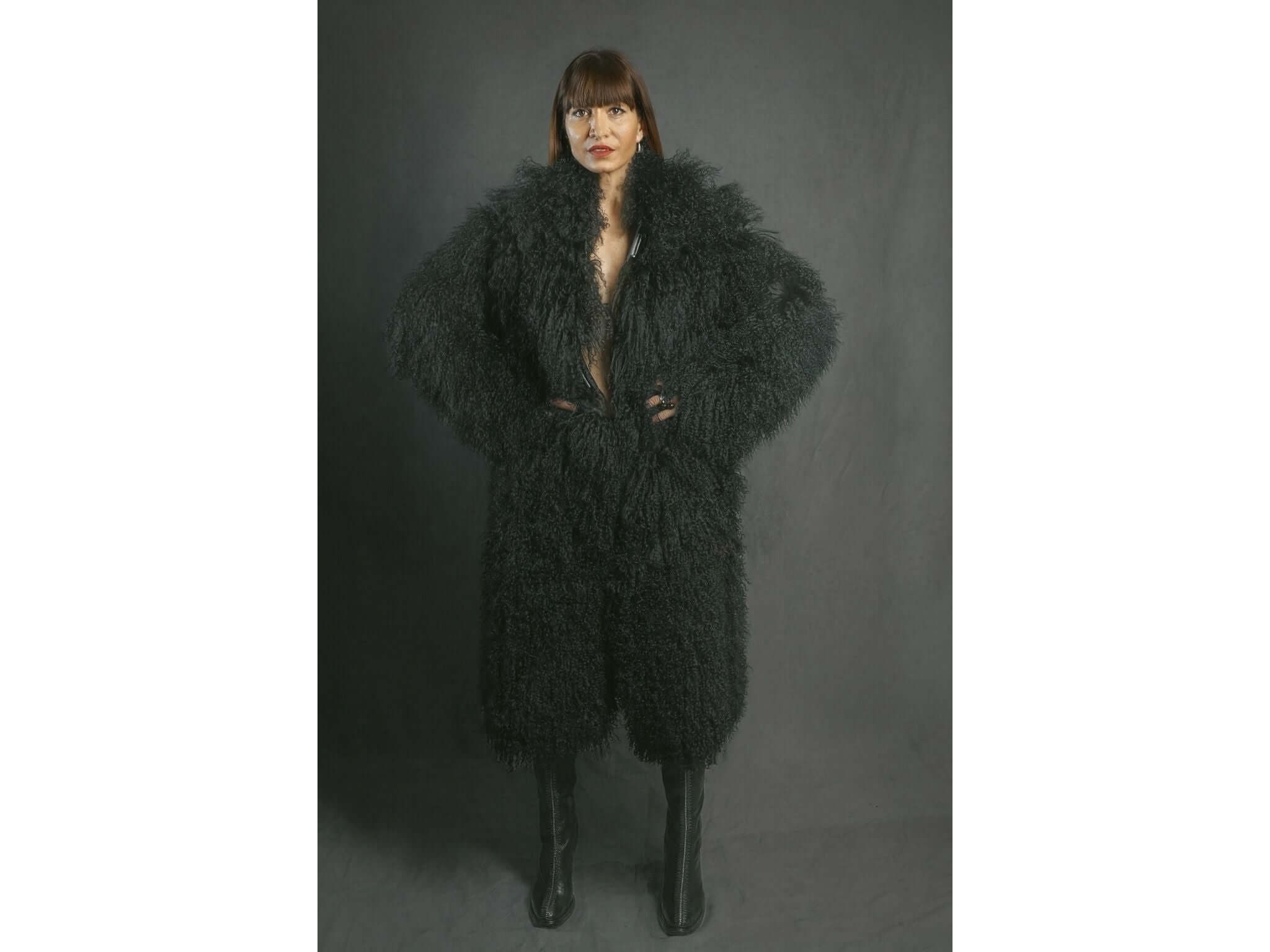An exceptional coat crafted from Mongolian lambskin, entirely made in Paris. This statement piece combines timeless luxury with ingenuity: its refined metal closure and reversible construction offer rare versatility. Wear it traditionally or reversed for two distinct styles. A prestigious investment for the woman who refuses to compromise, marking every appearance with absolute elegance and unparalleled French quality.