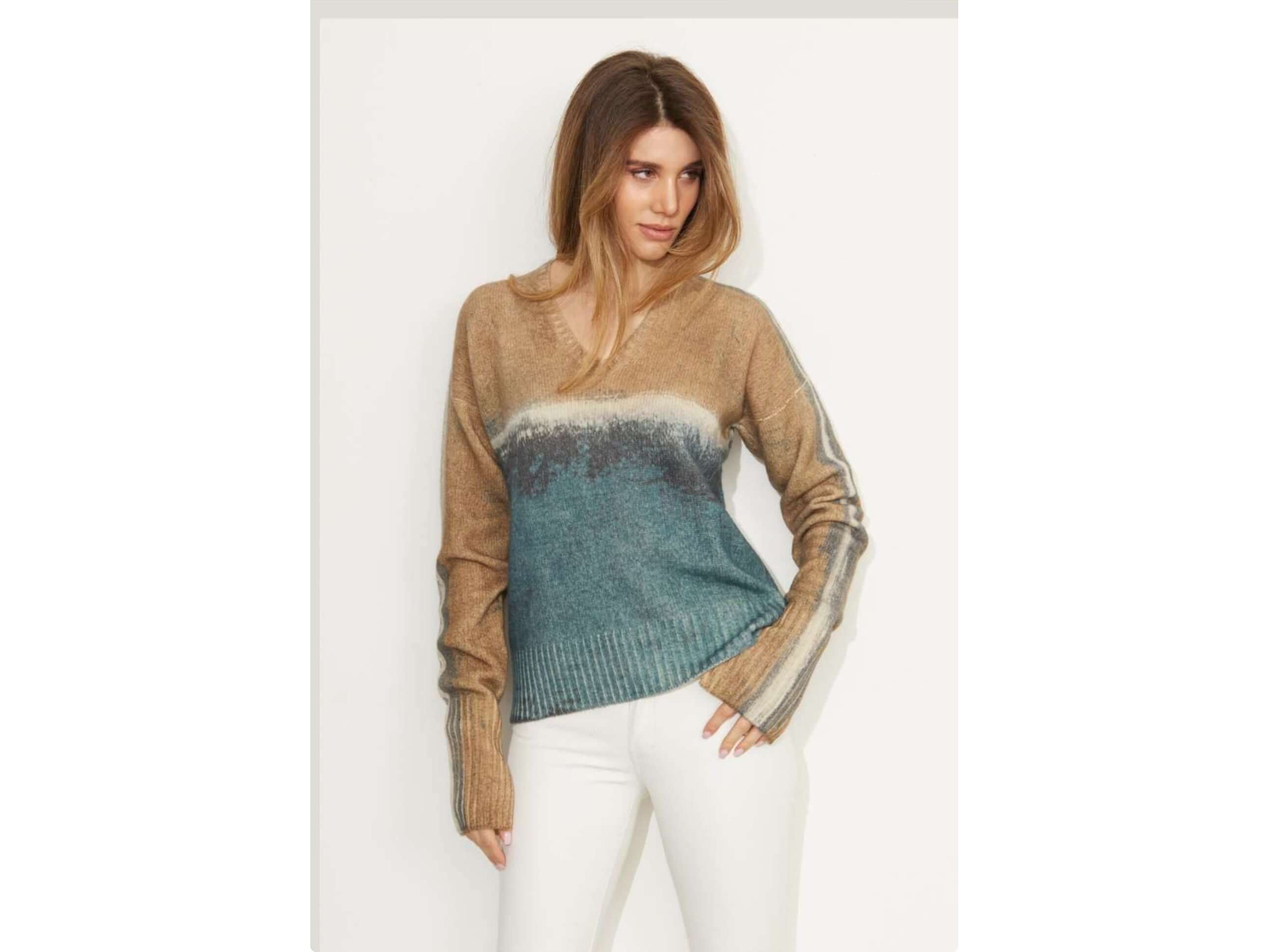 This 4-ply V-neck sweater, made of 100% cashmere, offers exceptional softness and subtle elegance thanks to its refined color gradient.
