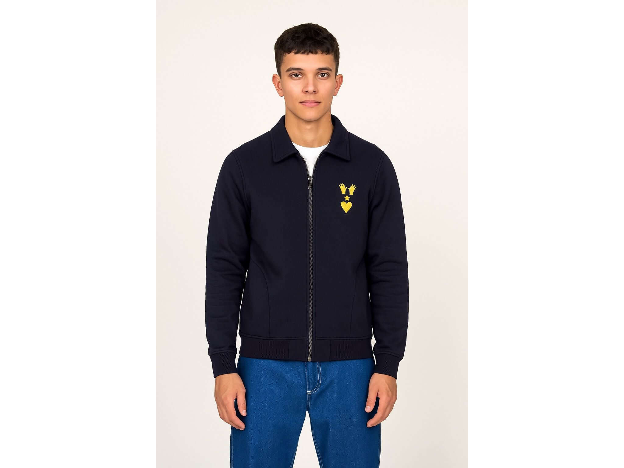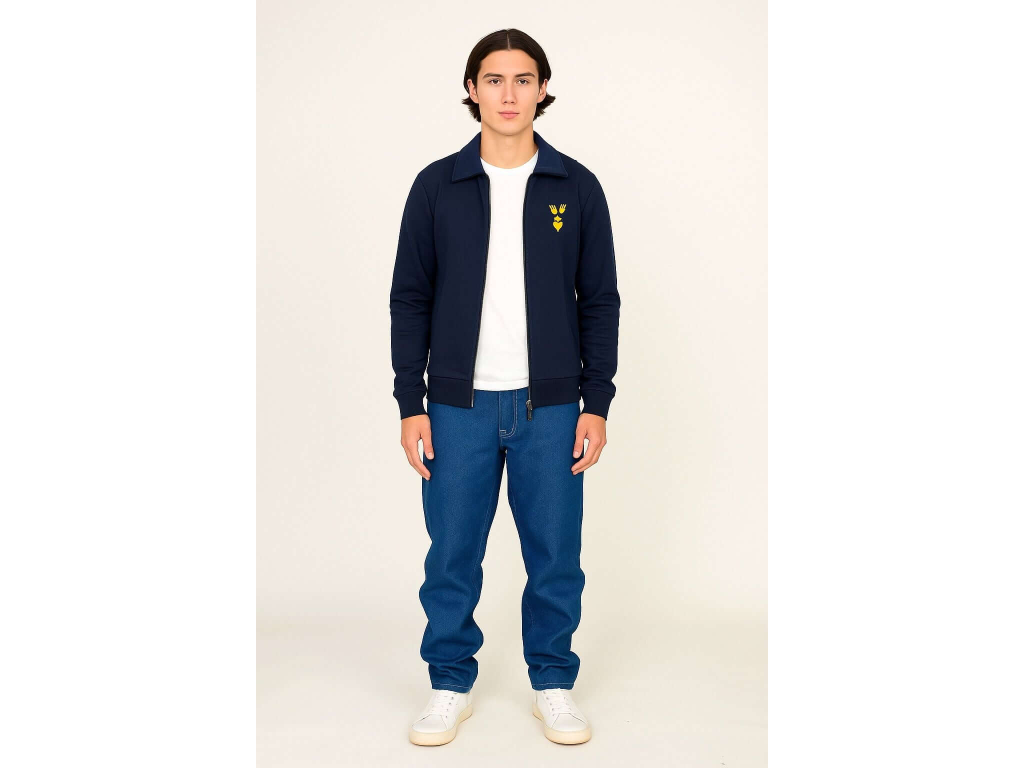 Discover the AGUSTIN NAVY BLUE SWEATSHIRT, the statement piece that redefines casual elegance. Designed like a premium fleece jacket, this sweatshirt combines the unparalleled comfort of a casual garment with the sophisticated look of a chic jacket. Our signature "Manos, Espíritu y Corazón" logo adds a touch of modern character that transforms your silhouette. A wardrobe essential, this reimagined basic offers impeccable finishing and a contemporary cut. Wear a timeless garment that combines impeccable style with a commitment to the future. A step ahead guaranteed with every wear. ► The model is wearing size M and is 186cm tall