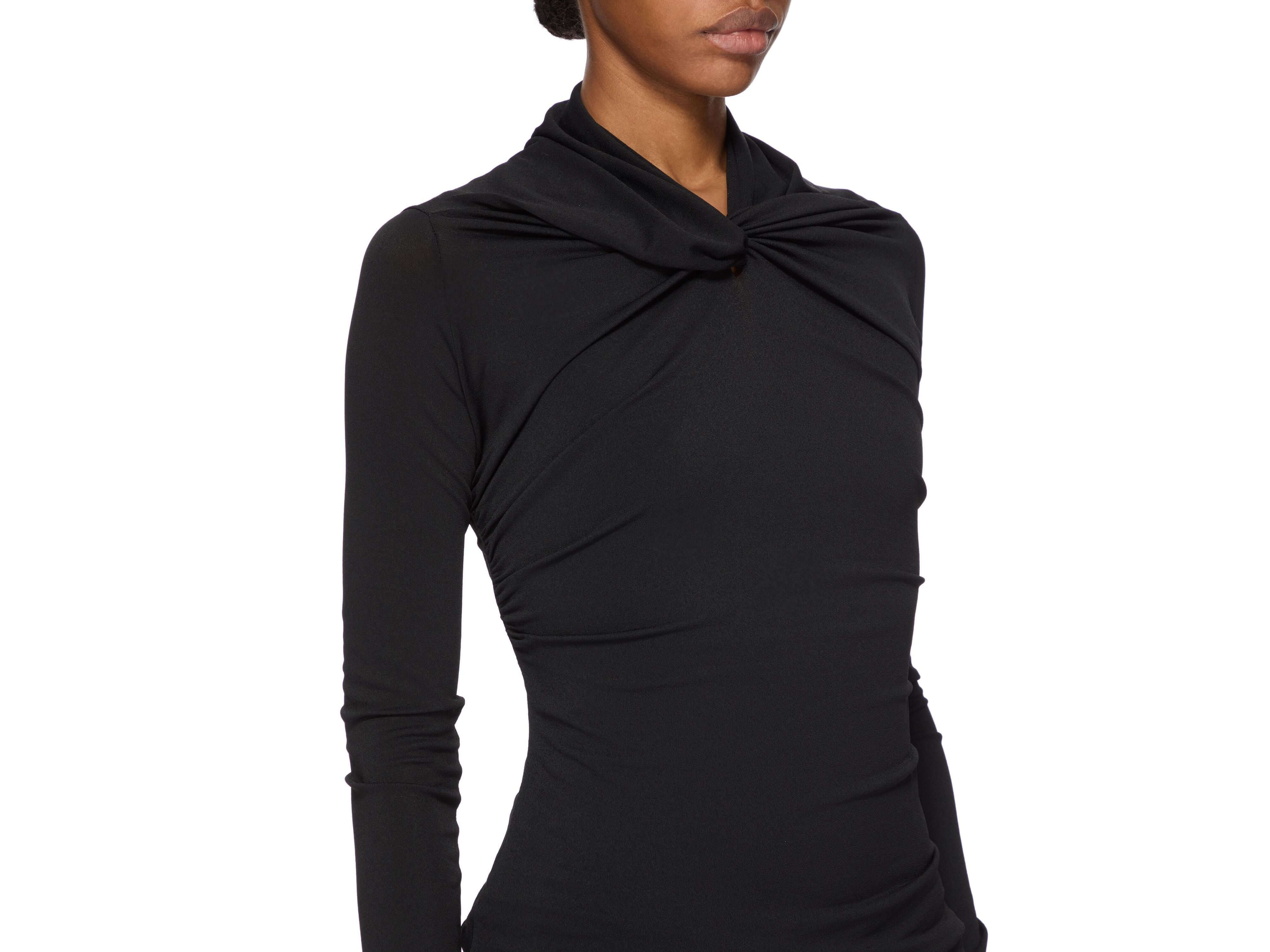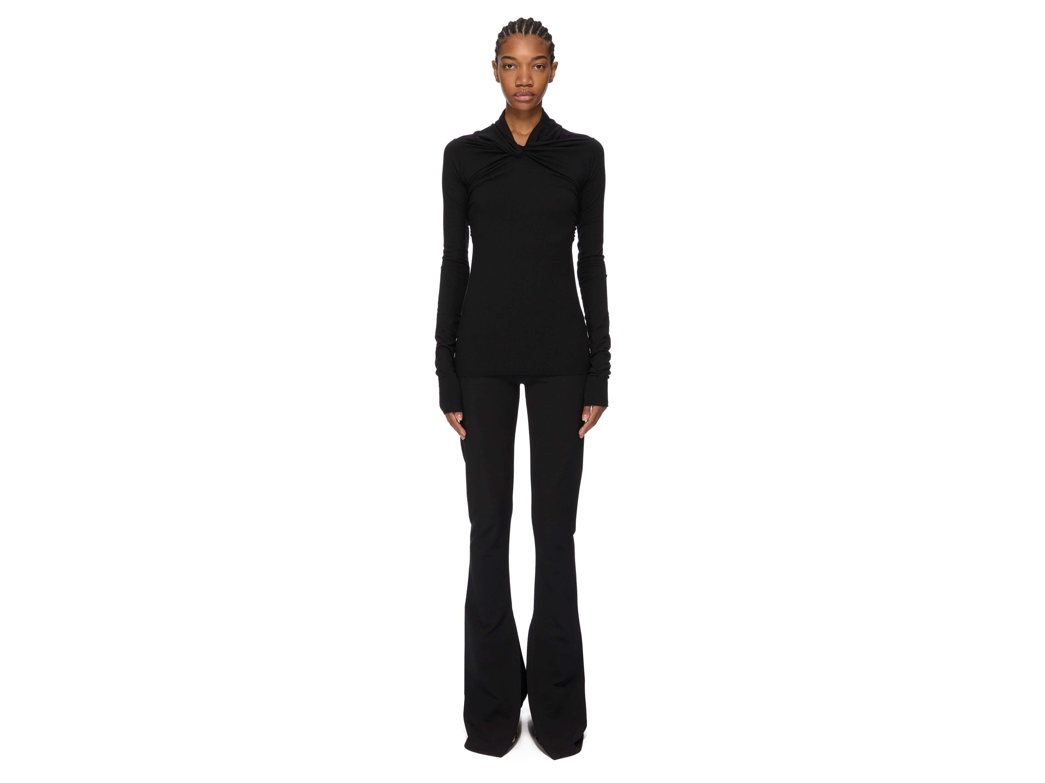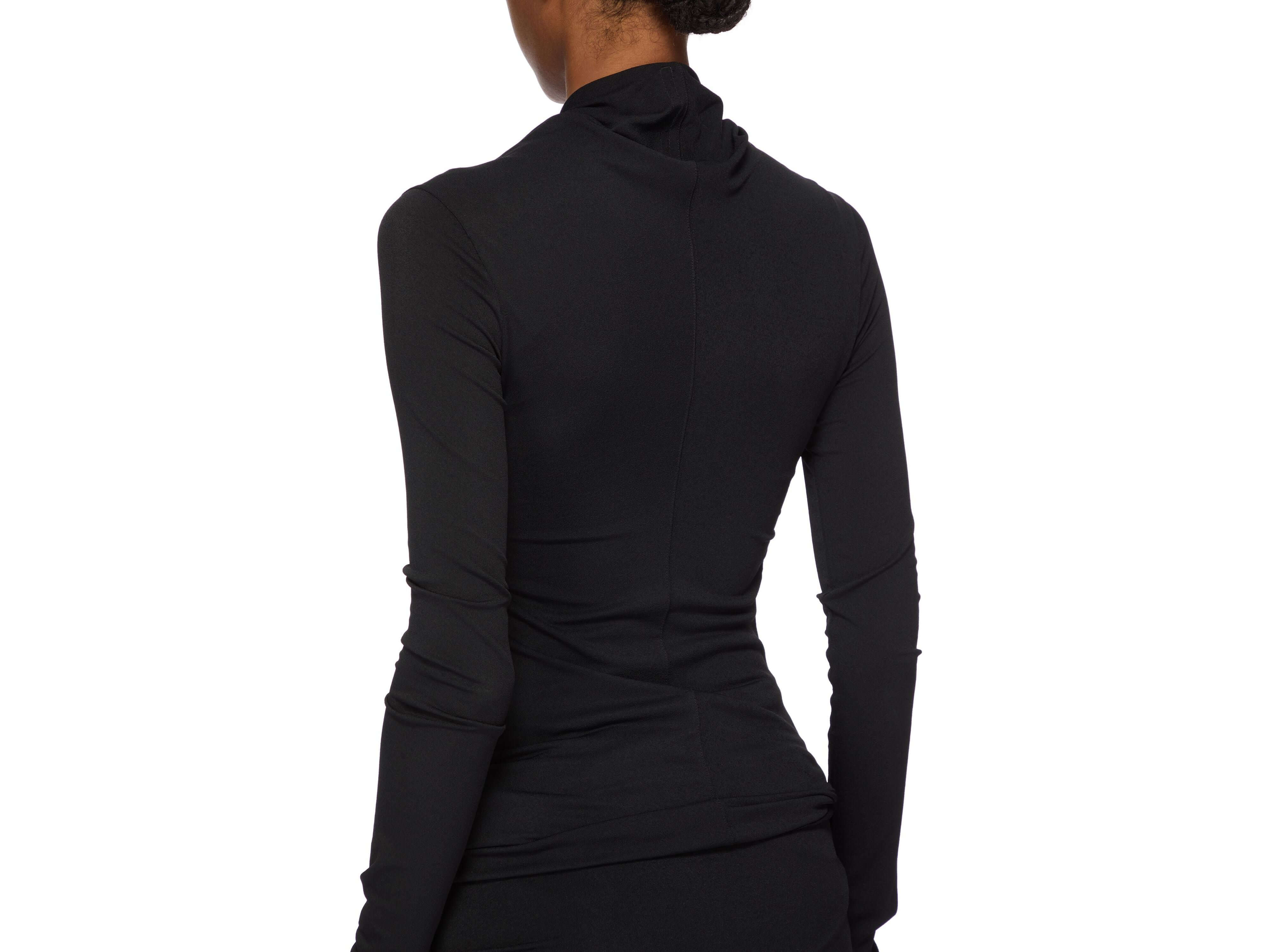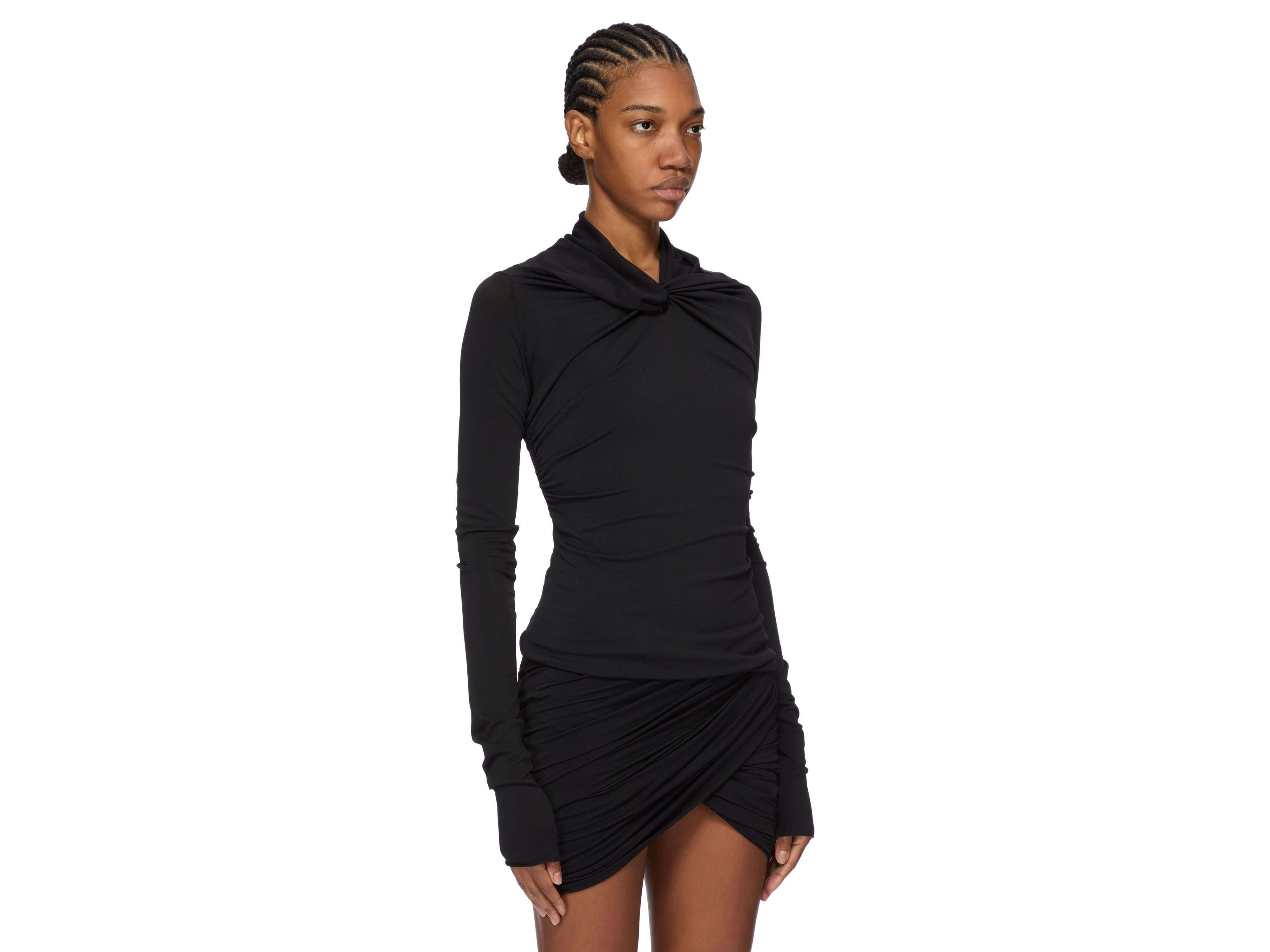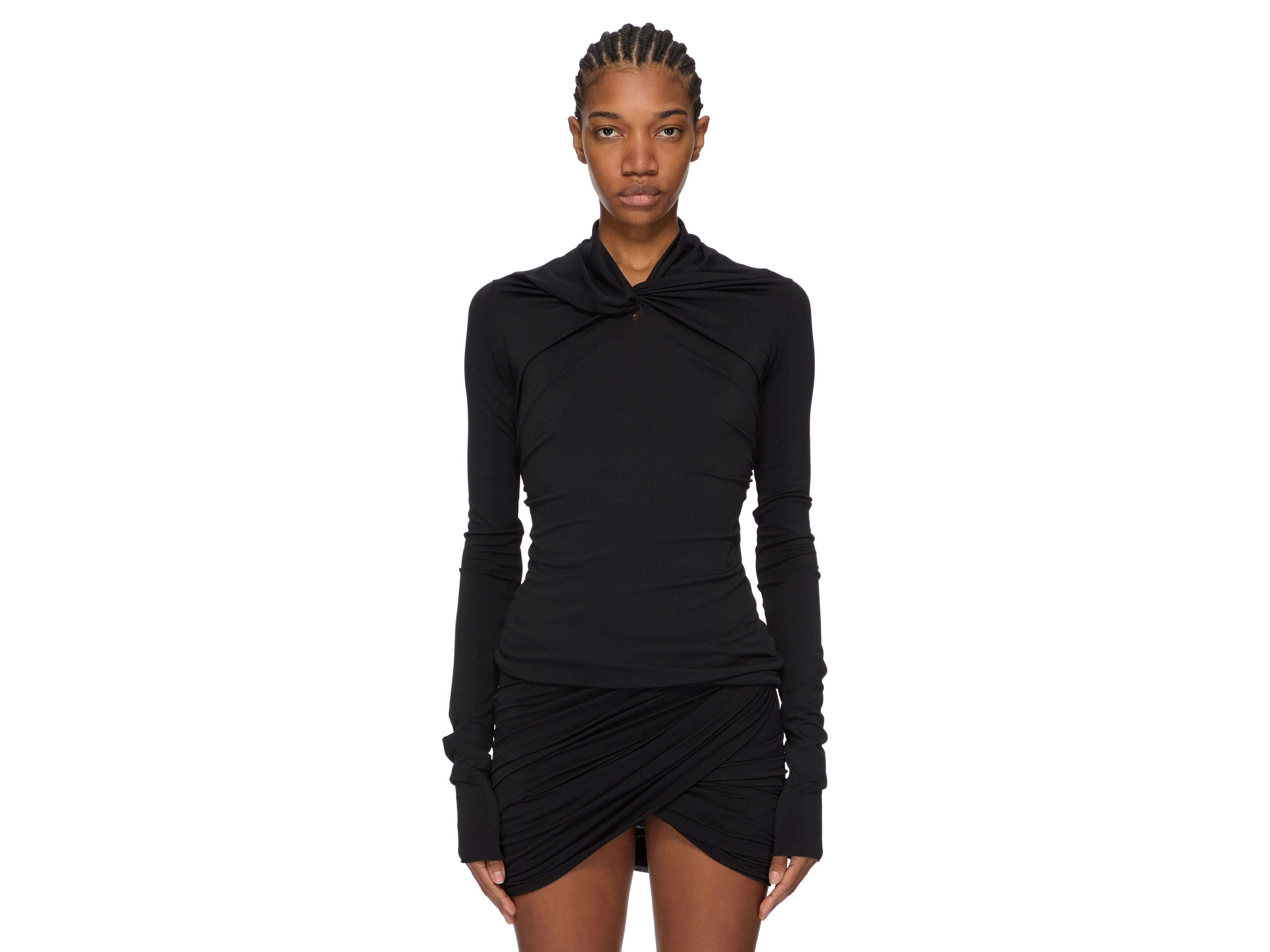 Rick Owens' Kairo top embodies contemporary luxury through its architectural restraint. Crafted from certified viscose crepe jersey, this below-the-hip silhouette is distinguished by its sculptural shawl collar with a front twist and graceful draping at the shoulders—signatures of the designer's refined aesthetic. The fabric's fluidity and natural stretch drape effortlessly, while the matte crepe face contrasts beautifully with its soft reverse. Responsibly sourced viscose ensures tactile excellence and environmental integrity. An essential investment piece for the discerning wardrobe.