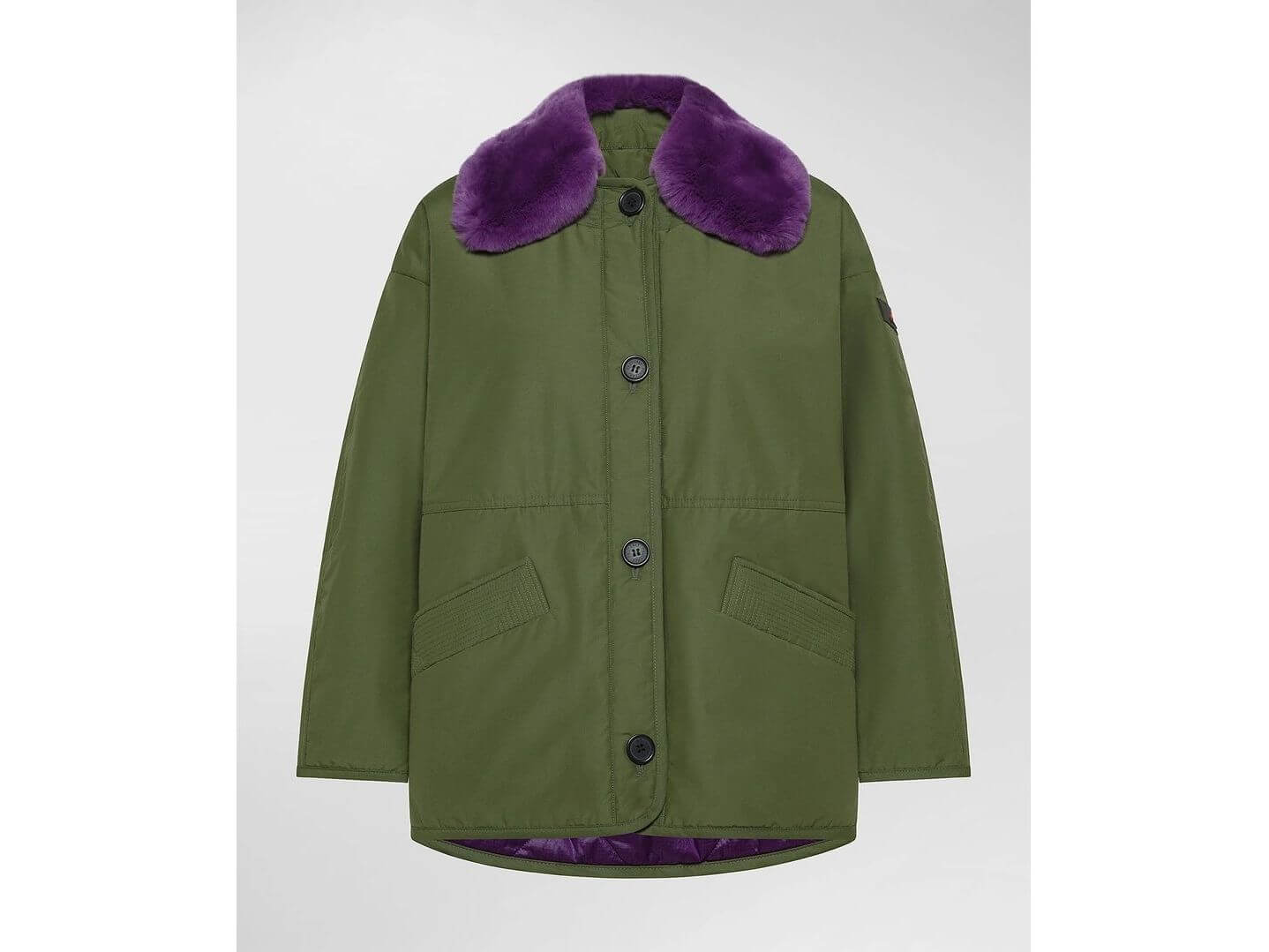 This reversible jacket in cotton canvas and ripstop nylon combines durability and elegance. Thanks to its water-repellent finish and lightweight synthetic padding, it offers all-day comfort and protection. Its removable fox fur collar, dropped sleeves, and button closure add a refined and original touch. This two-tone reversible jacket adapts to any outfit, whether worn plain or quilted, depending on your mood. A must-have choice to enhance your style this fall/winter.