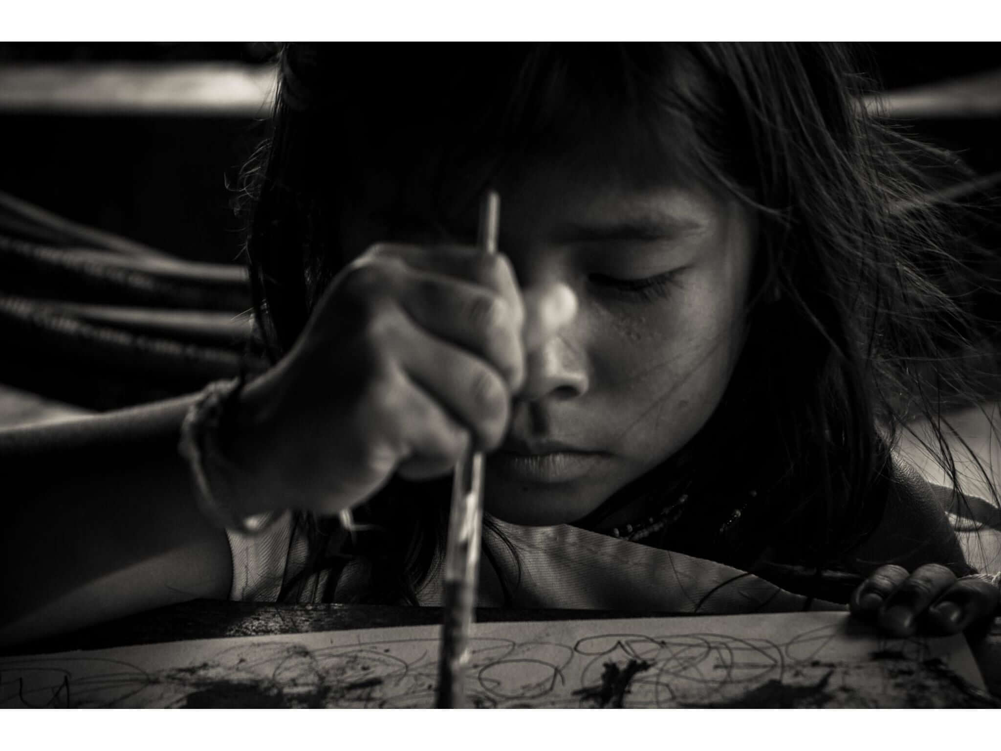 A moving photograph of Juanita, a young Wiwa child from the Sierra Nevada, captured by Maryne Solinas as she engages in her art. Measuring 30x45cm, this image reveals the precocious creativity and profound connection of Indigenous children to artistic expression. A poignant documentary work that celebrates cultural heritage and the innocence of the creative act. Acquire it to support emerging artists and enrich your collection of authentic and socially engaged art photography. 30x45cm