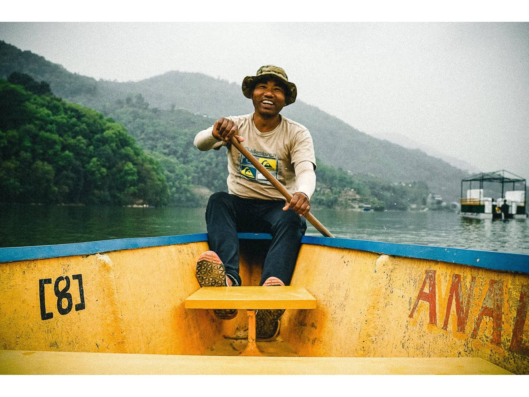 Photo: A Smile on Phewa Lake. Capture the essence of serenity with this framed fine art photograph. The image of a smiling man on the shores of Phewa Lake reveals a moment of authenticity and connection with nature. Its generous 40x50 cm dimensions make it an ideal centerpiece to transform your home into a personal gallery. Perfect for lovers of travel photography and minimalist decor, this artwork soothes the atmosphere while telling a captivating story. An investment in art that inspires contemplation and joy every day.